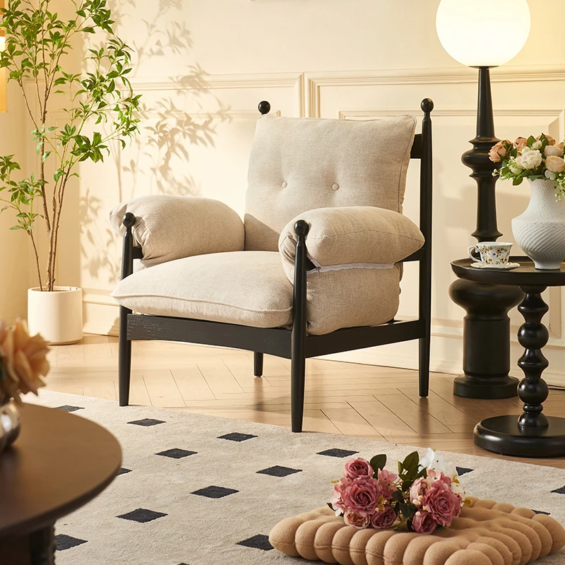 フレンチカントリー風プリントソファチェア|ヴィラのリビングにぴったりのレトロなデザイン|カフェにも最適な布製一人掛けリラックスチェア
