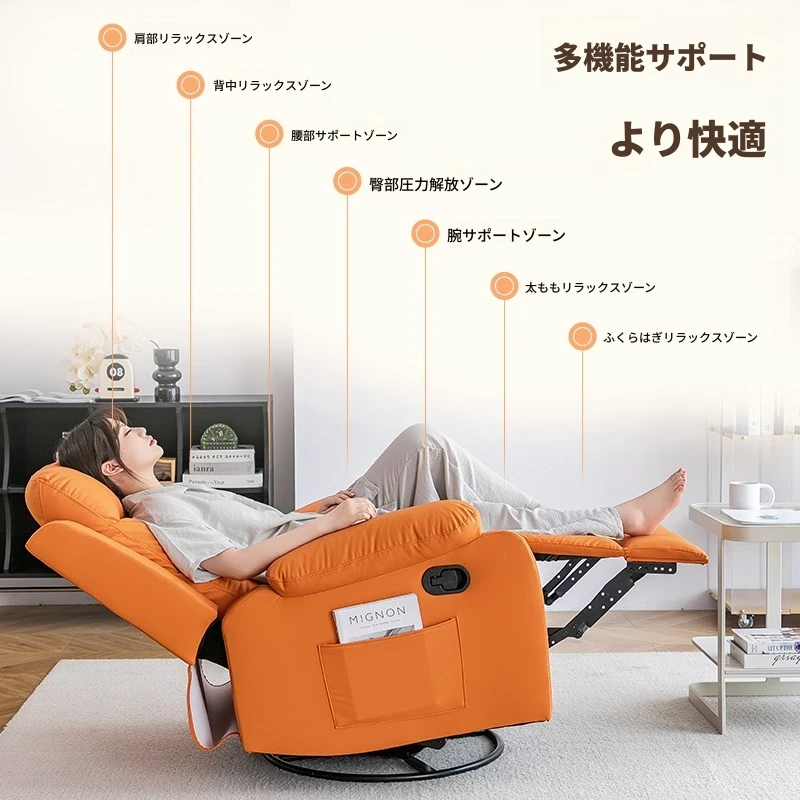 多機能リラックスソファ!寝転んでも座ってもOK、寝室やリビングにぴったりの一人用ソファ。回転機能付きで、くつろぎの時間をさらに快適に!
