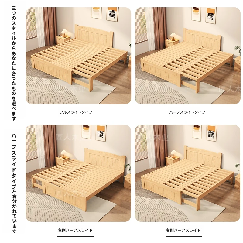 伸縮式ベッド 抽出式ベッド 折りたたみ可能なプッシュプルベッド 全実木製 多機能 小型住宅向け サイドプルベッド 半抽出式 おしゃれで省スペース、快適な睡眠環境を提供します!