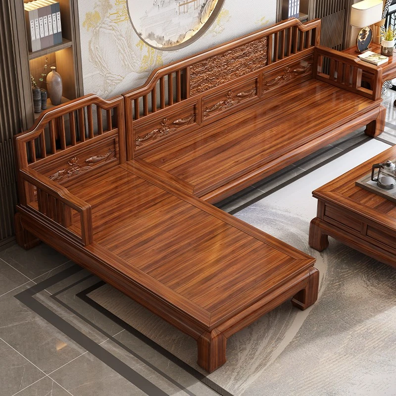 Modern Chinese Style Solid Zitan Wood Sofa - 2025 New Arrival for Living Rooms, Perfect for Any Size Home, Elegant Chaise Lounge with Storage Feature