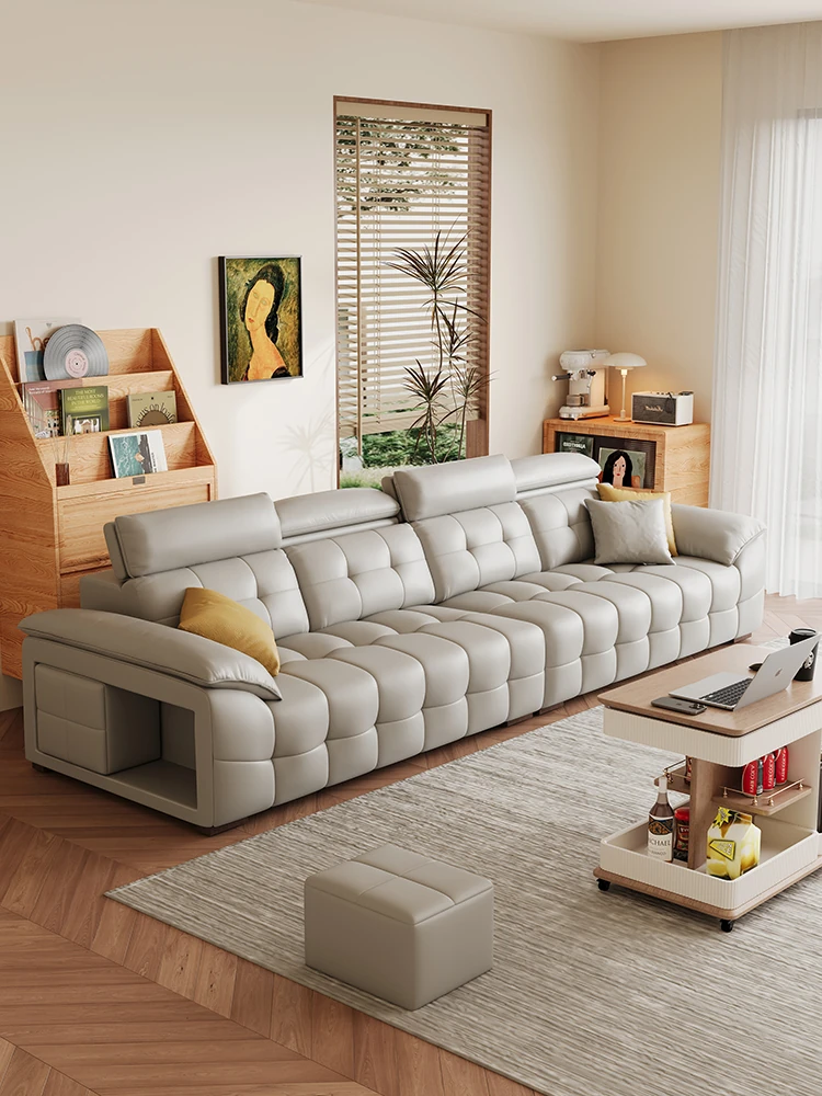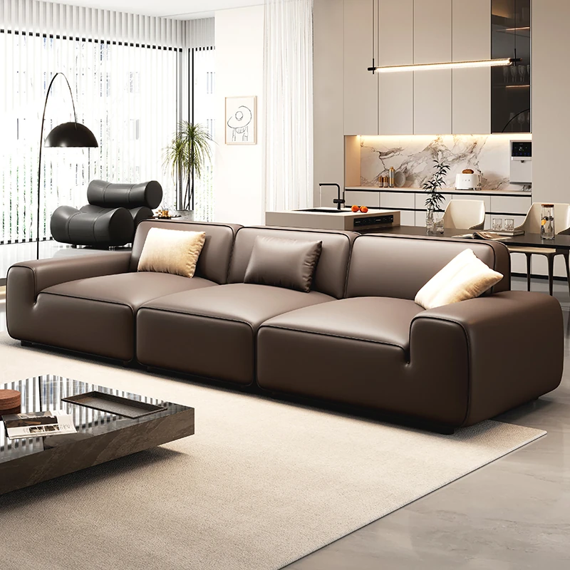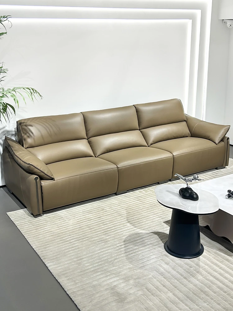 Italian Genuine Leather Sofa for Small Living Rooms - Minimalist Luxury 2025 New Model, Straight-Line Design, Top-Grain Leather, Comfortable Three-Seater