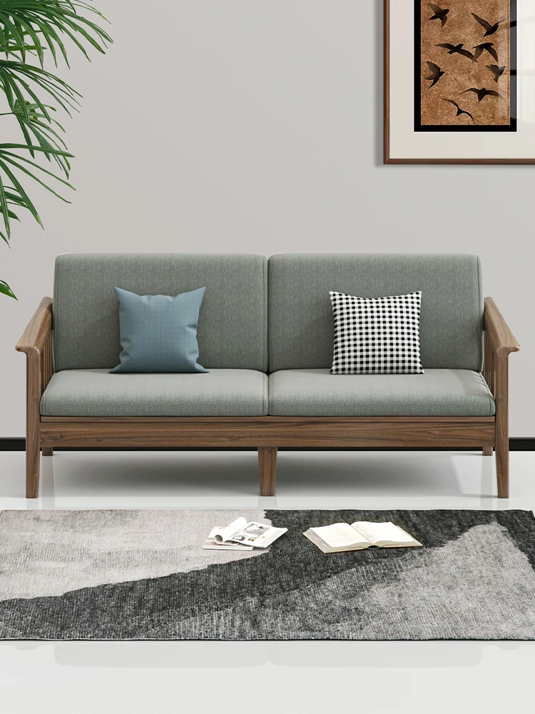 Modern Solid Wood Sofa for Living Room - Minimalist Walnut Two-Three Seater for Small Spaces, Perfect for Home Use