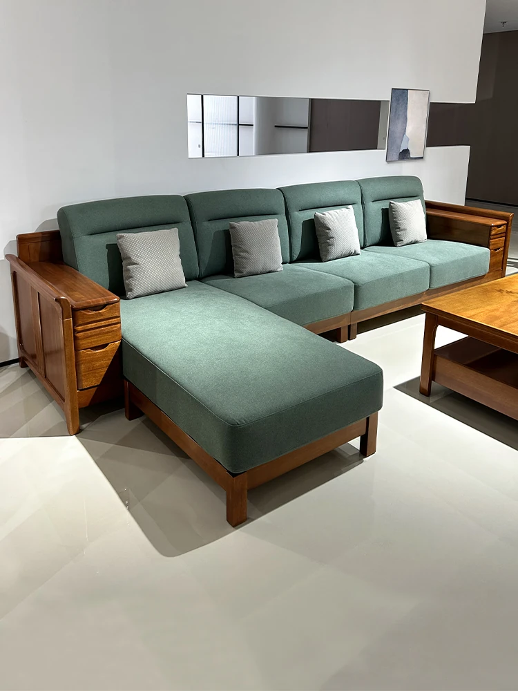 Modern Solid Wood Sofa for Living Room - Stylish Walnut Corner Sofa with Storage, Suitable for 3-4 People, Perfect for Year-Round Comfort