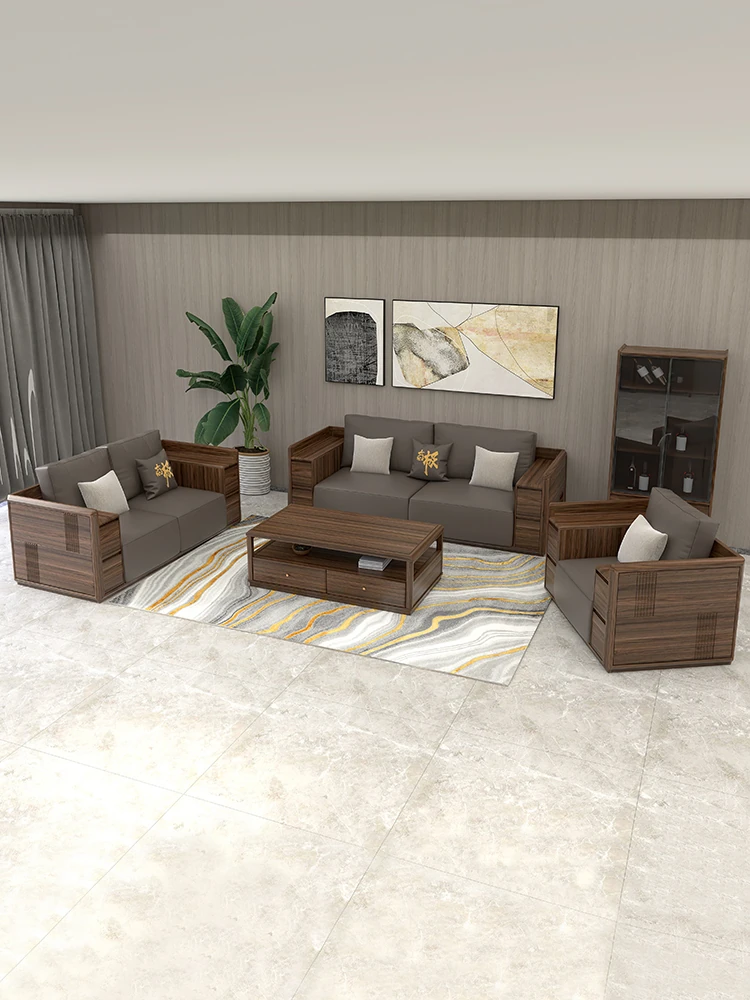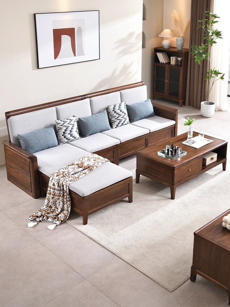 Modern Solid Wood Sofa Set for Living Room - New Chinese Style L-Shaped Walnut Furniture, Perfect for Couples and Families, Comfortable 2-Seater & 3-Seater Options