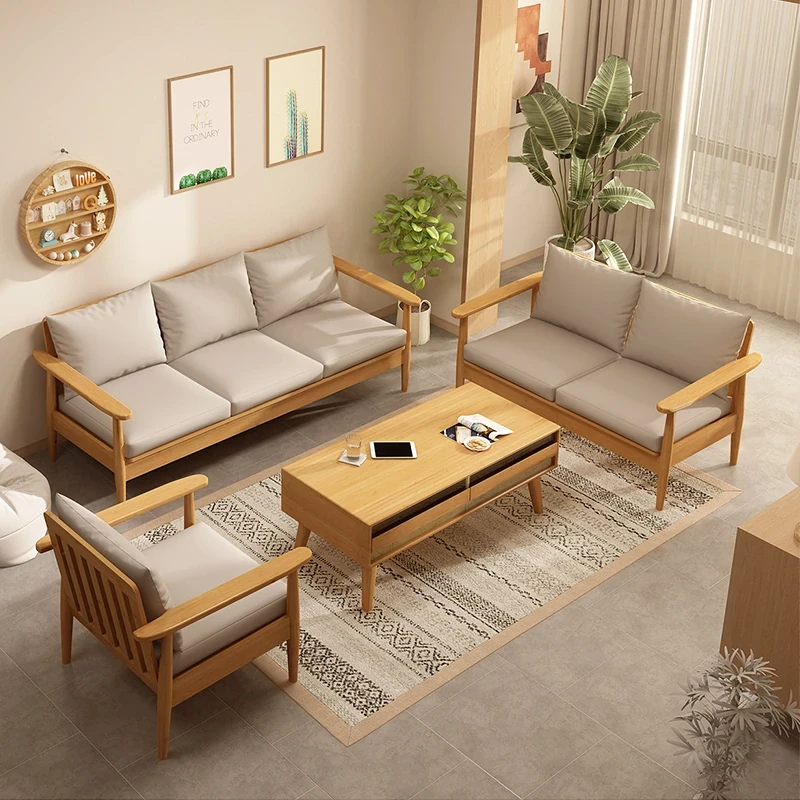 Japanese Minimalist Solid Wood Sofa for Small Living Rooms - Modern Fabric Sofa for One or Three People, Perfect for Year-Round Comfort