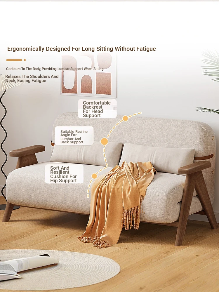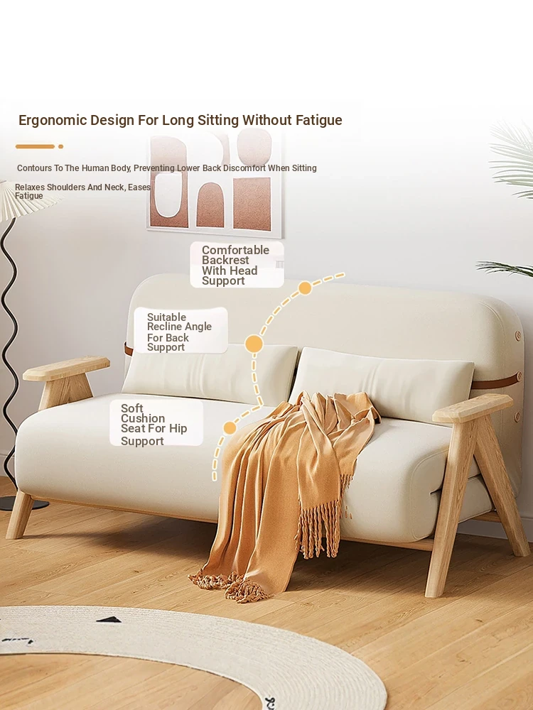 Nordic Minimalist Solid Wood Sofa Bed for Small Spaces - Foldable Multifunctional Sofa for Office and Home Use