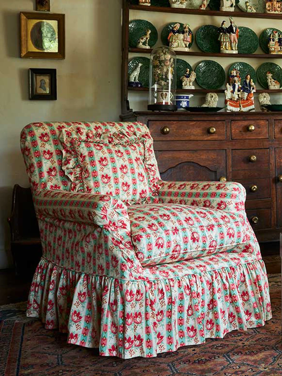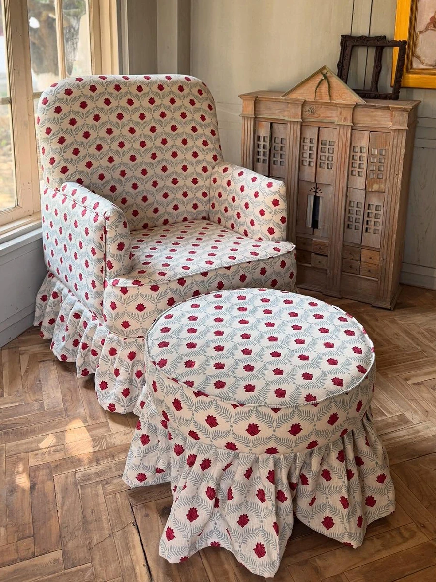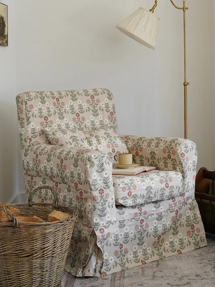 French Country Floral Fabric Armchair – Charming Single Chair for Bedroom & Small Living Rooms – Stylish American Design with Comfortable Print for Cozy Relaxation
