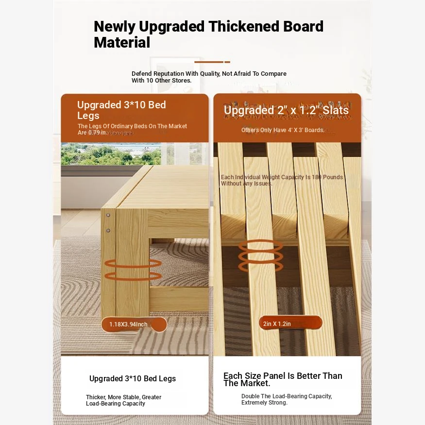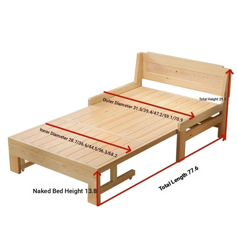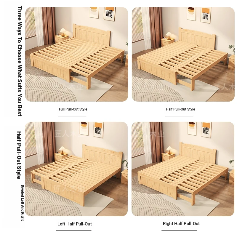 Multifunctional Expandable Wooden Bed - Foldable and Pull-Out Design for Small Spaces, Perfect for Compact Living! Full Solid Wood Construction for Durability and Style.