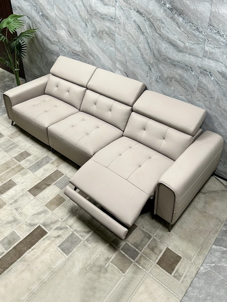 Italian Minimalist Electric Genuine Leather Sofa - Luxurious First-Class Style, Space-Saving Three-Seat Design for Small Living Rooms, Wall-Free Placement. Perfect for Modern Homes!