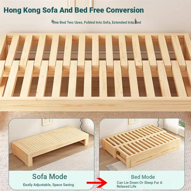 Hong Kong Free Shipping - Foldable Sofa Bed, Dual-Purpose Solid Wood for Home Use, Compact Design for Small Living Rooms, Easy Pull-Out Single Tatami Style