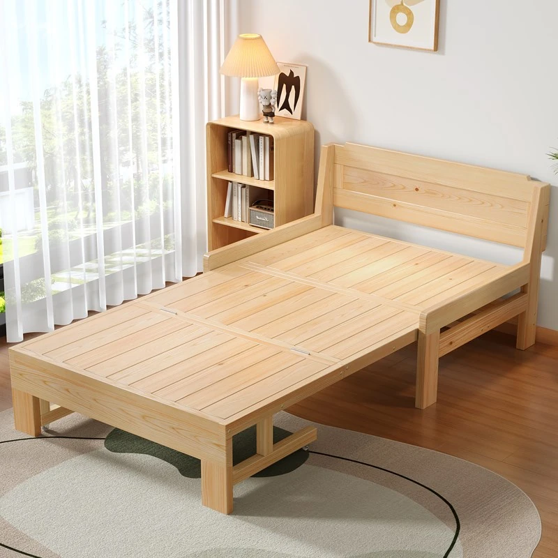 Multi-Functional Solid Wood Folding Sofa Bed for Kids - Expandable Pull-Out Bed, Space-Saving Design for Small Apartments, Suitable for Single or Double Use
