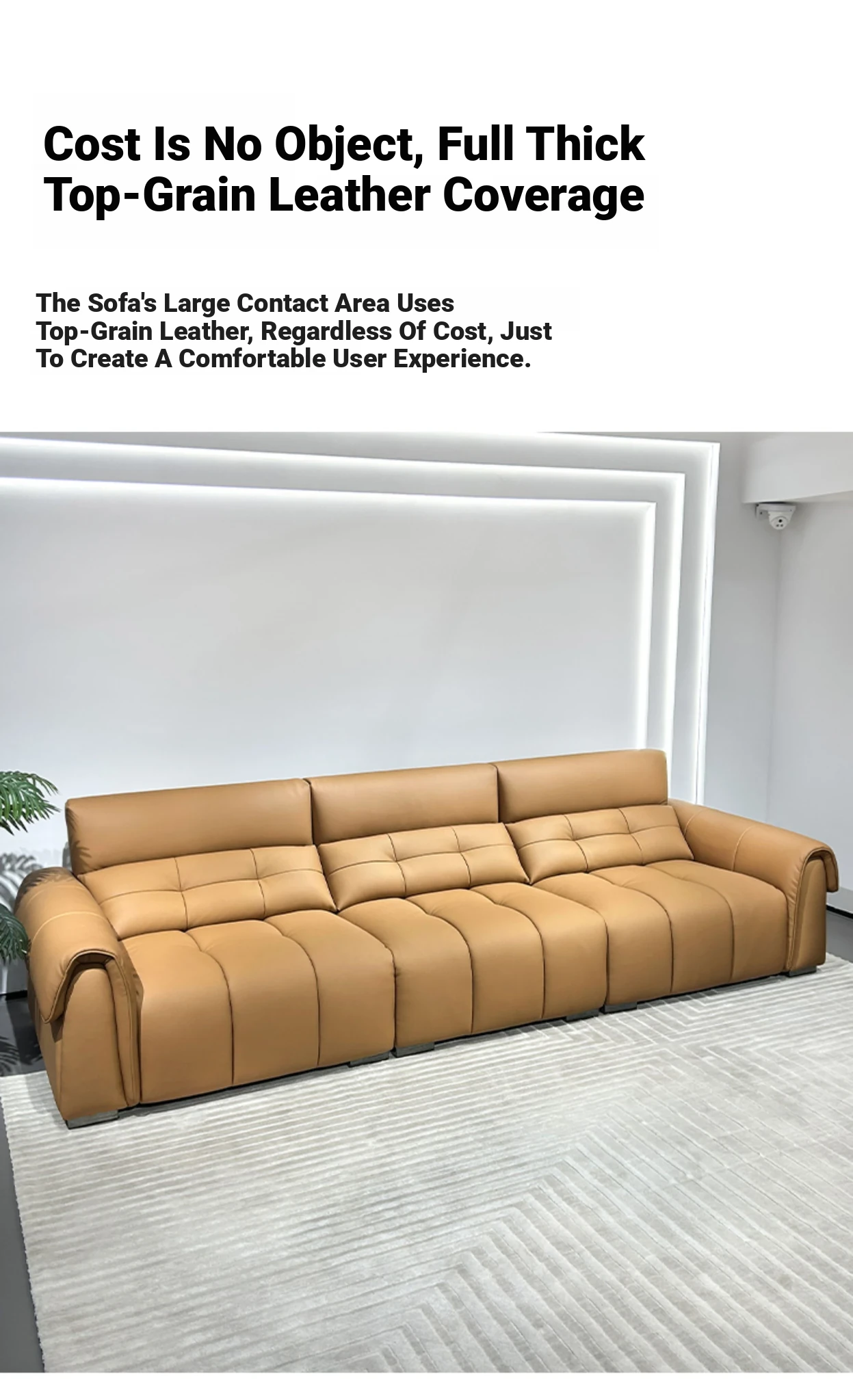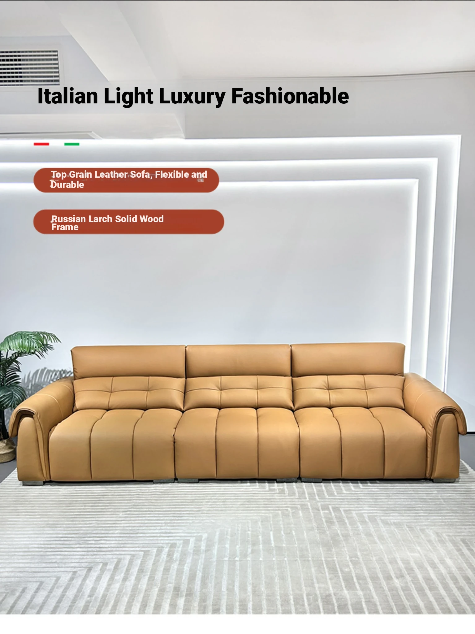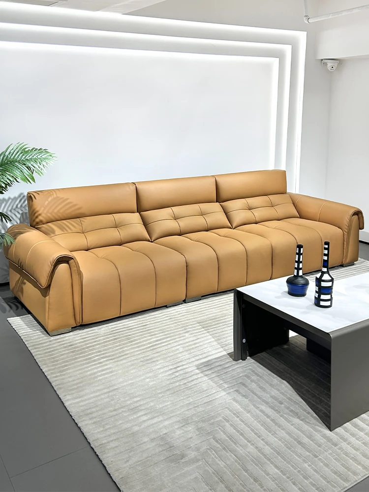 2025 New Arrival: Italian Minimalist Genuine Leather 3-Seater Sofa with Piano Key Design - Perfect for Small Living Spaces