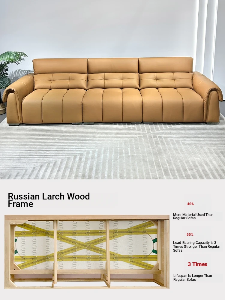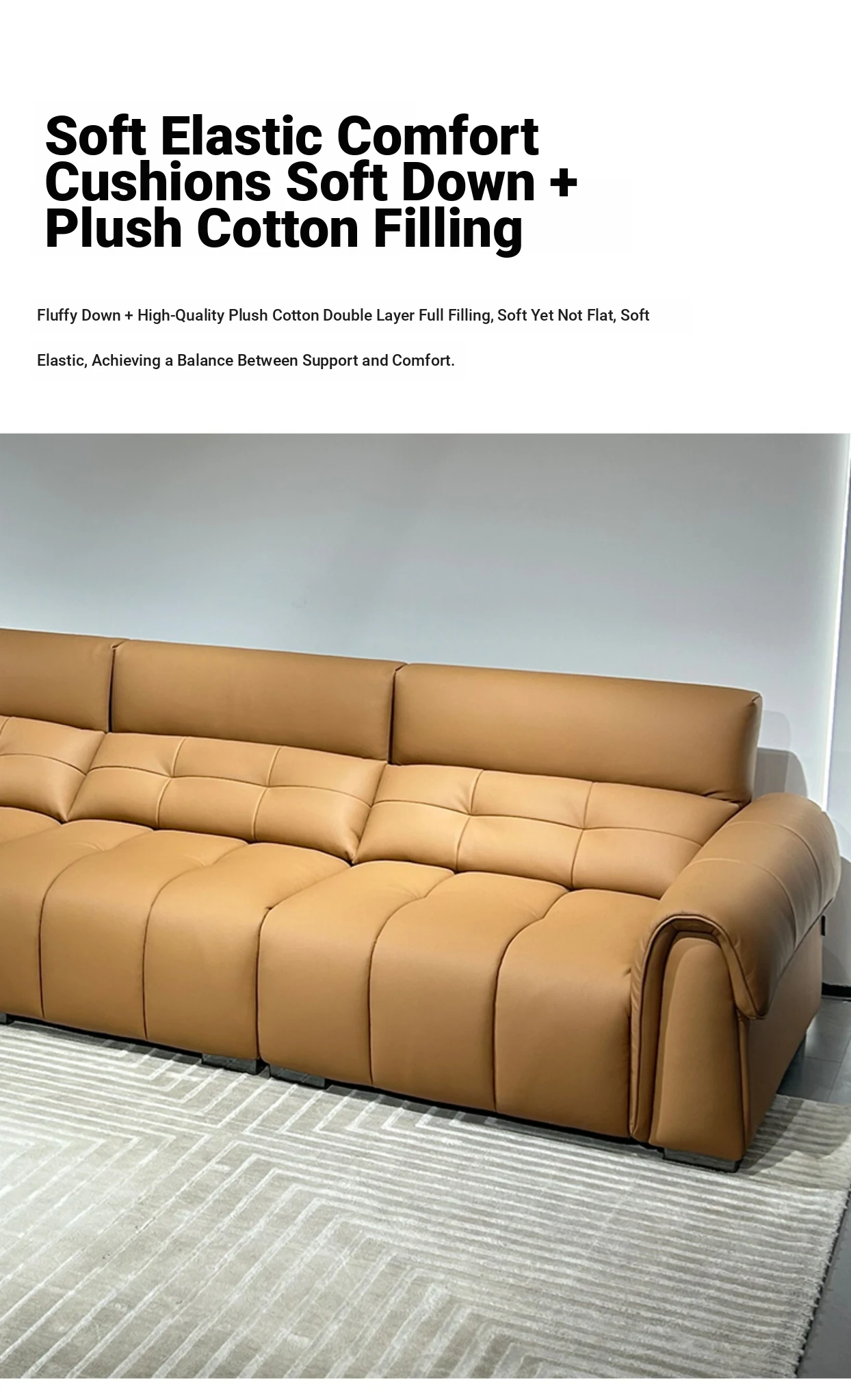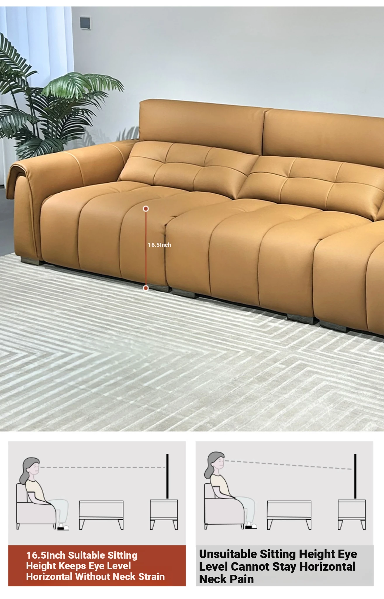 2025 New Arrival: Italian Minimalist Genuine Leather 3-Seater Sofa with Piano Key Design - Perfect for Small Living Spaces