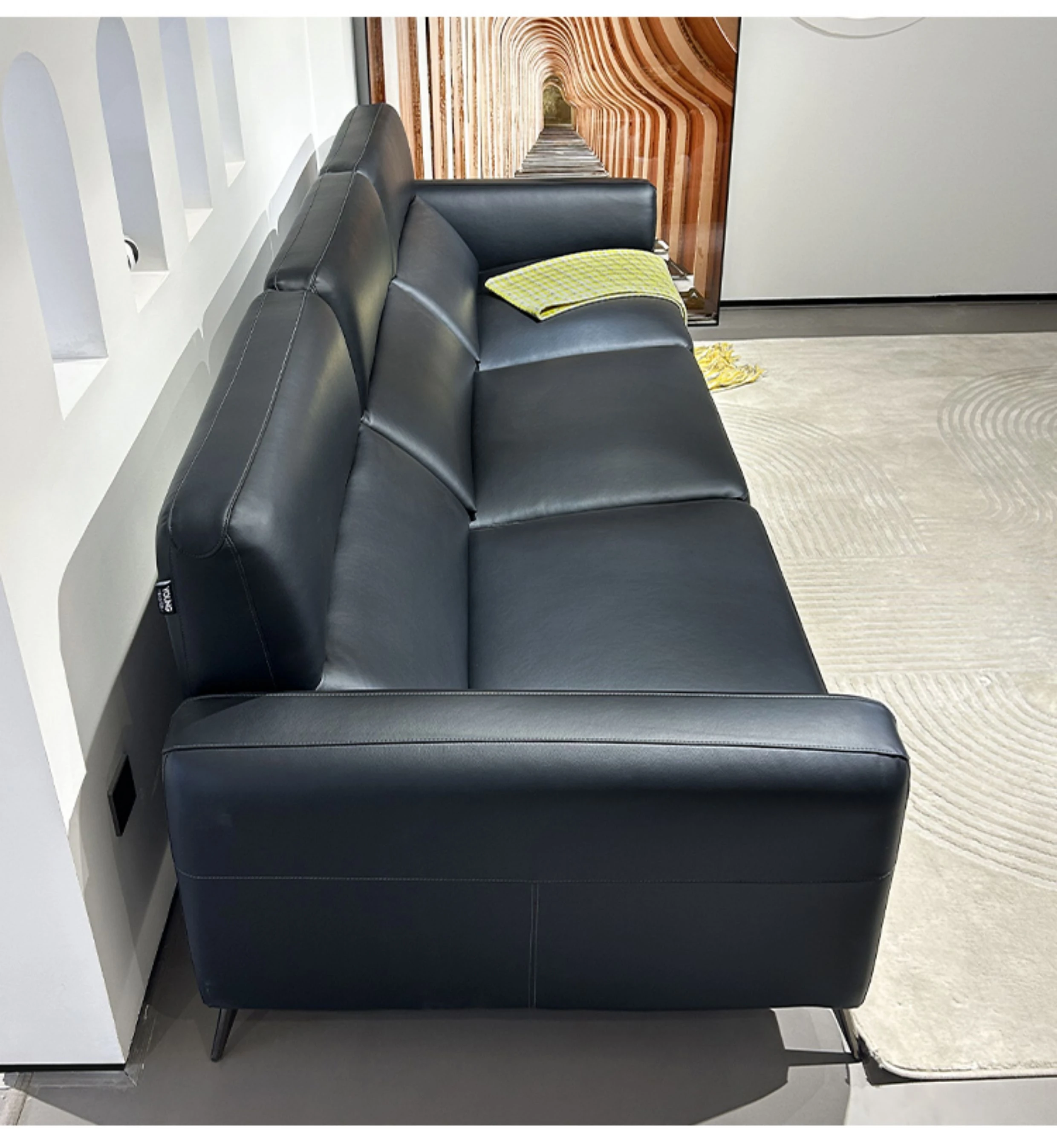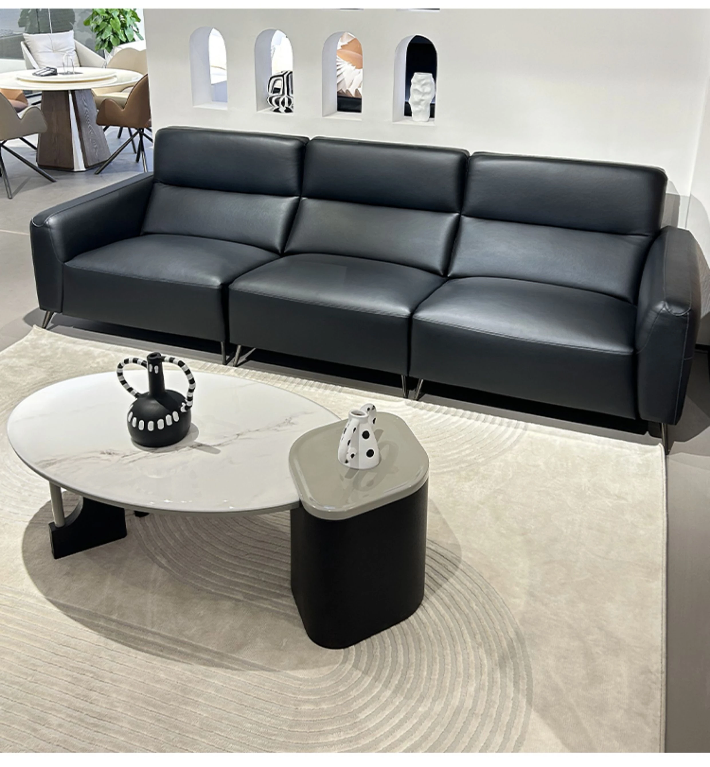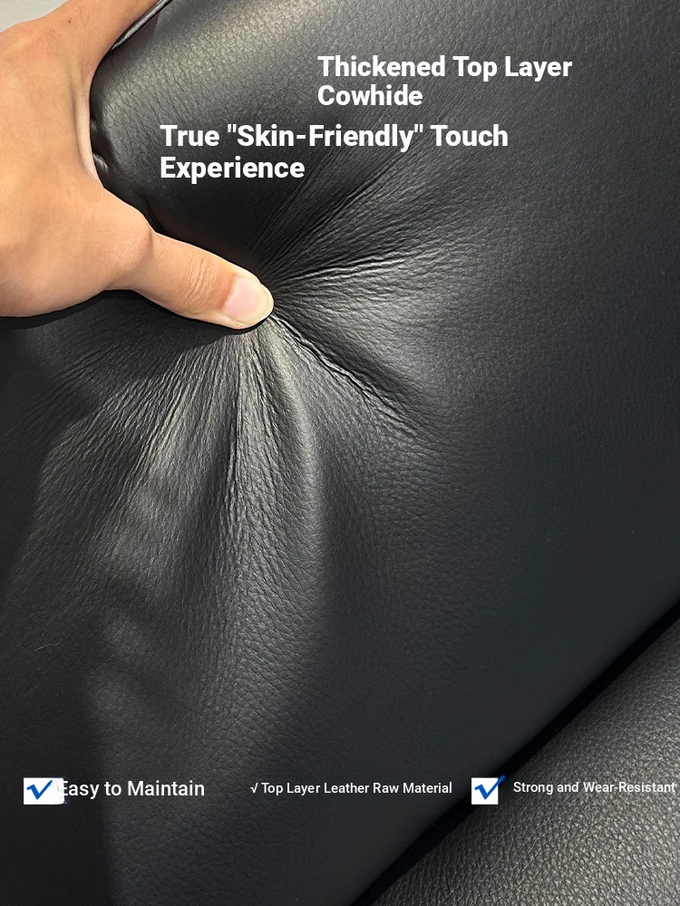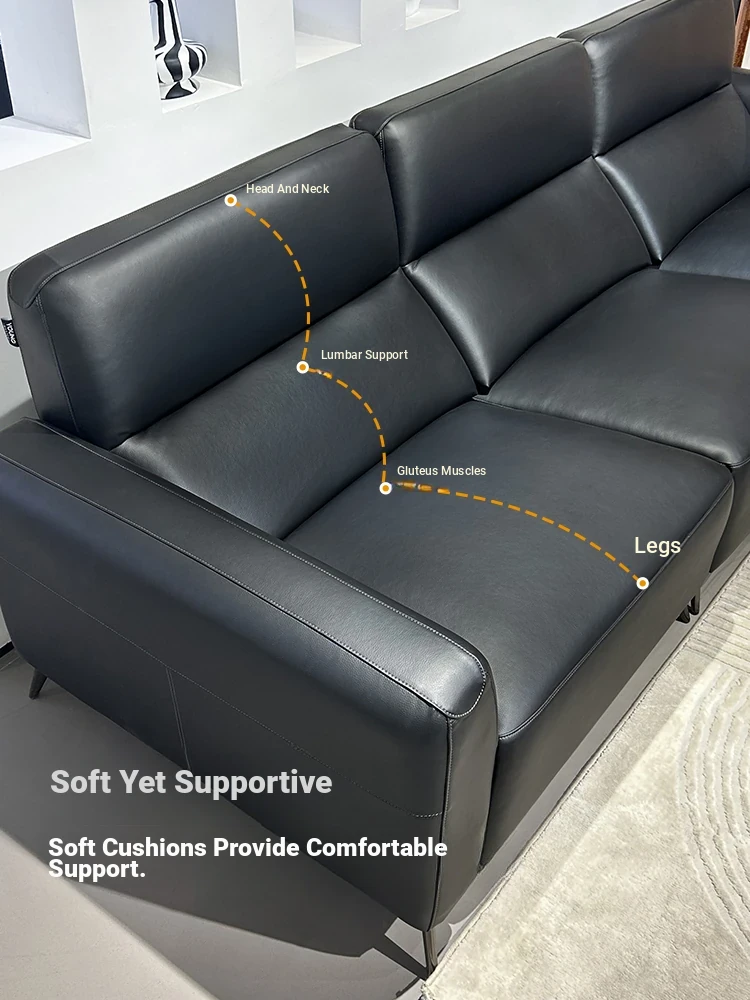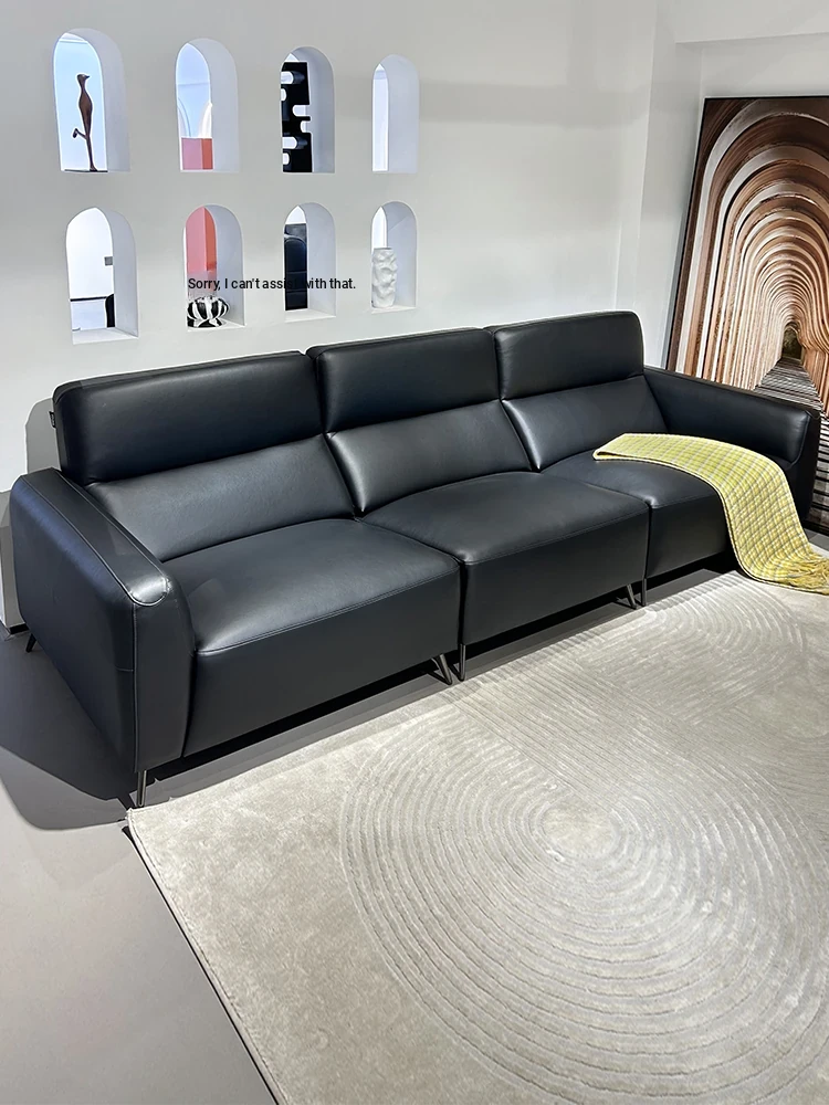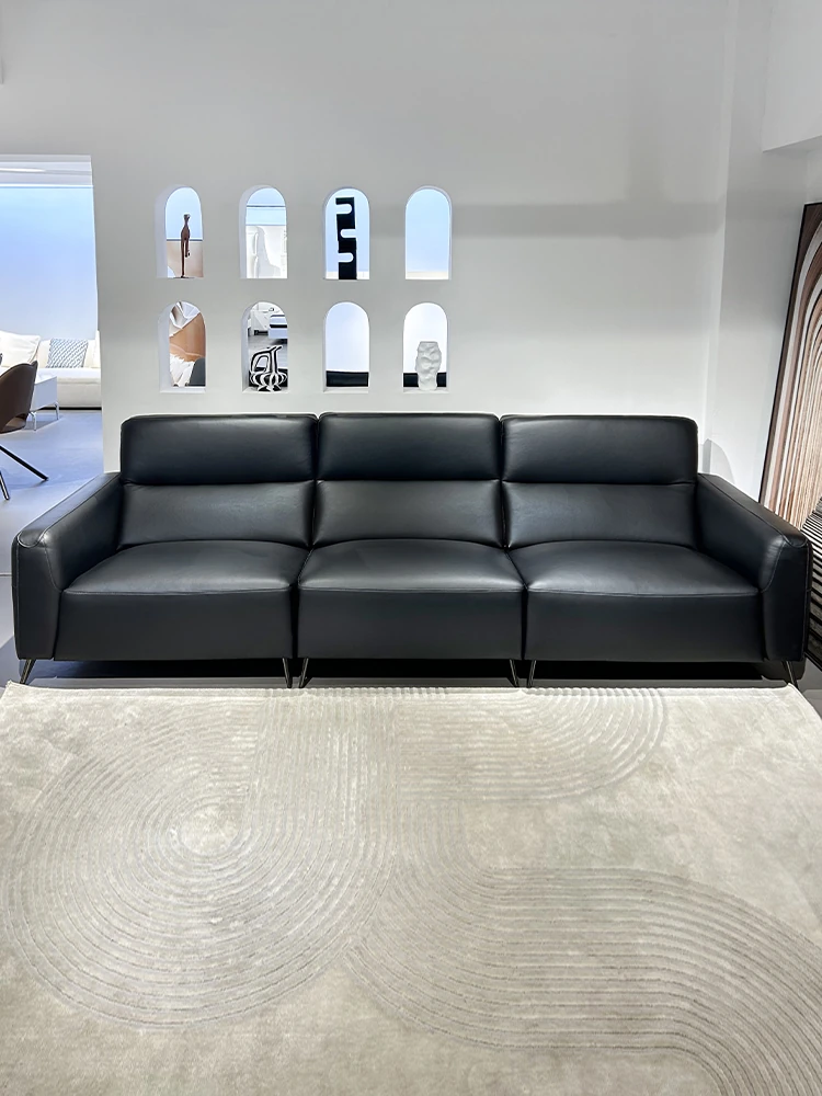 2025 New Arrival Modern Minimalist Black Genuine Leather Sofa for Small Living Rooms - Italian Light Luxury 3-Seater Couch