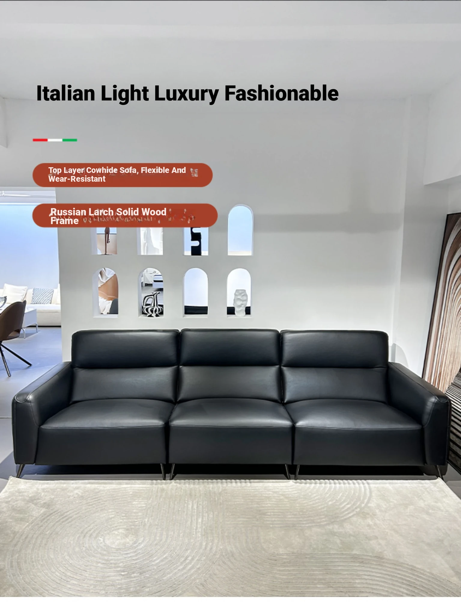 82.68 ins three people [baby touch leather + solid wood larch base]]