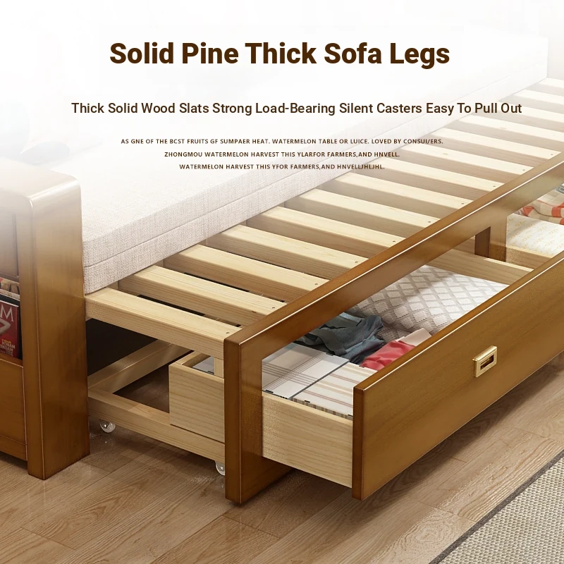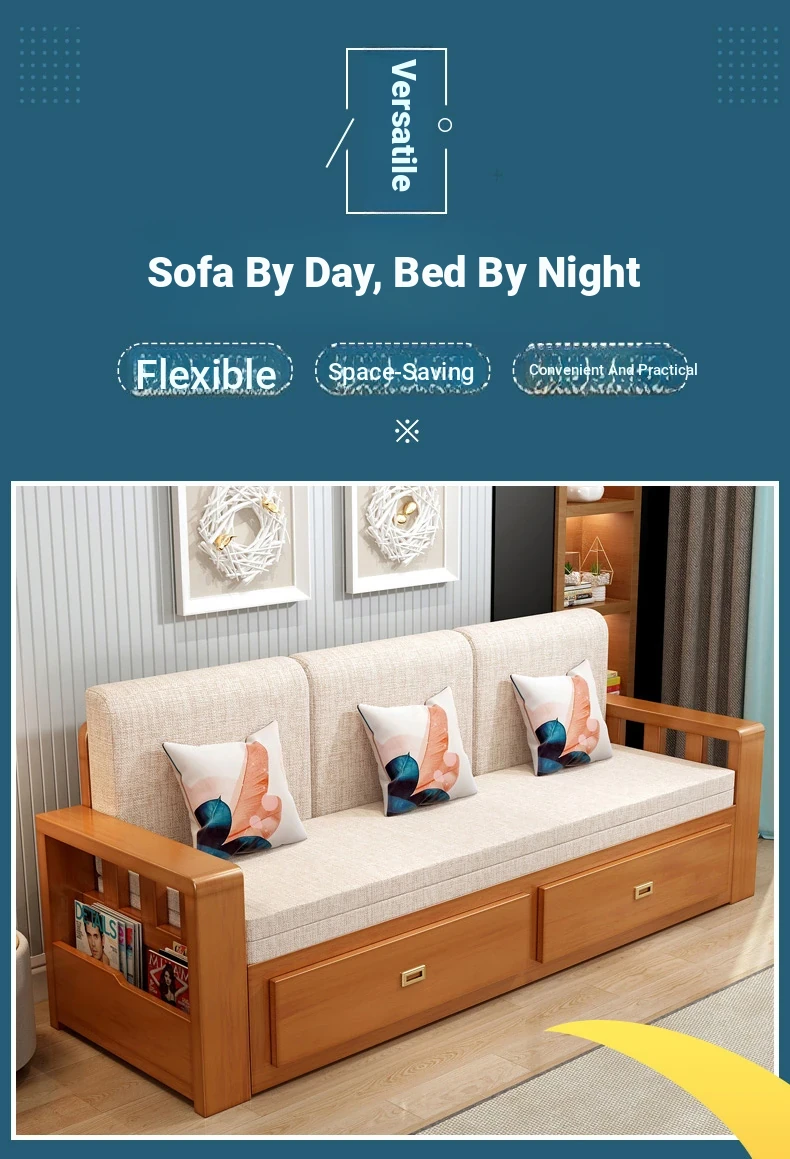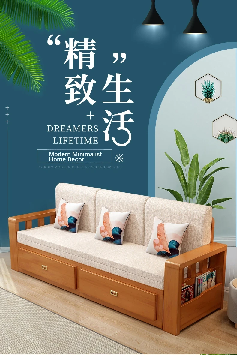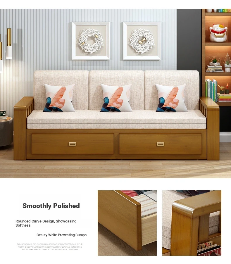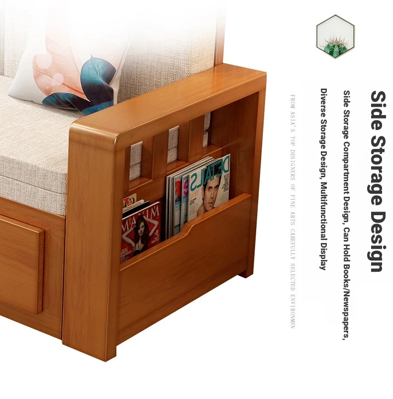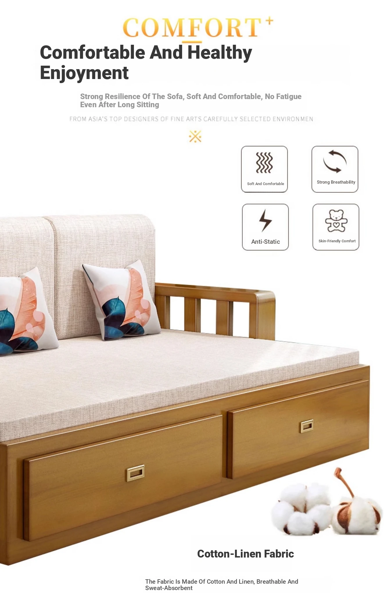【Free Shipping to Hong Kong】New Chinese Style Sofa Bed with Storage - Foldable, Expandable, and Versatile Fabric and Solid Wood Design for Small Spaces