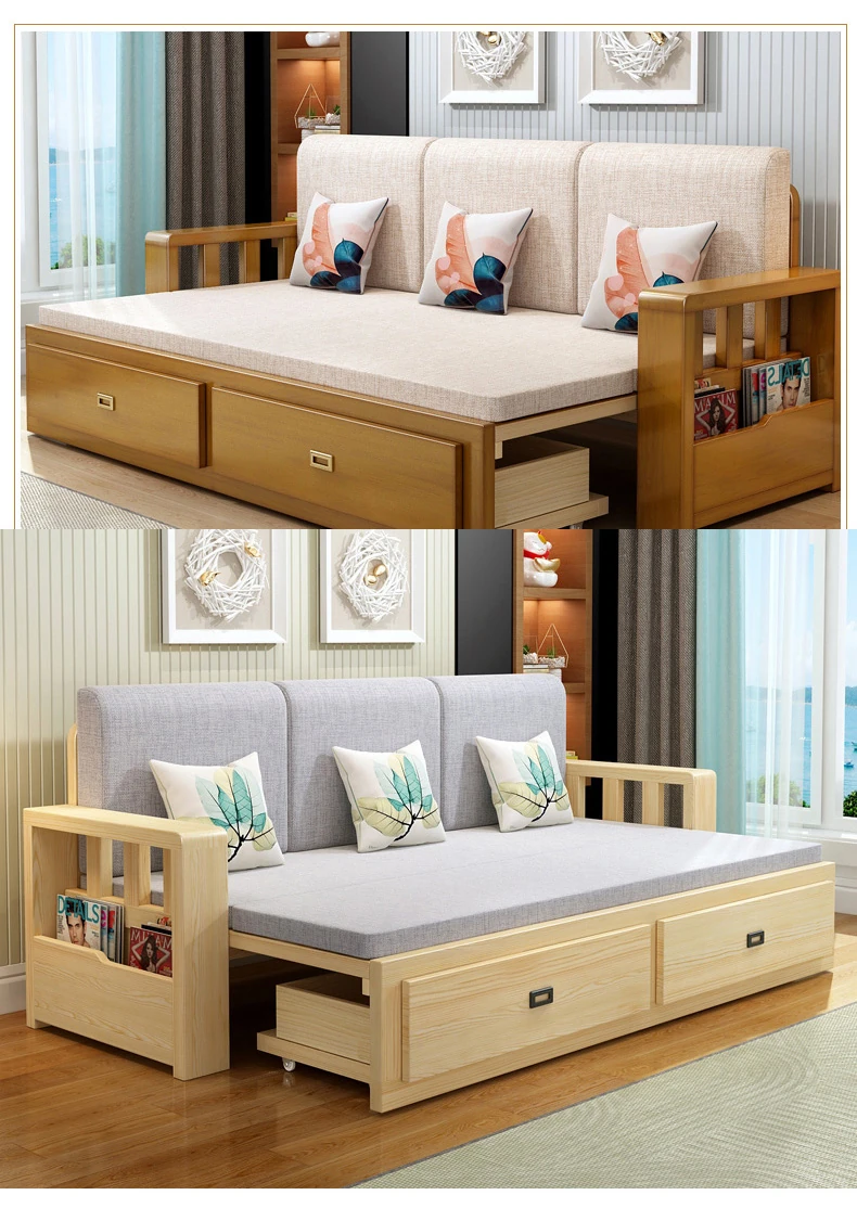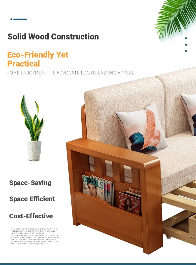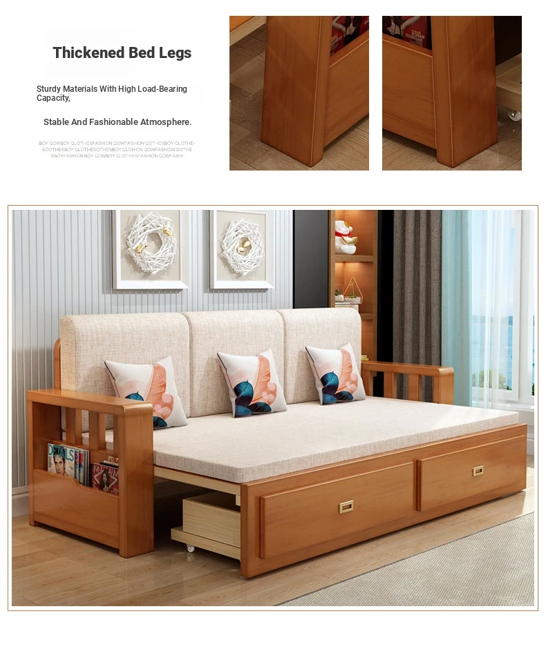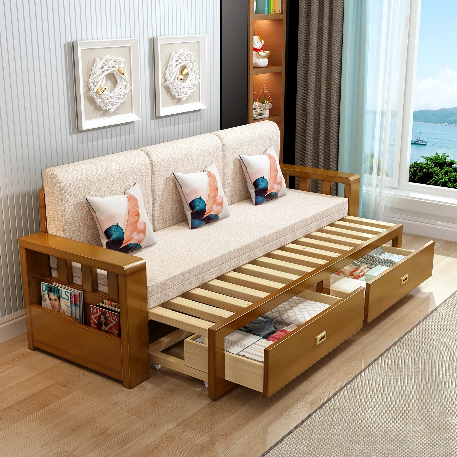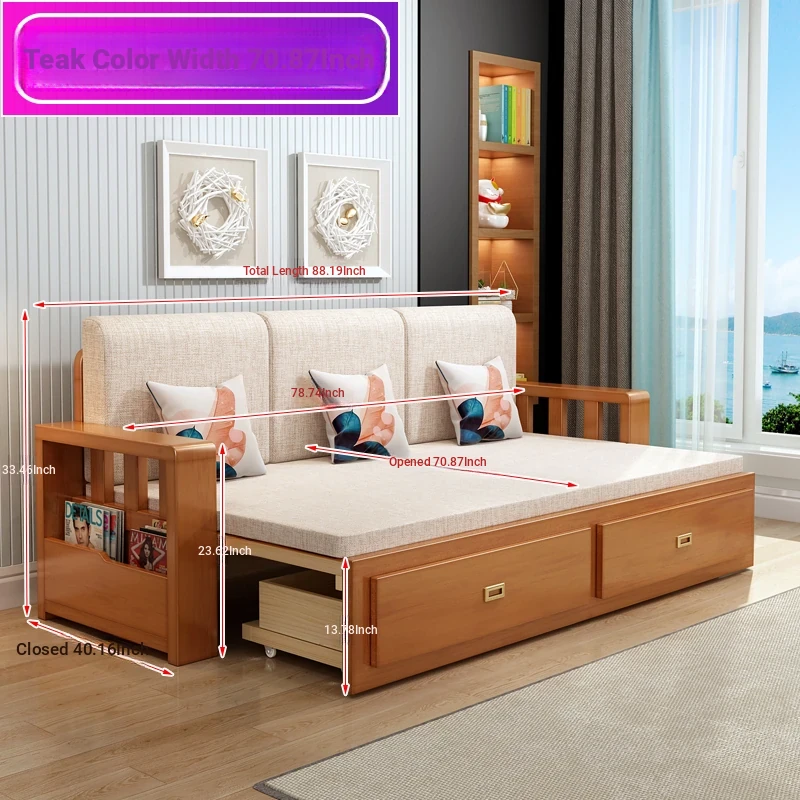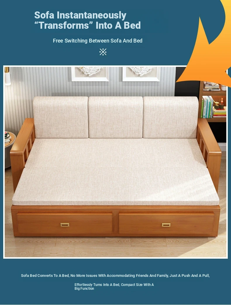 【Free Shipping to Hong Kong】New Chinese Style Sofa Bed with Storage - Foldable, Expandable, and Versatile Fabric and Solid Wood Design for Small Spaces