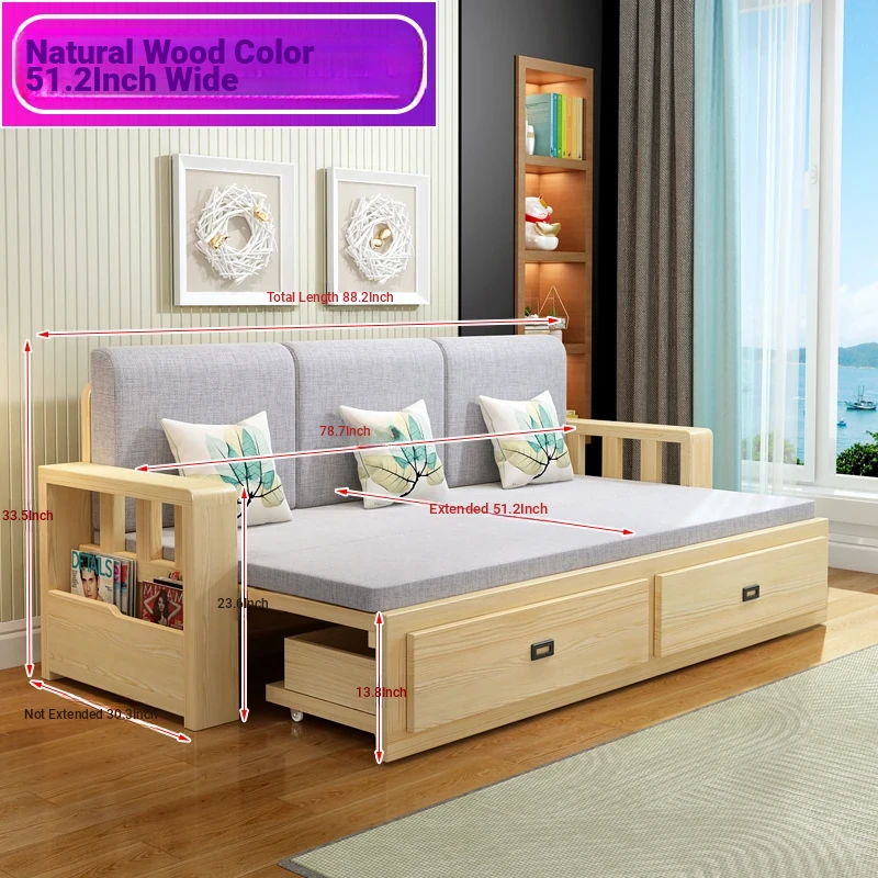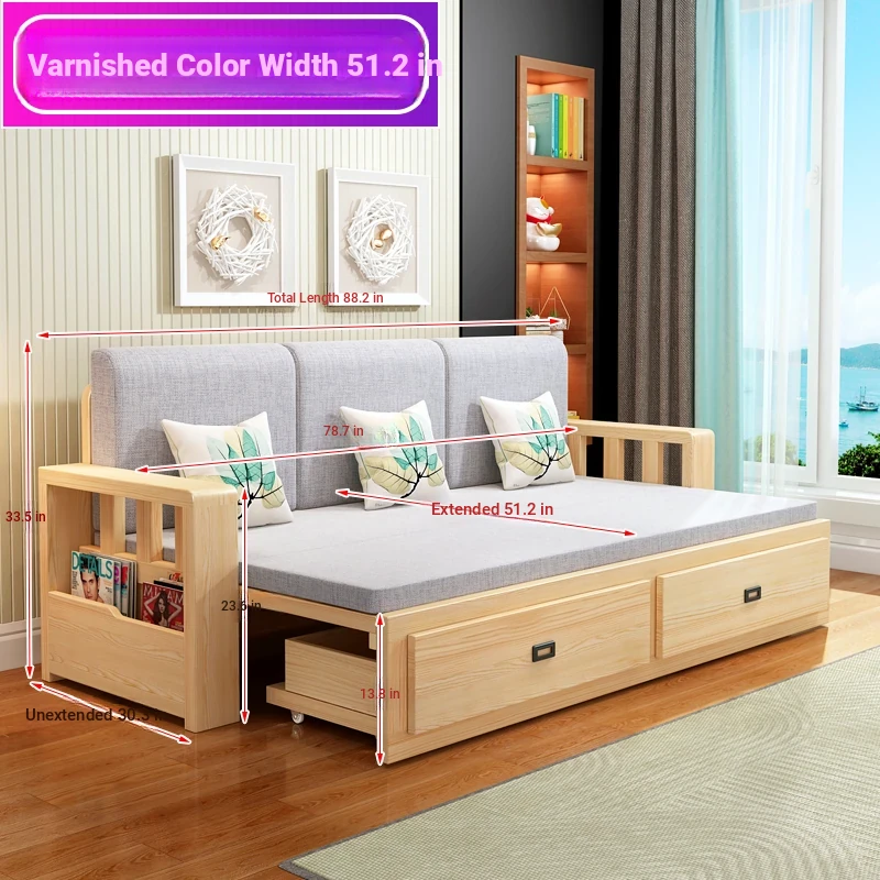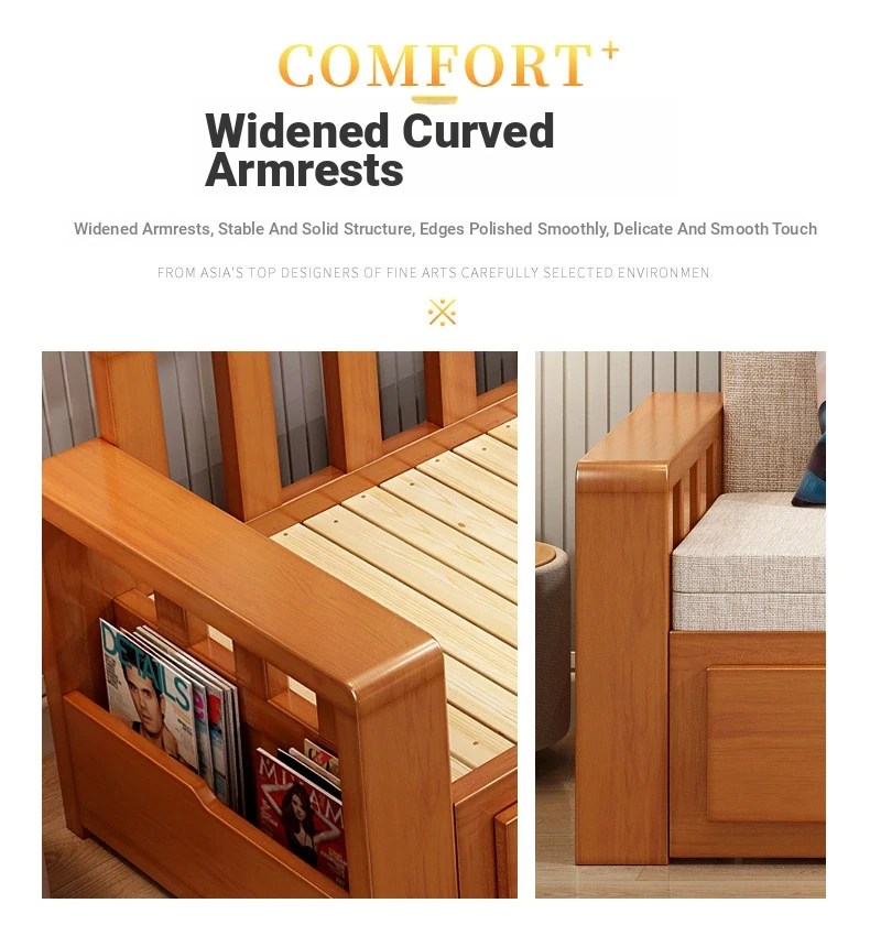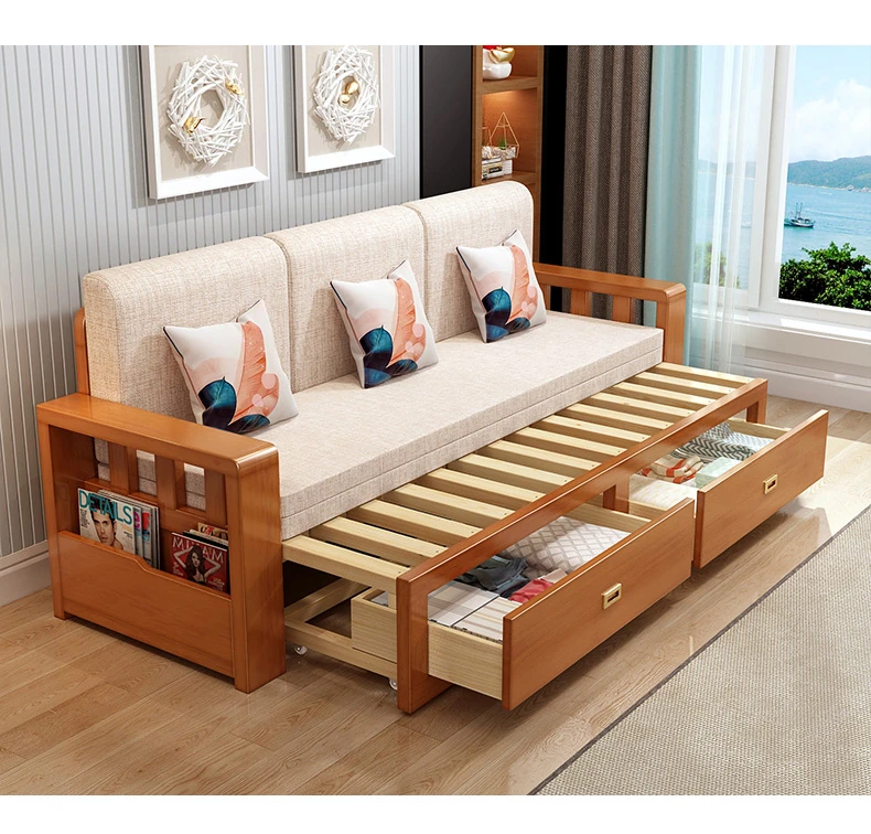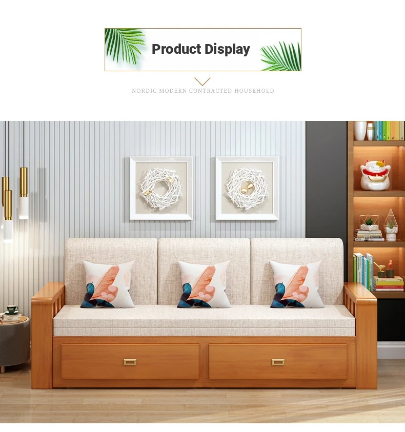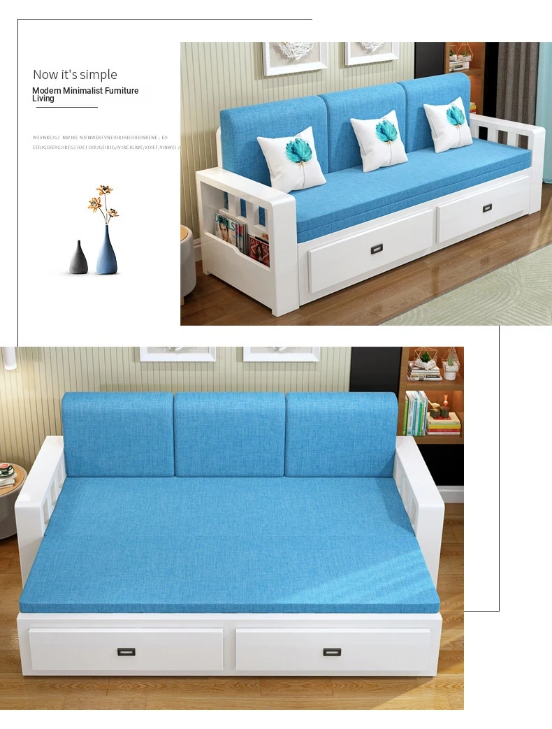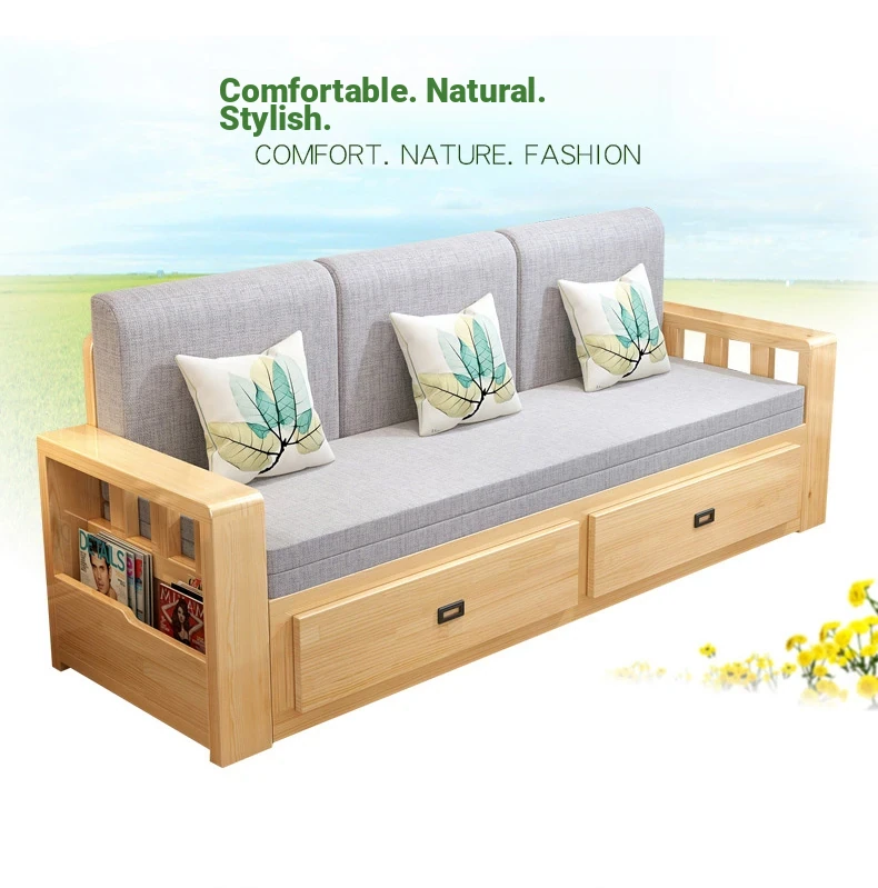 【Free Shipping to Hong Kong】New Chinese Style Sofa Bed with Storage - Foldable, Expandable, and Versatile Fabric and Solid Wood Design for Small Spaces