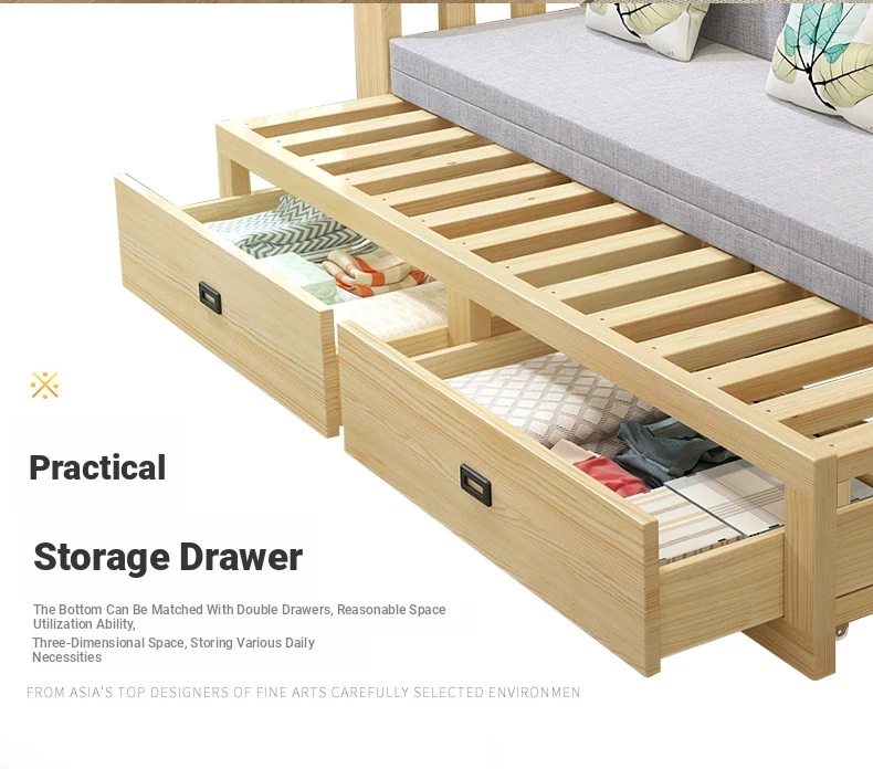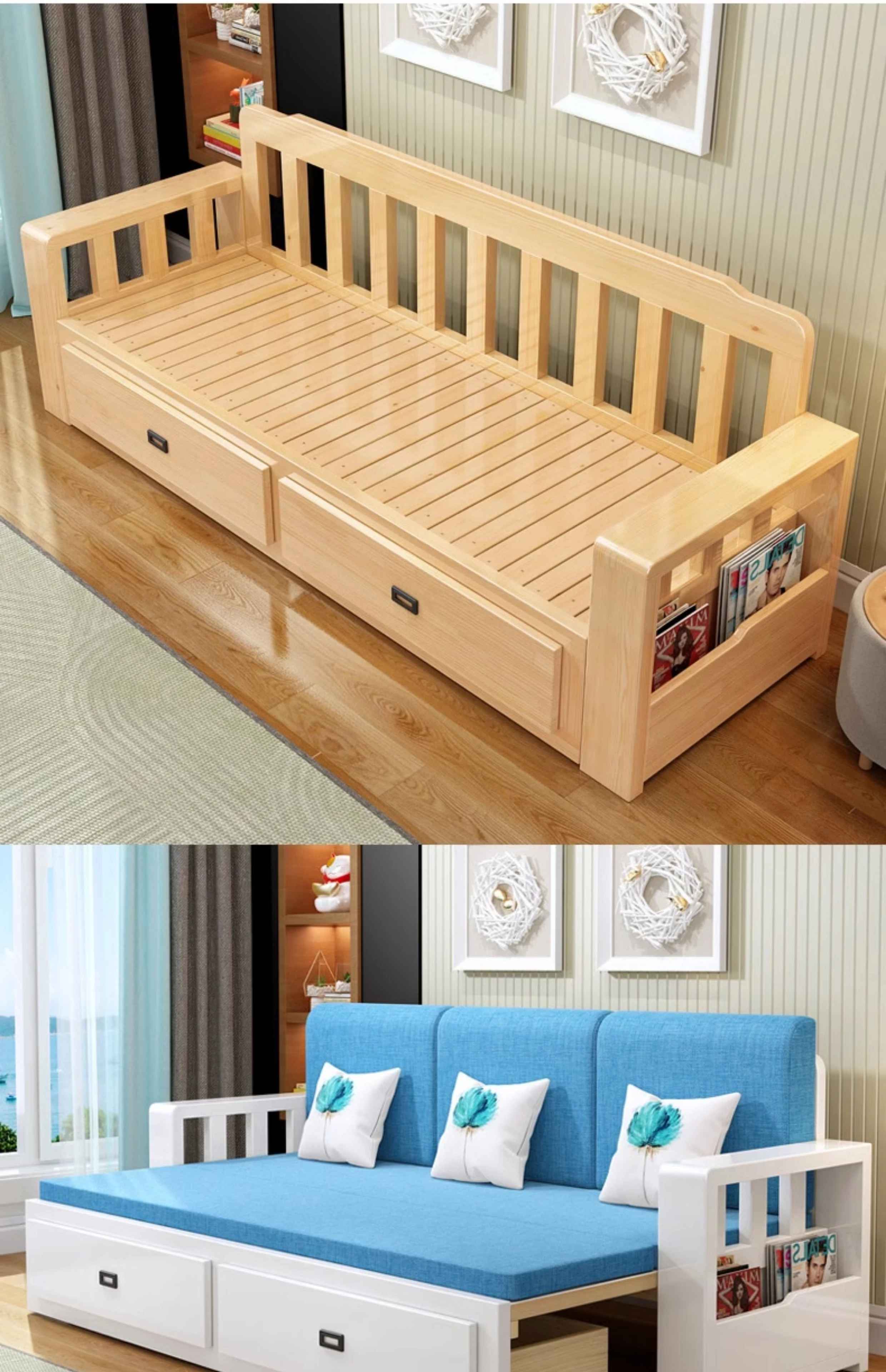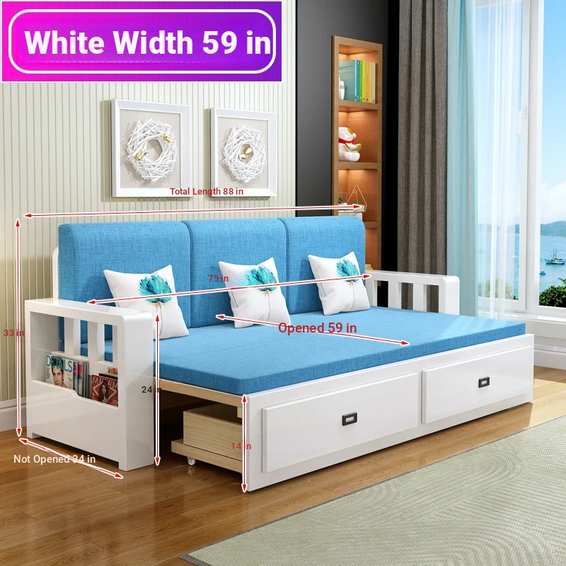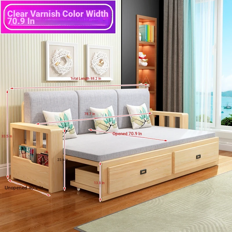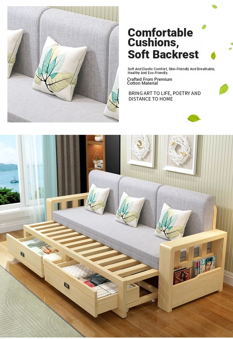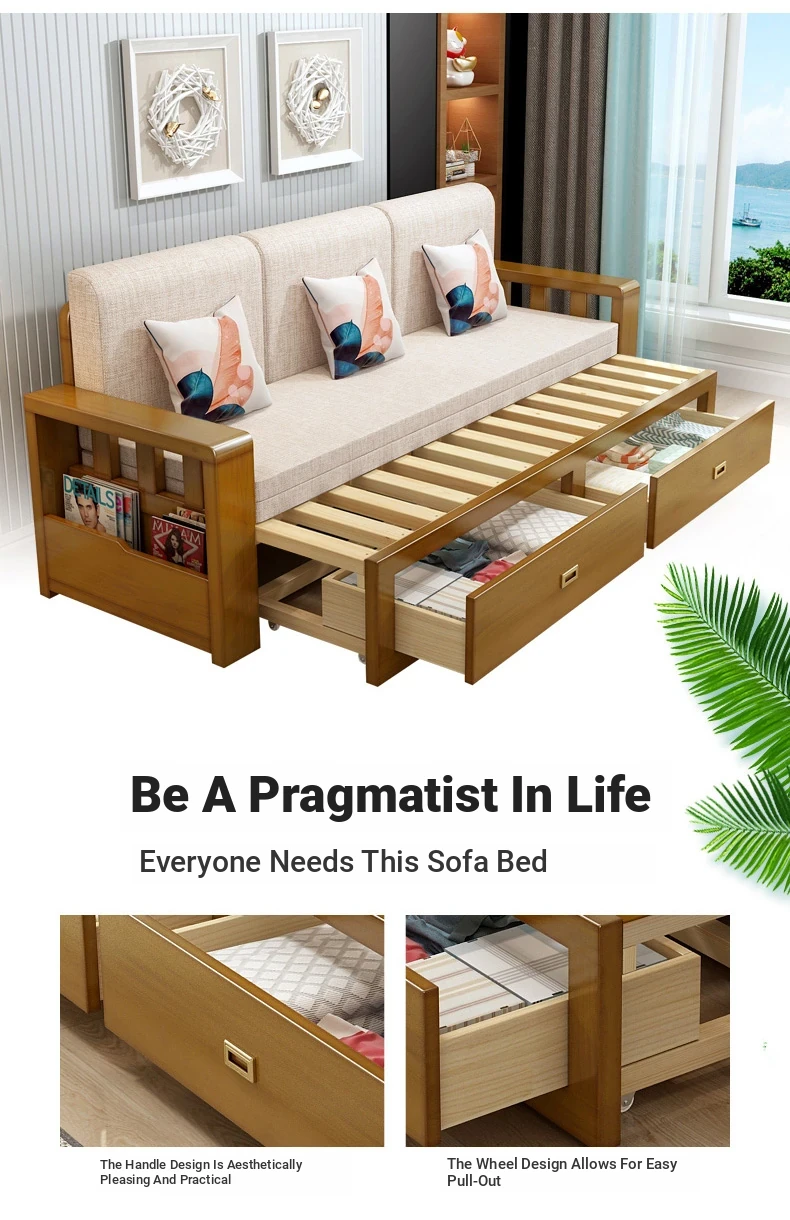 【Free Shipping to Hong Kong】New Chinese Style Sofa Bed with Storage - Foldable, Expandable, and Versatile Fabric and Solid Wood Design for Small Spaces