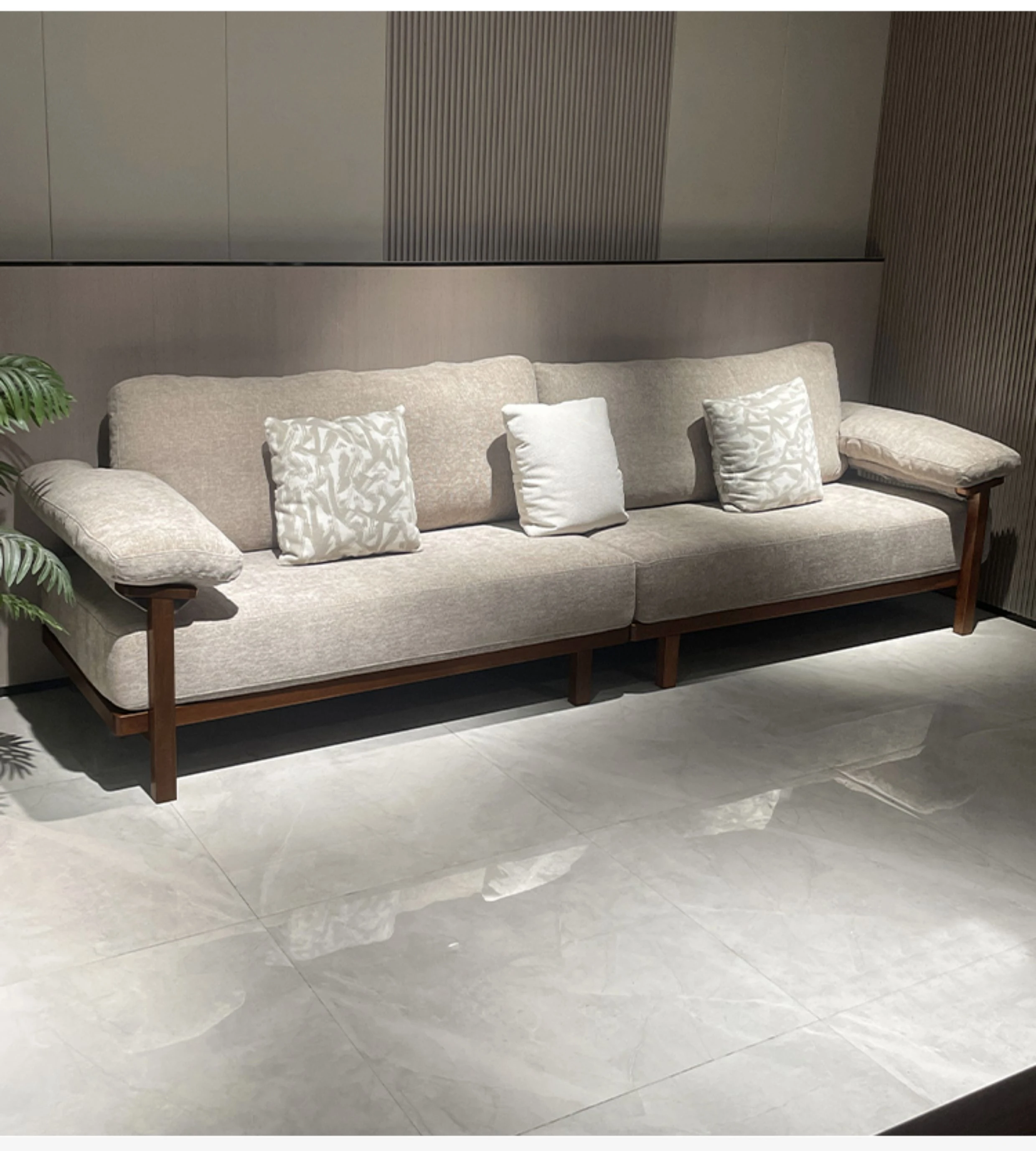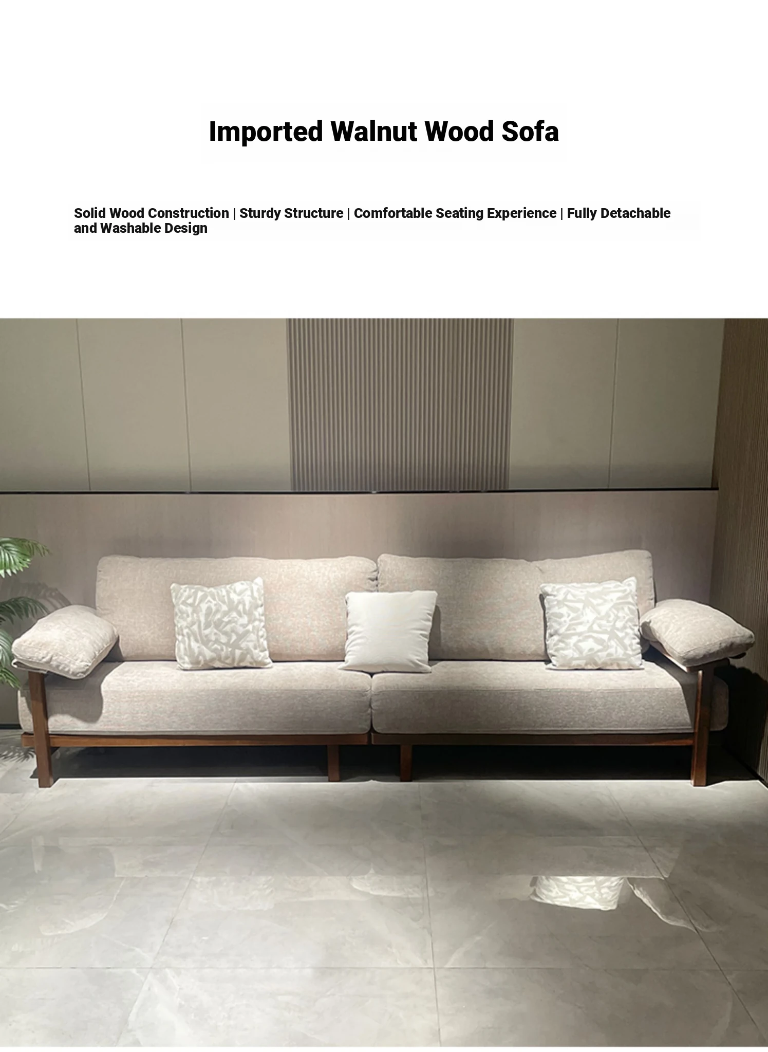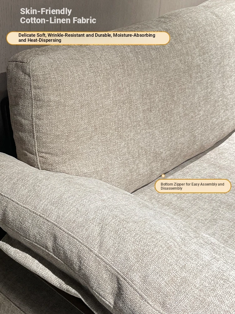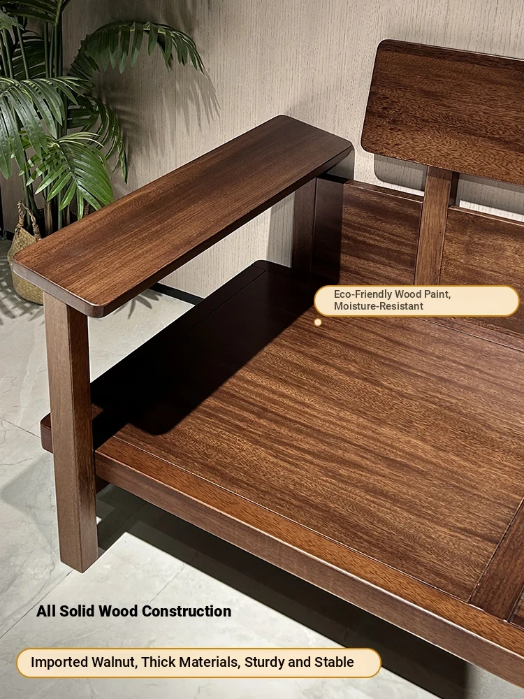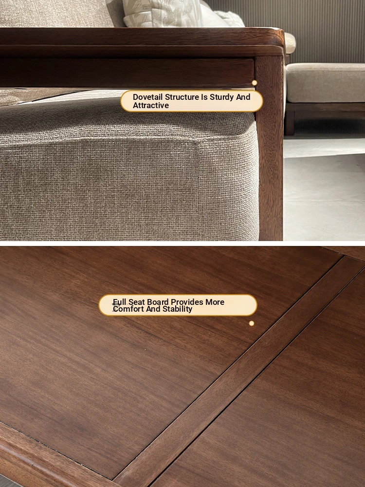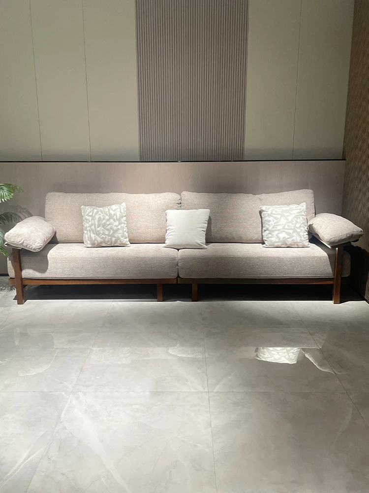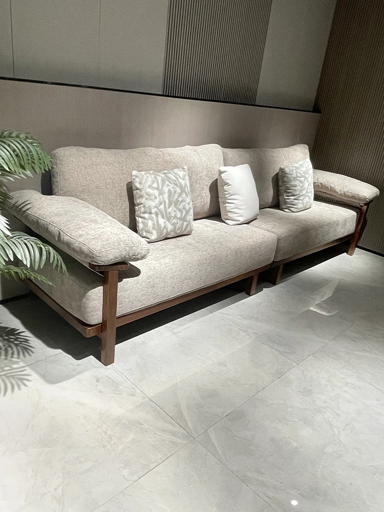 Modern Minimalist Solid Walnut Sofa for Small Living Rooms - All Solid Wood with Cotton Linen Fabric, Straight Four-Seater for Home Use