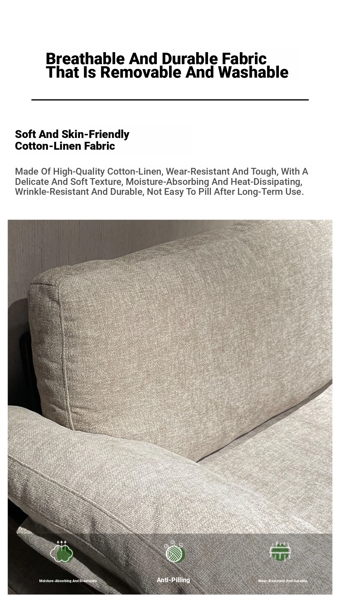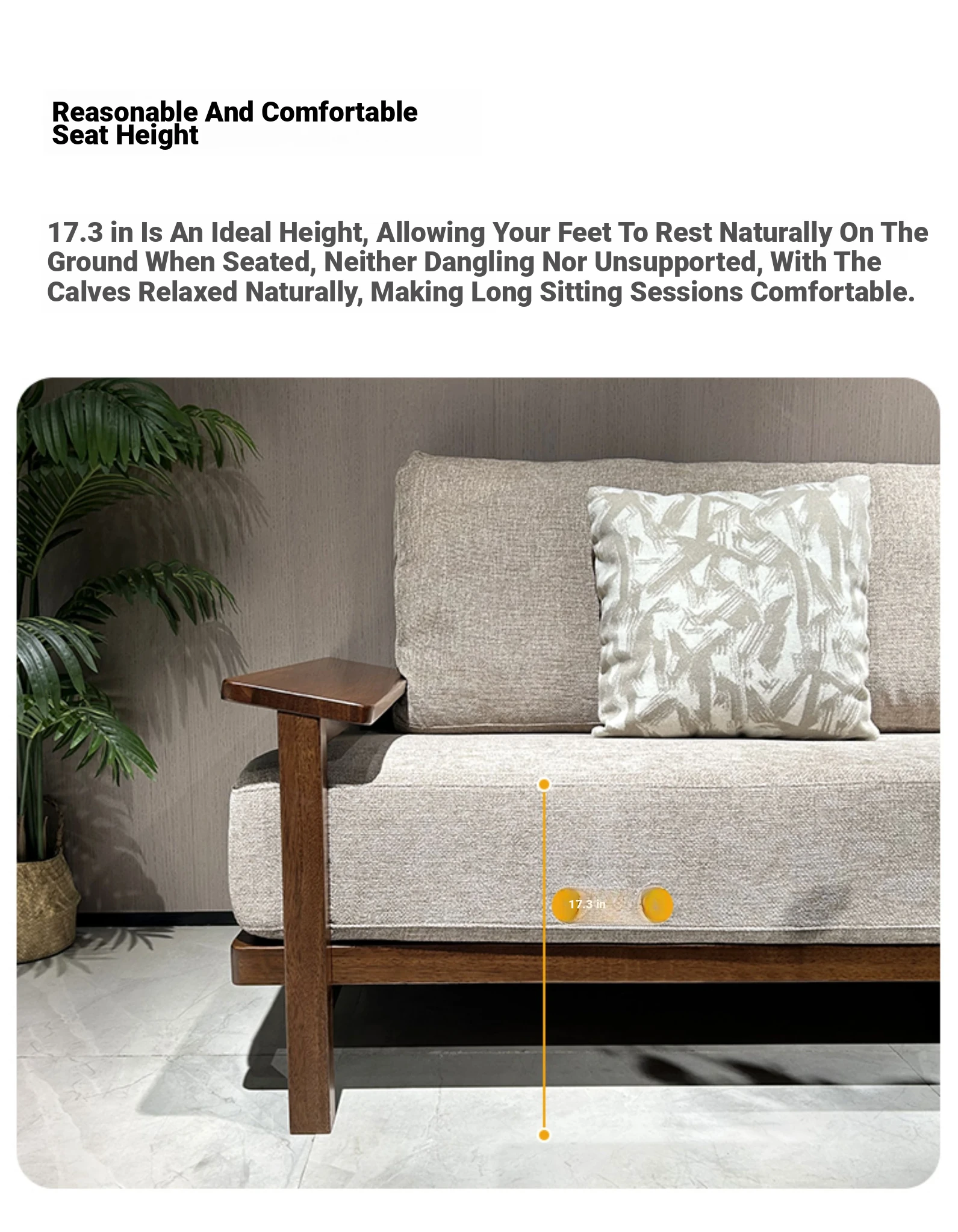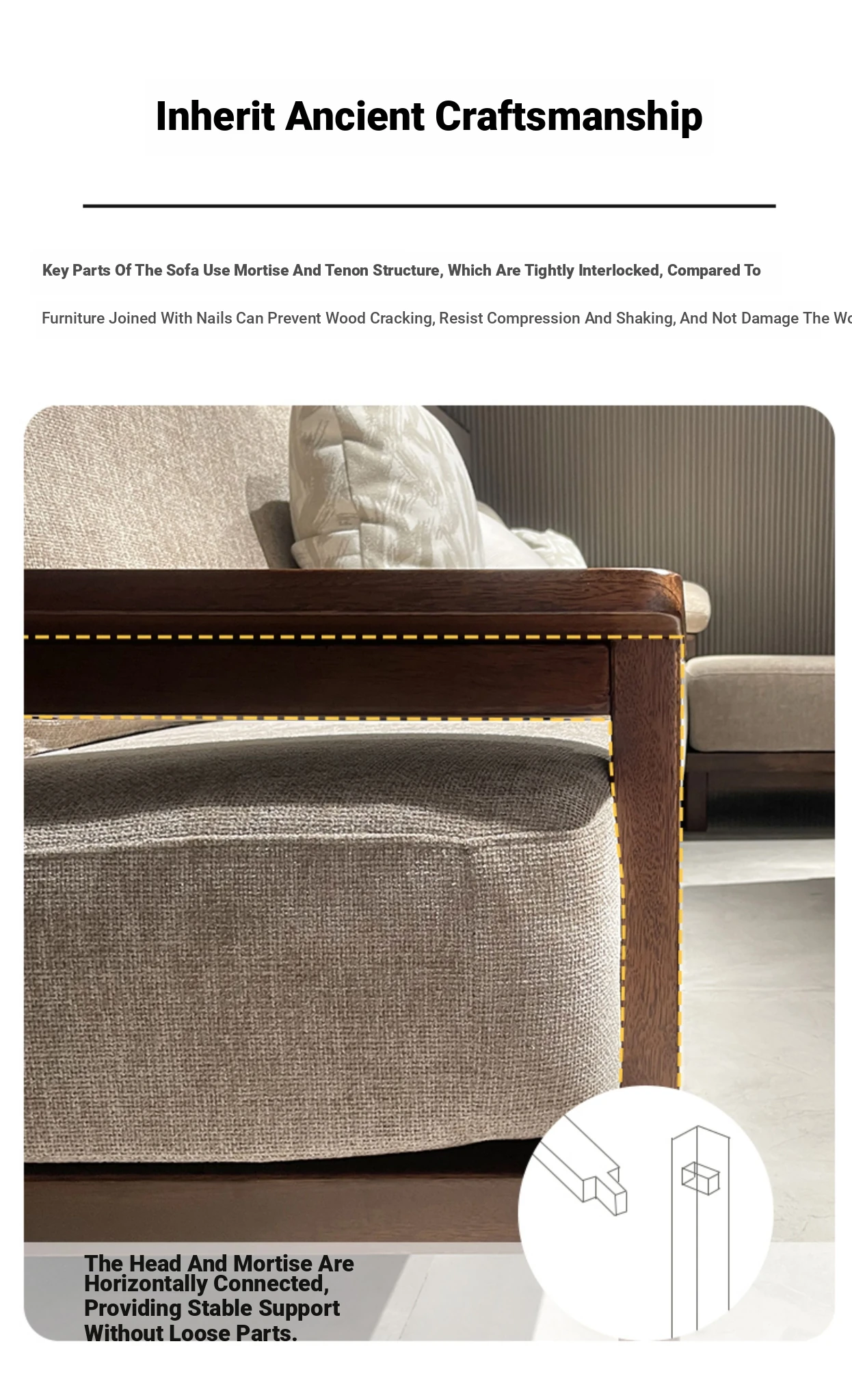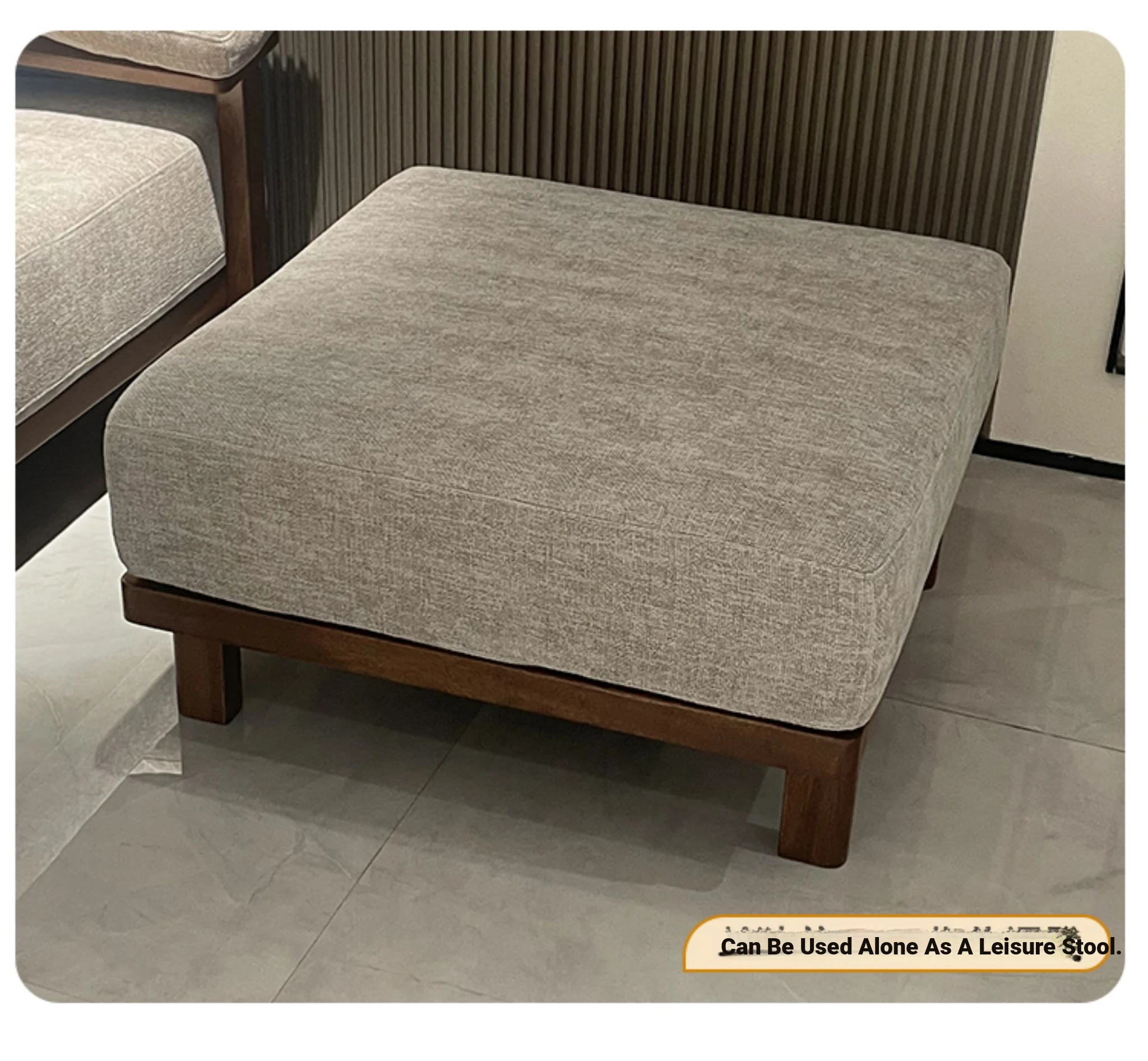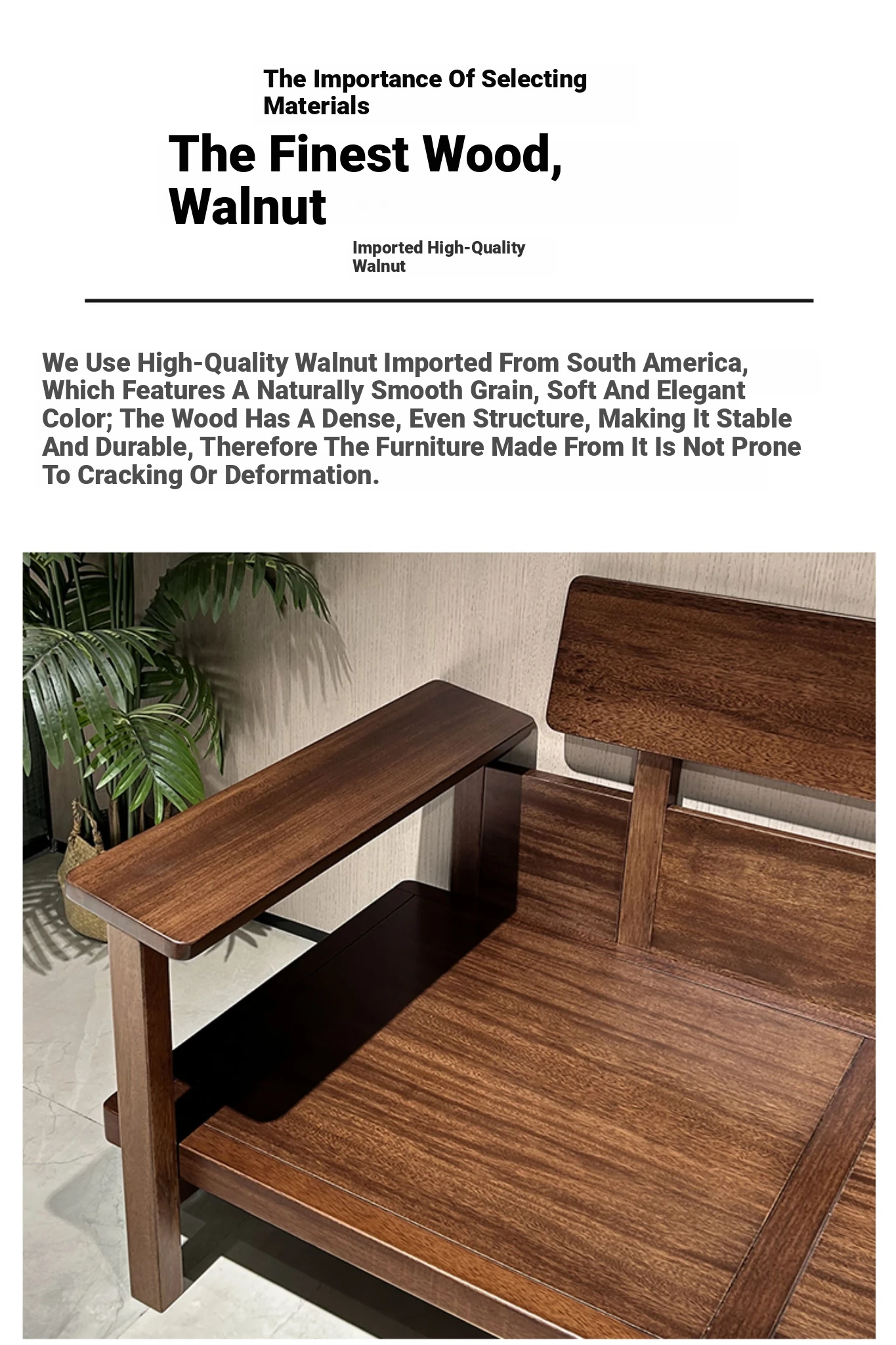 Modern Minimalist Solid Walnut Sofa for Small Living Rooms - All Solid Wood with Cotton Linen Fabric, Straight Four-Seater for Home Use