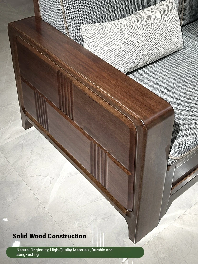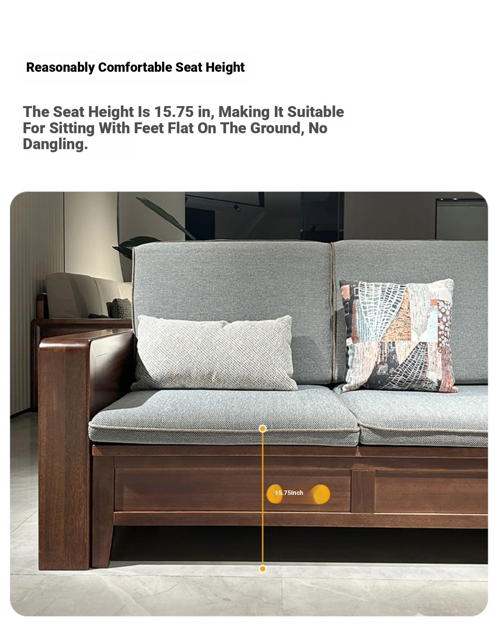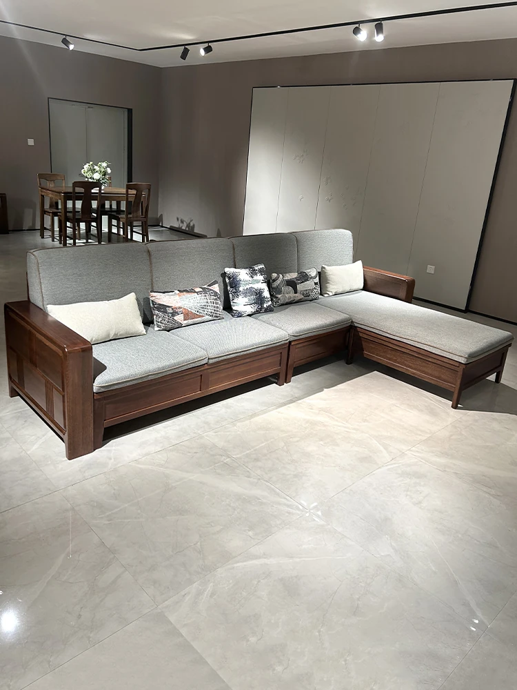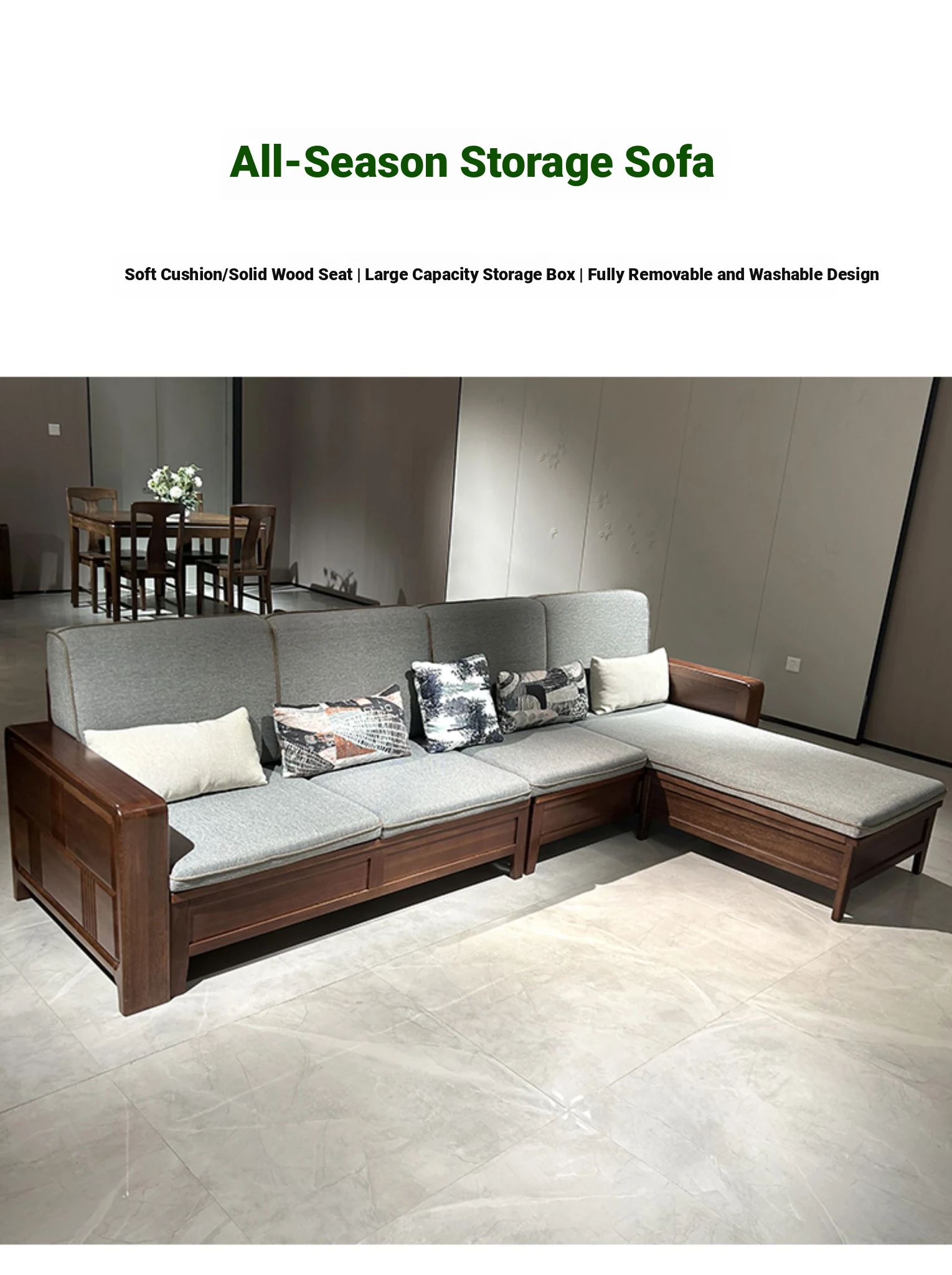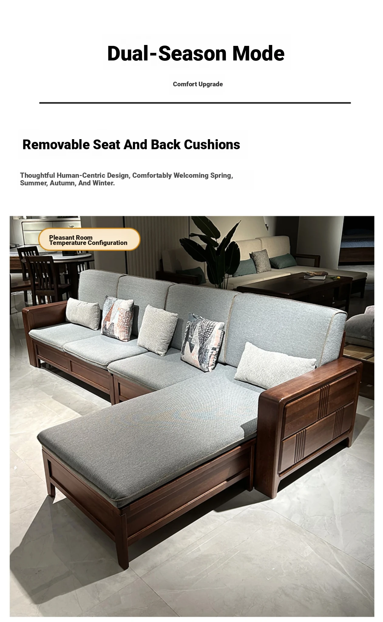Modern Minimalist Solid Wood Corner Sofa with Walnut Storage Box - Removable and Washable for Small Living Spaces