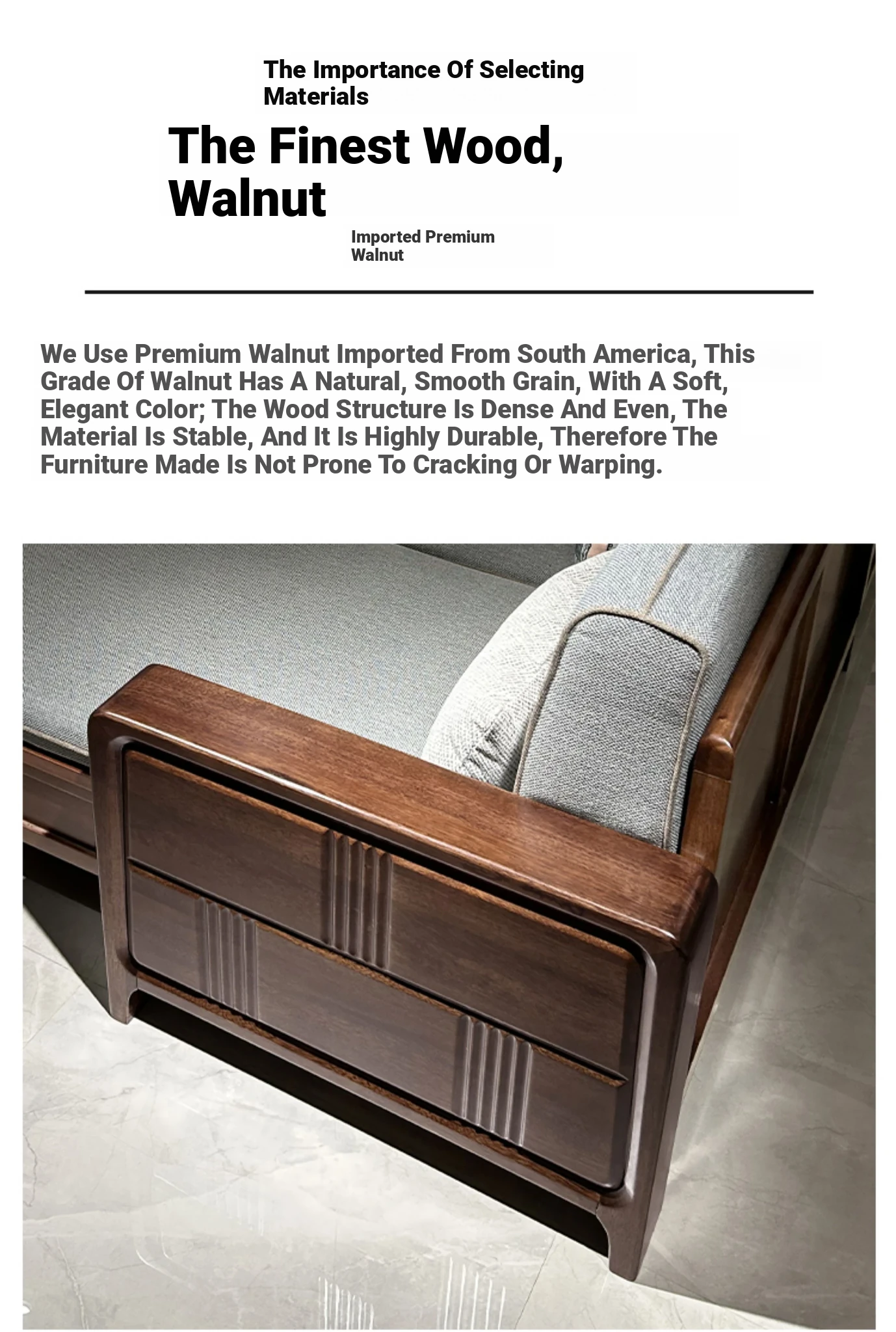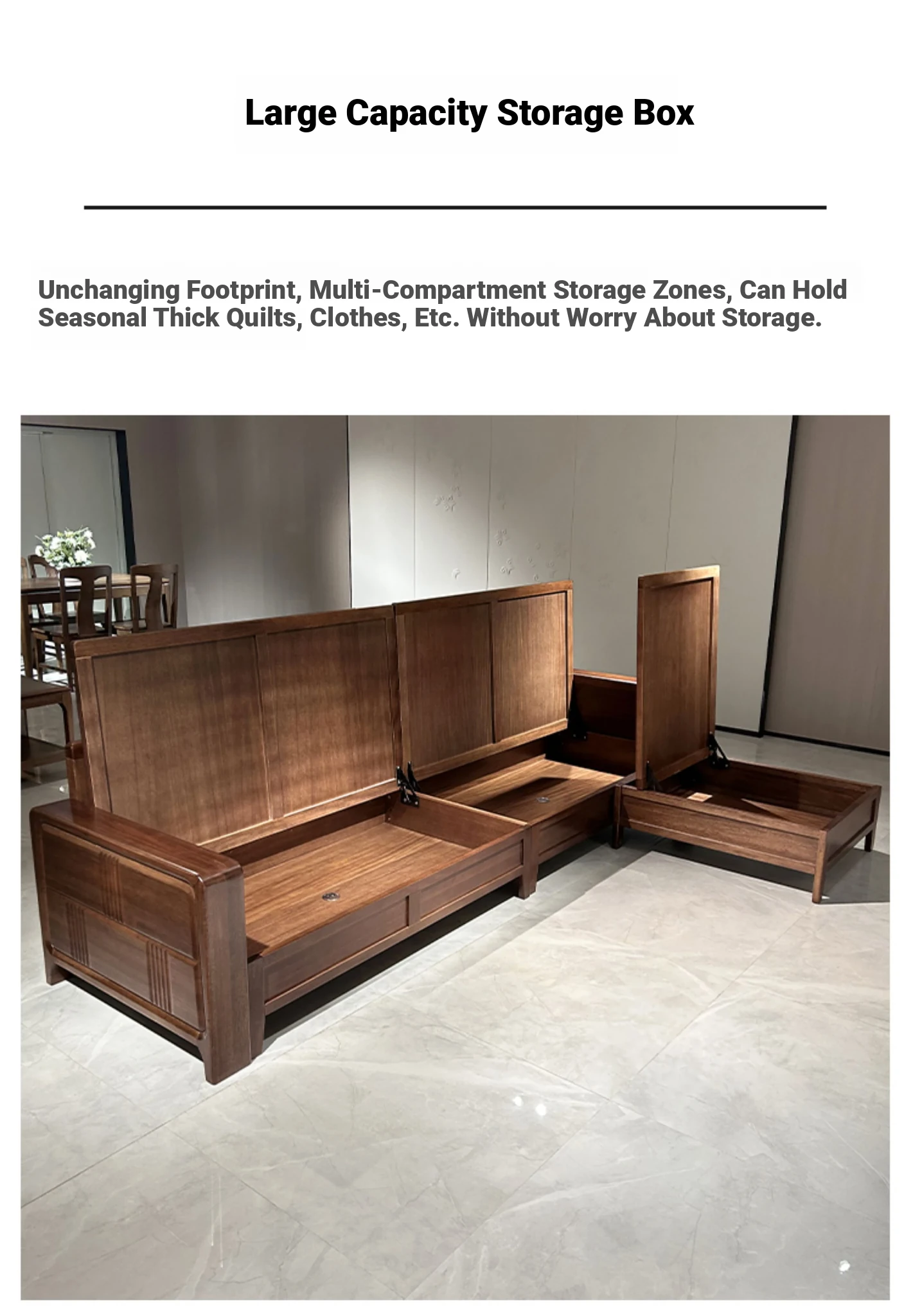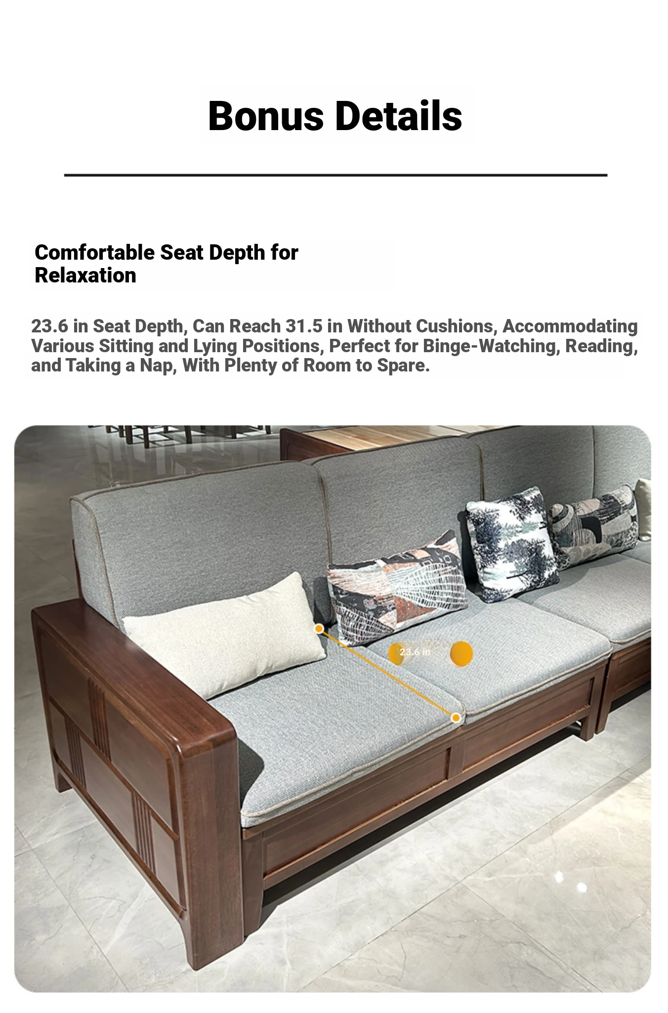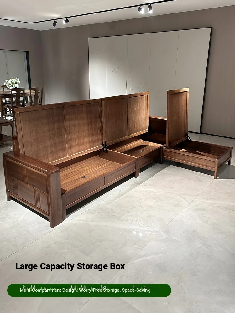Modern Minimalist Solid Wood Corner Sofa with Walnut Storage Box - Removable and Washable for Small Living Spaces