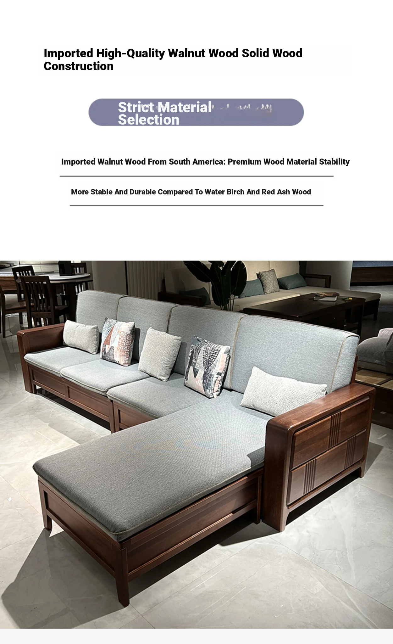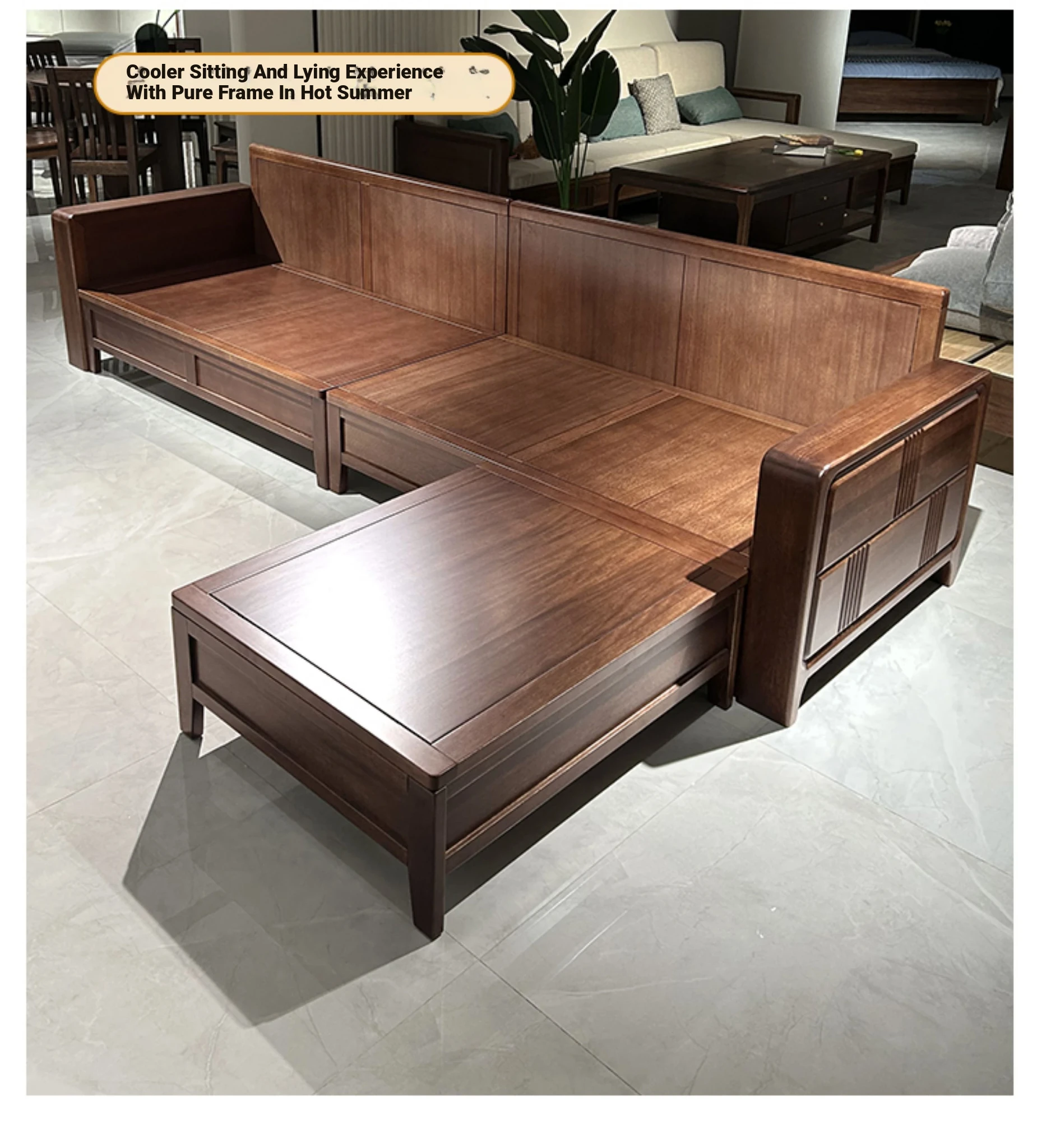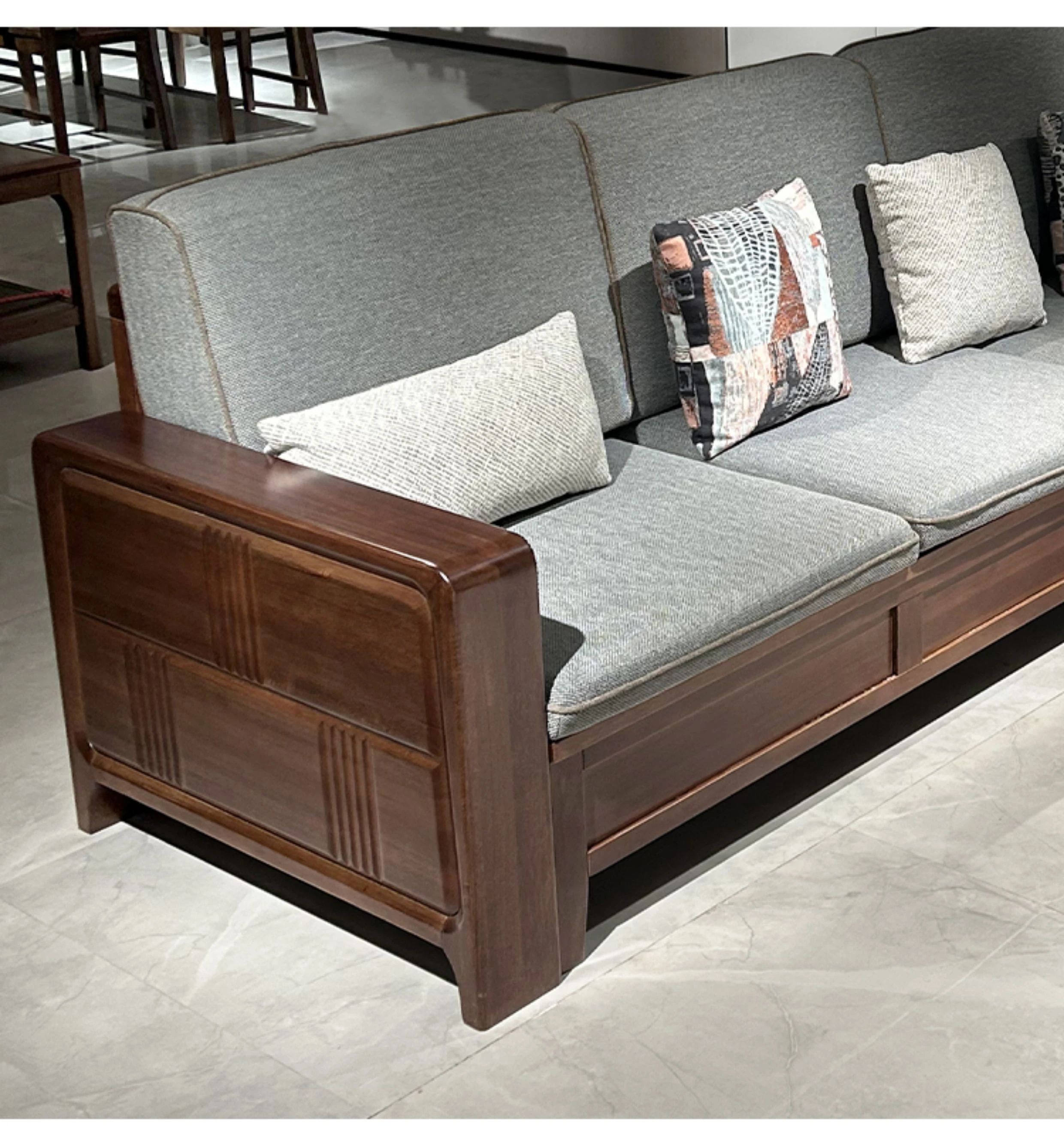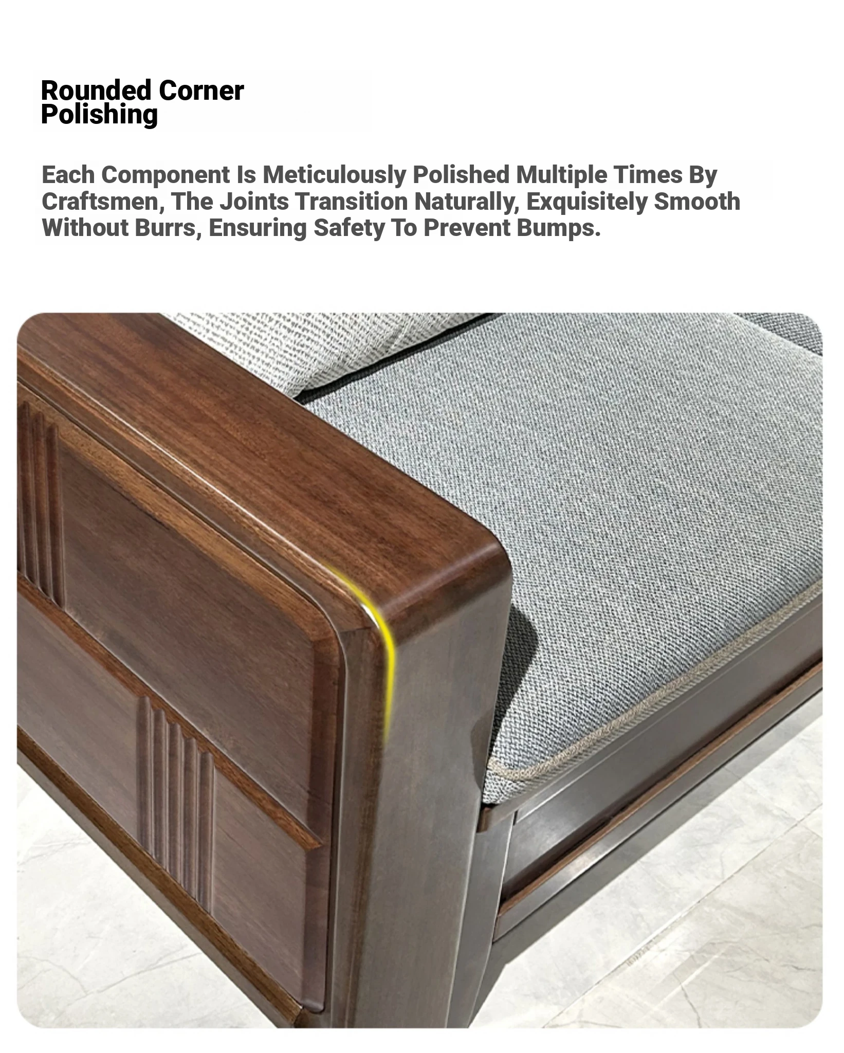Modern Minimalist Solid Wood Corner Sofa with Walnut Storage Box - Removable and Washable for Small Living Spaces