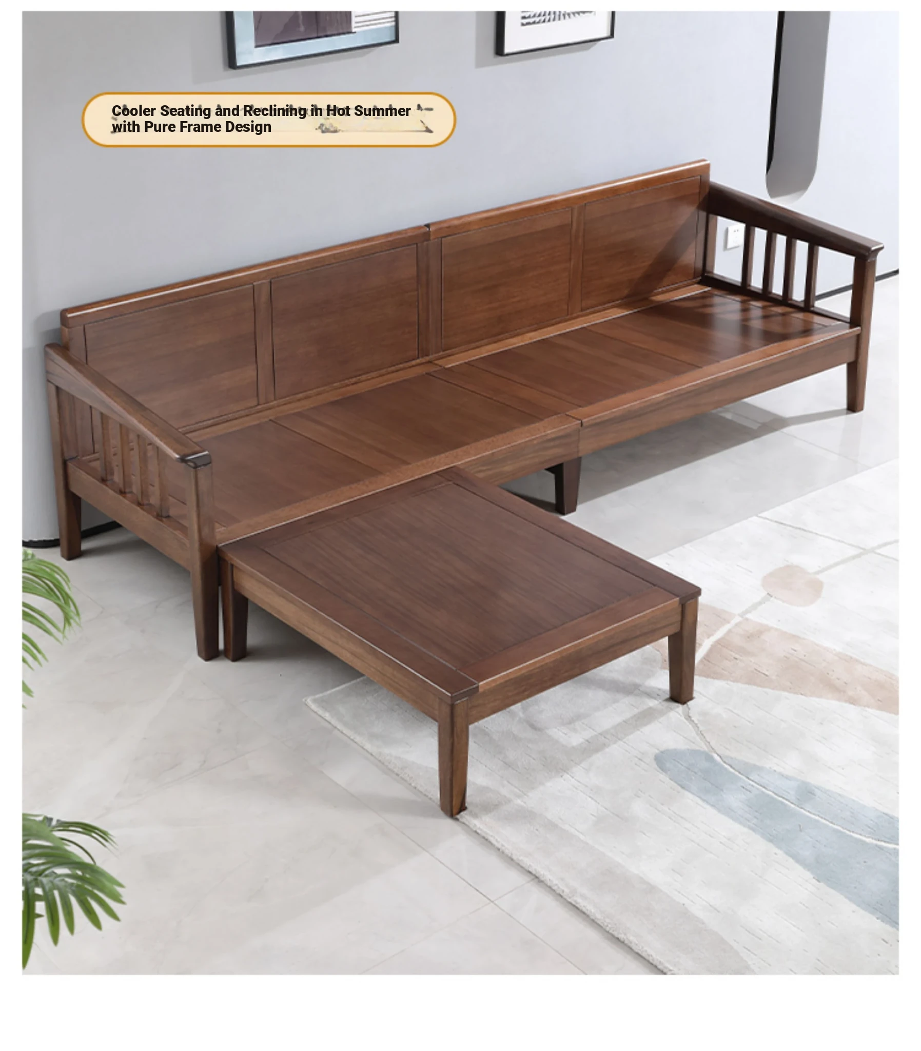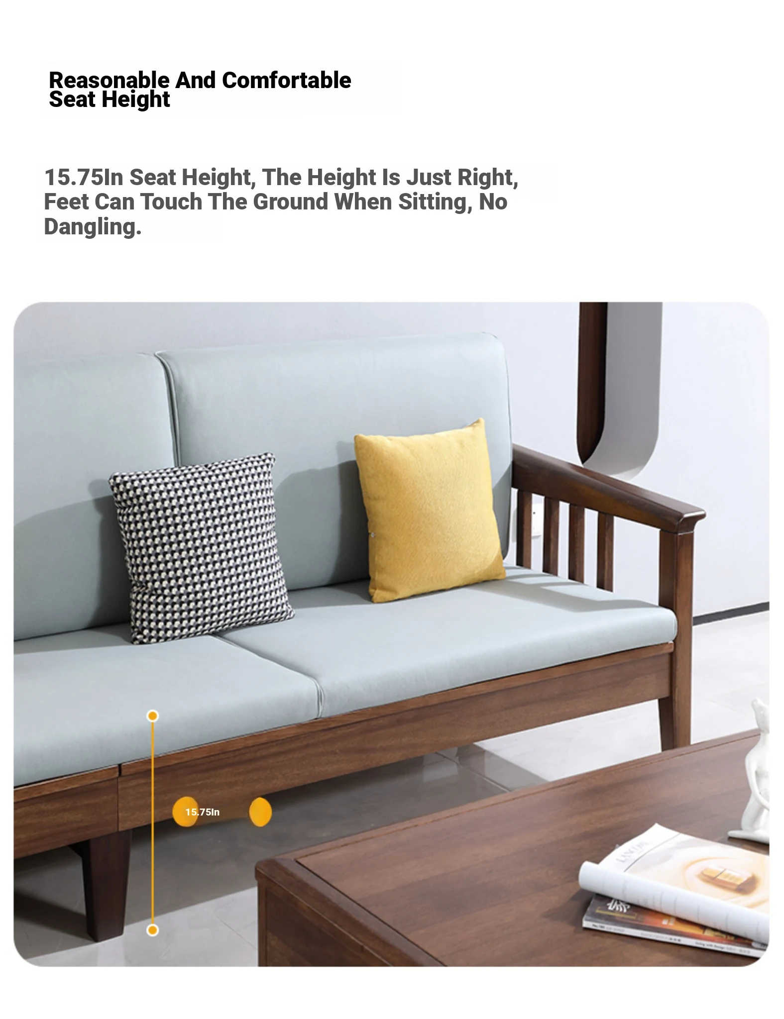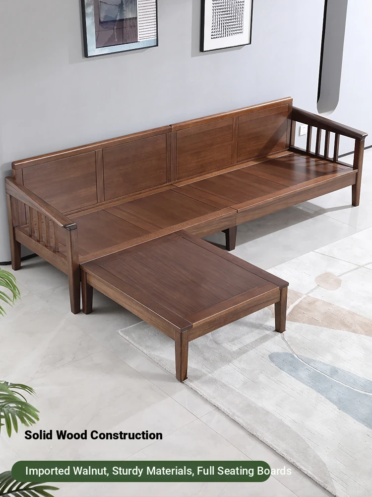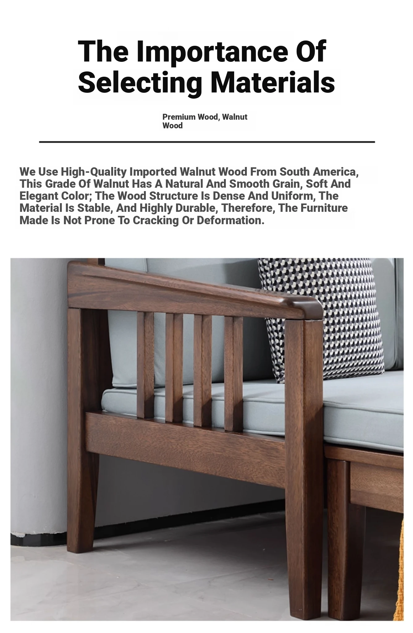 Modern Solid Wood Sofa for Living Room - Minimalist Walnut Two-Three Seater for Small Spaces, Perfect for Home Use
