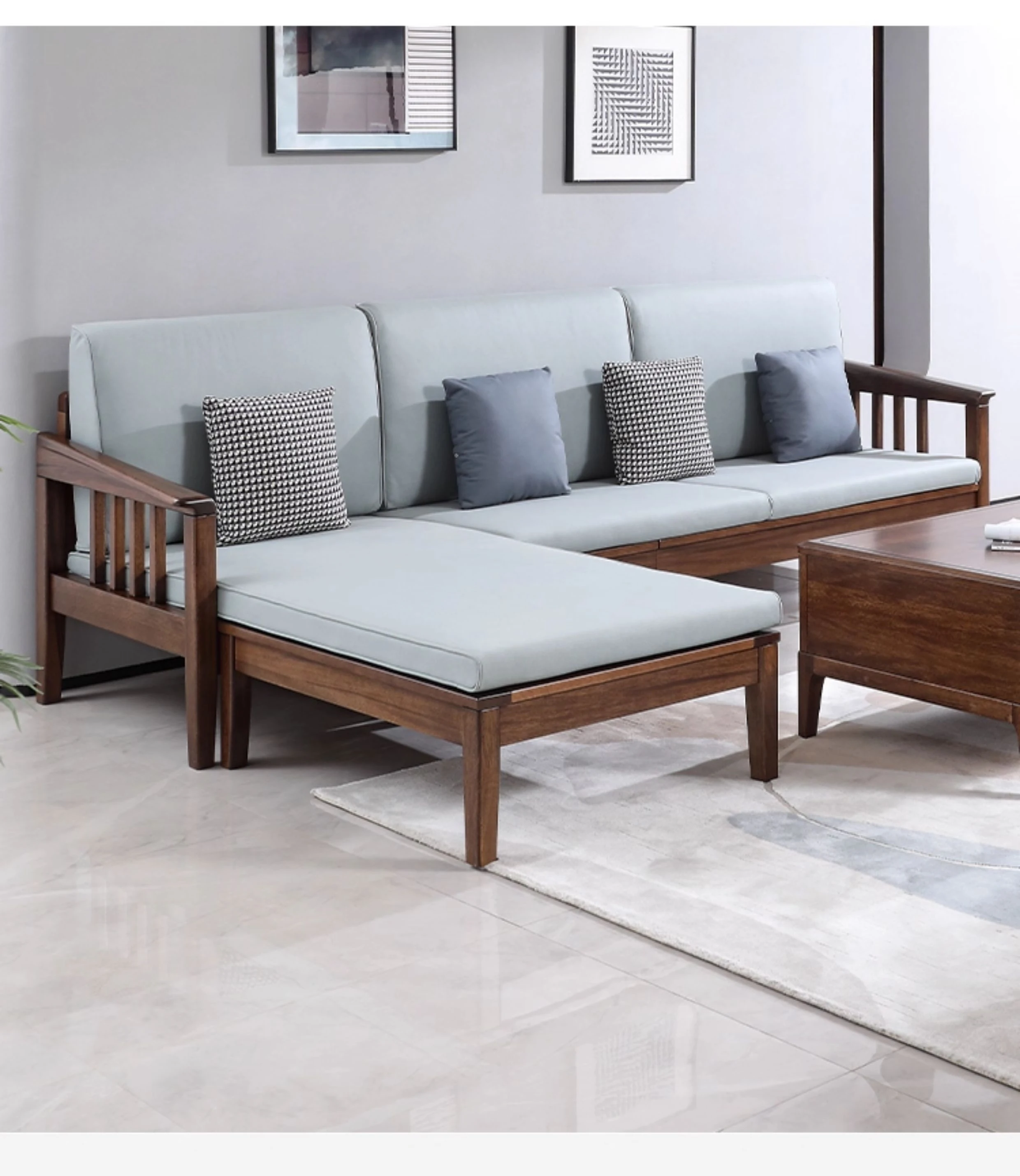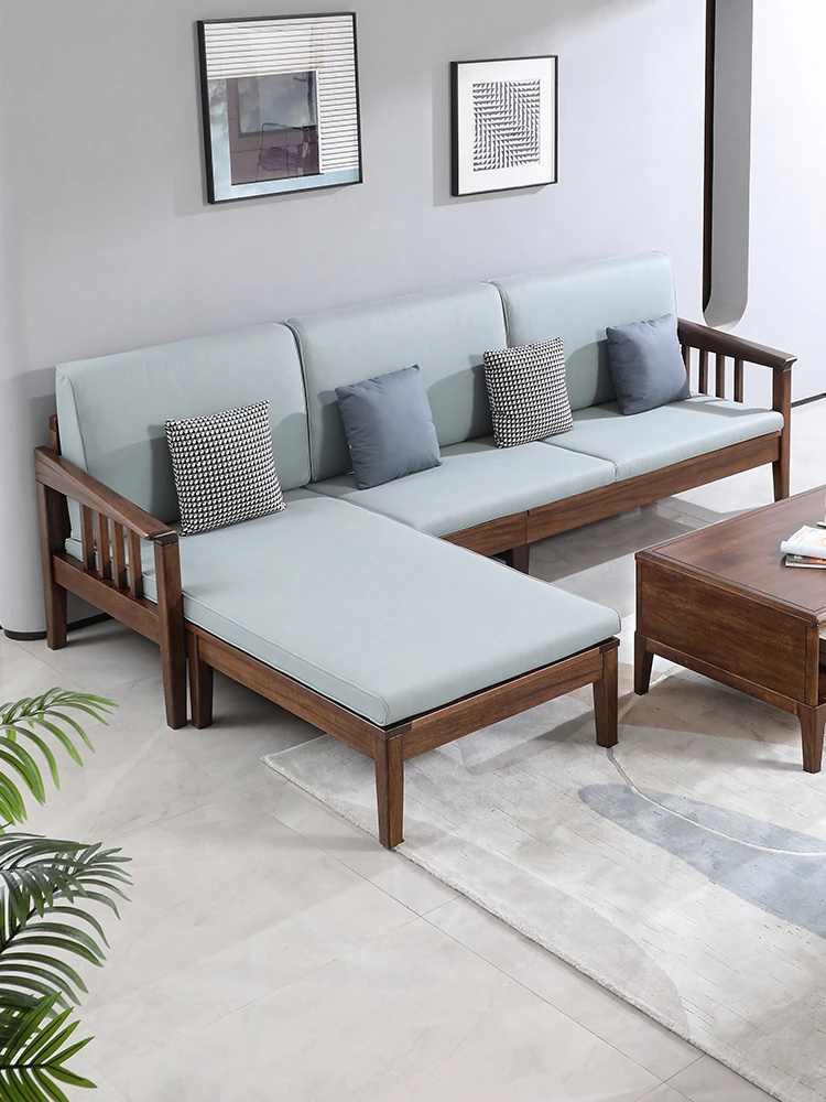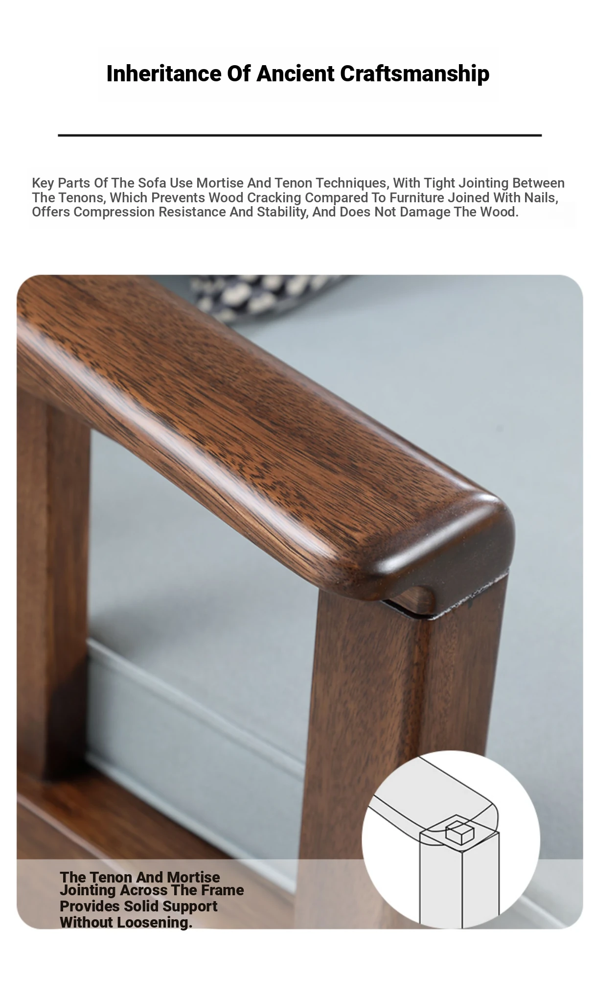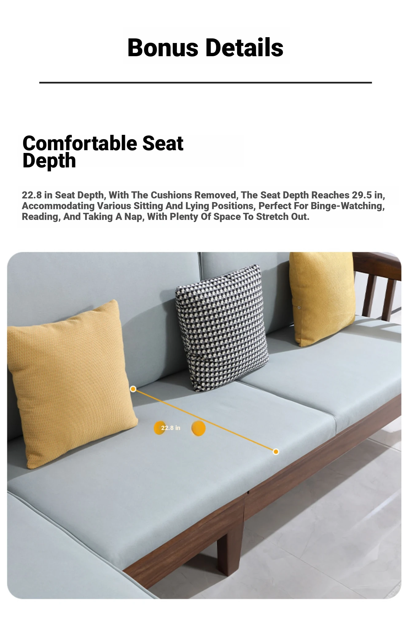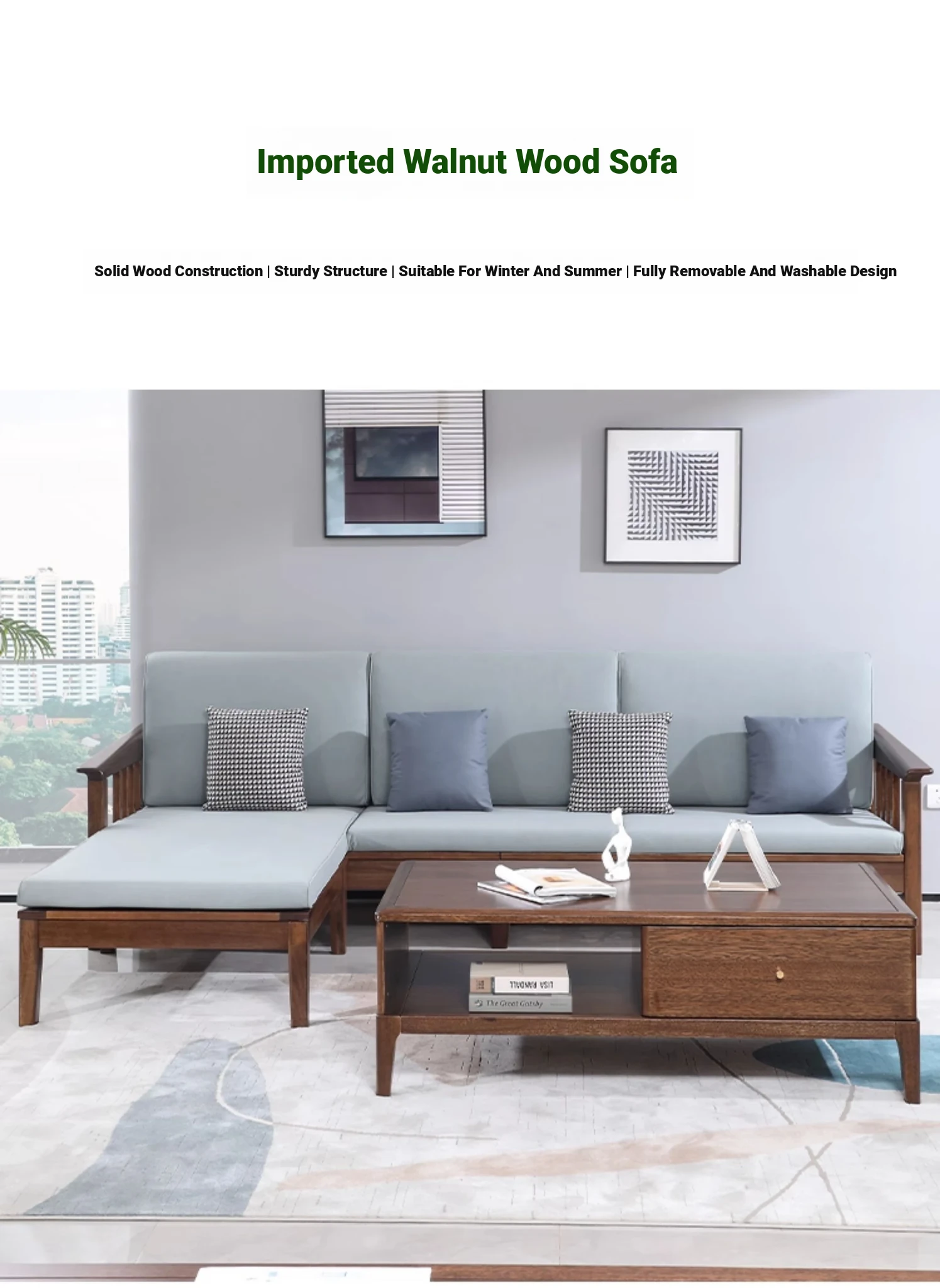 Modern Solid Wood Sofa for Living Room - Minimalist Walnut Two-Three Seater for Small Spaces, Perfect for Home Use