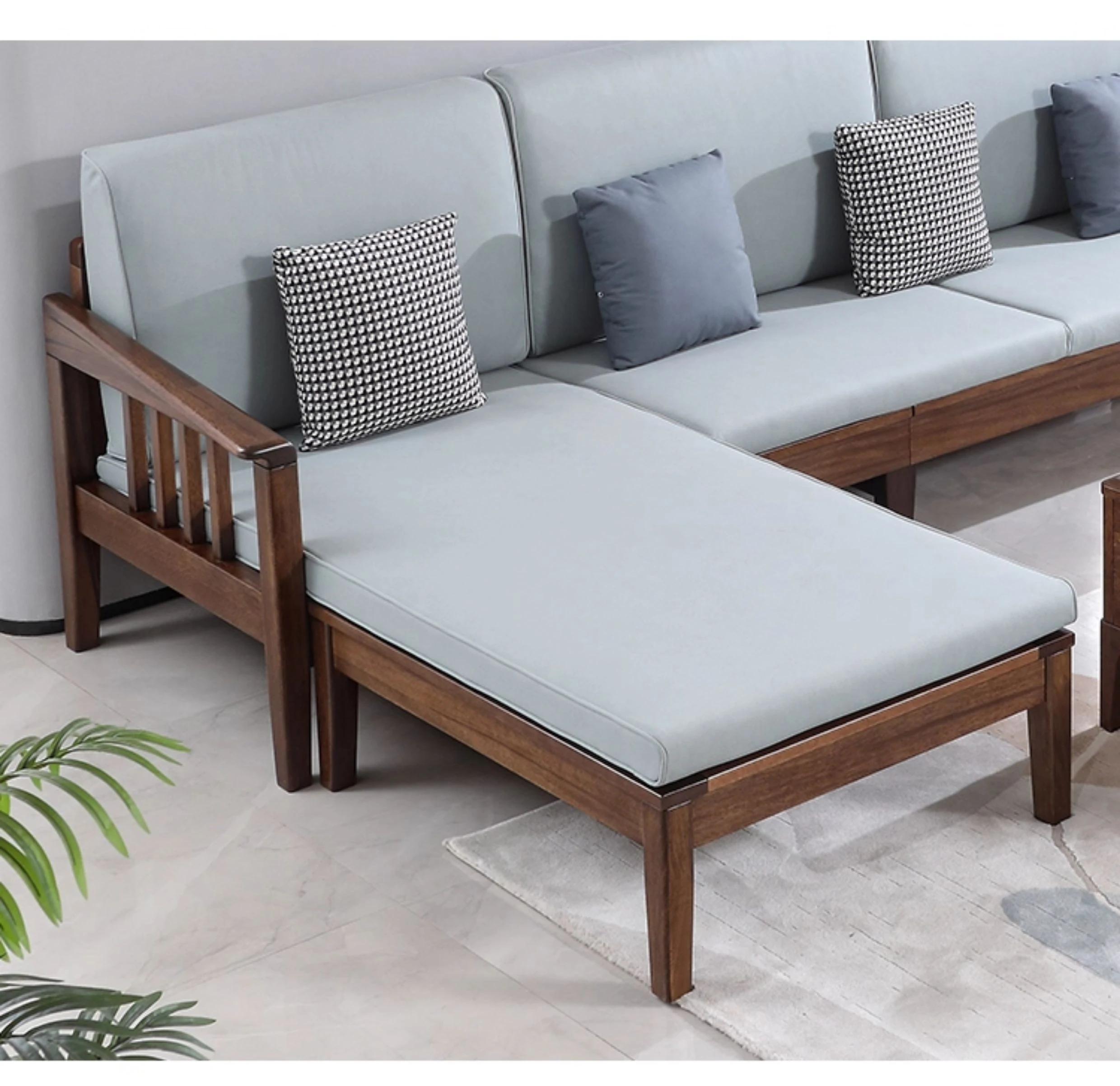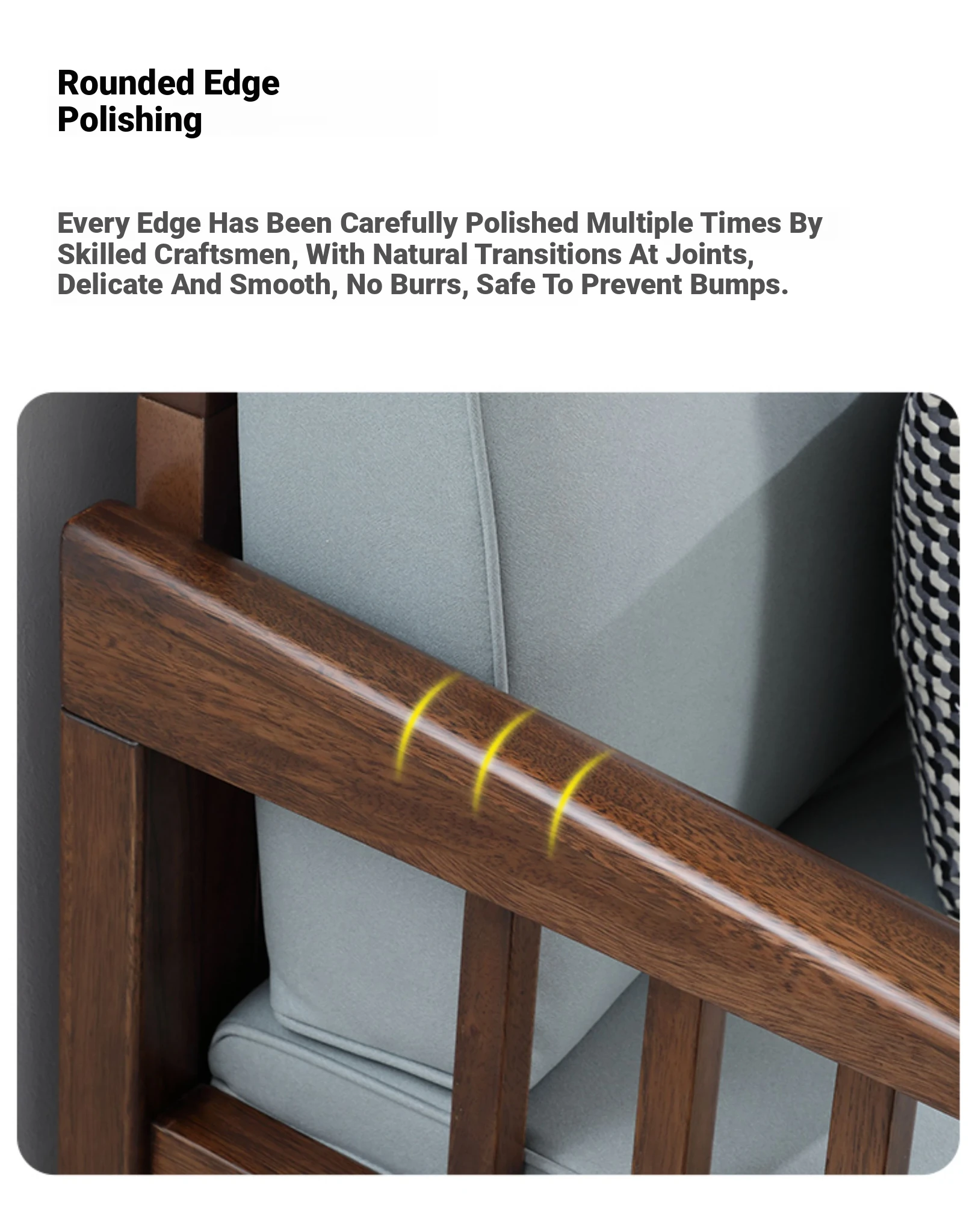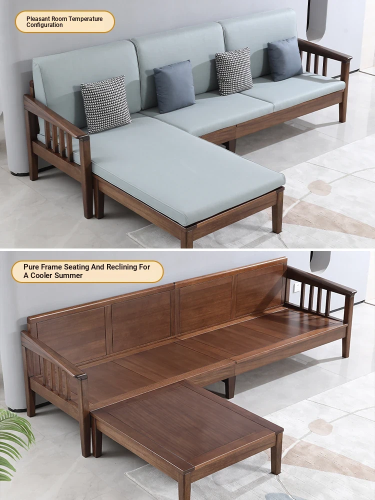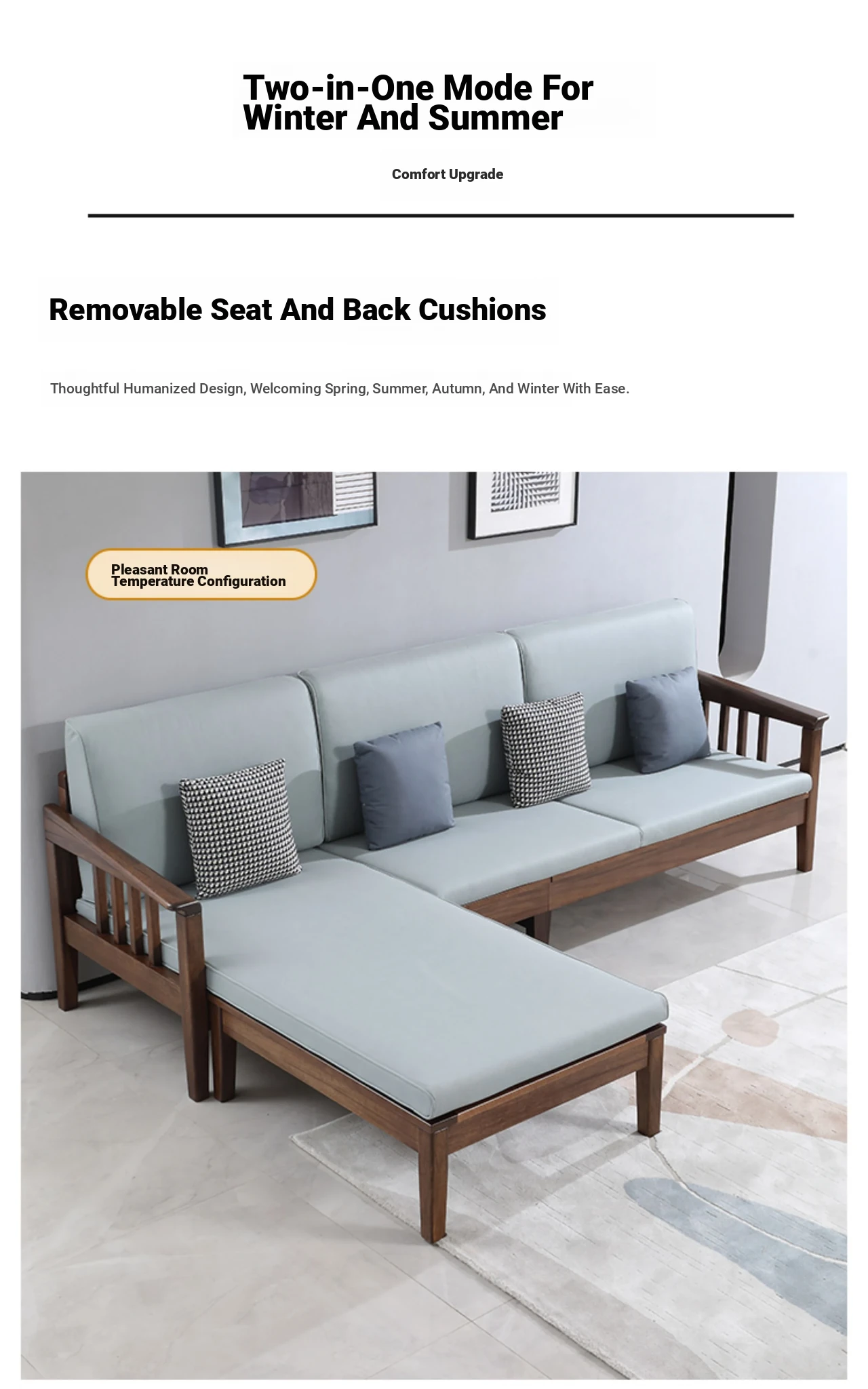 Modern Solid Wood Sofa for Living Room - Minimalist Walnut Two-Three Seater for Small Spaces, Perfect for Home Use