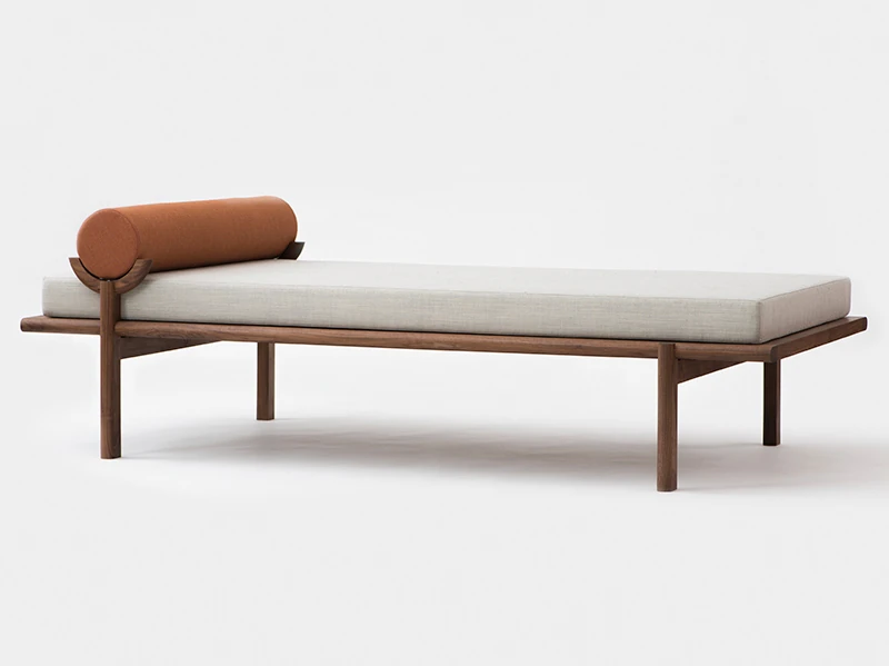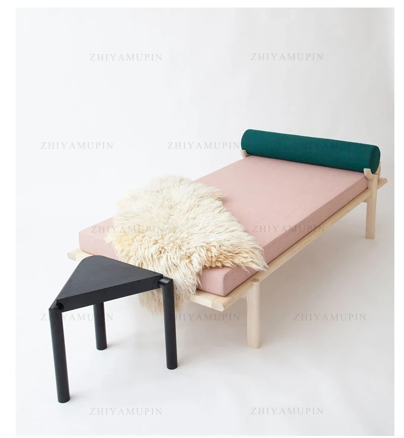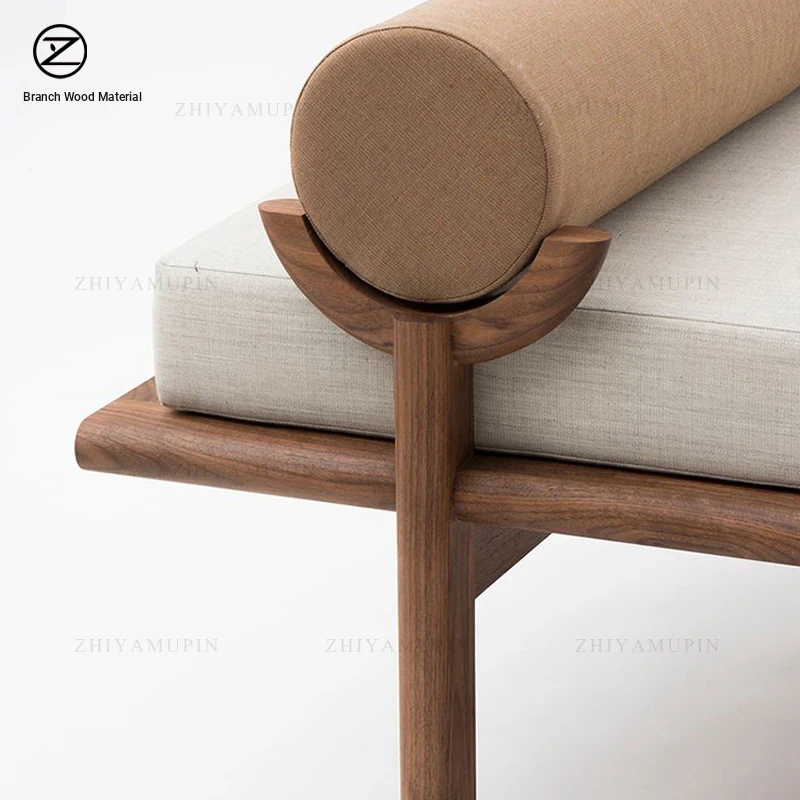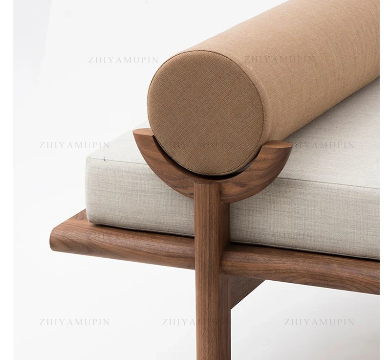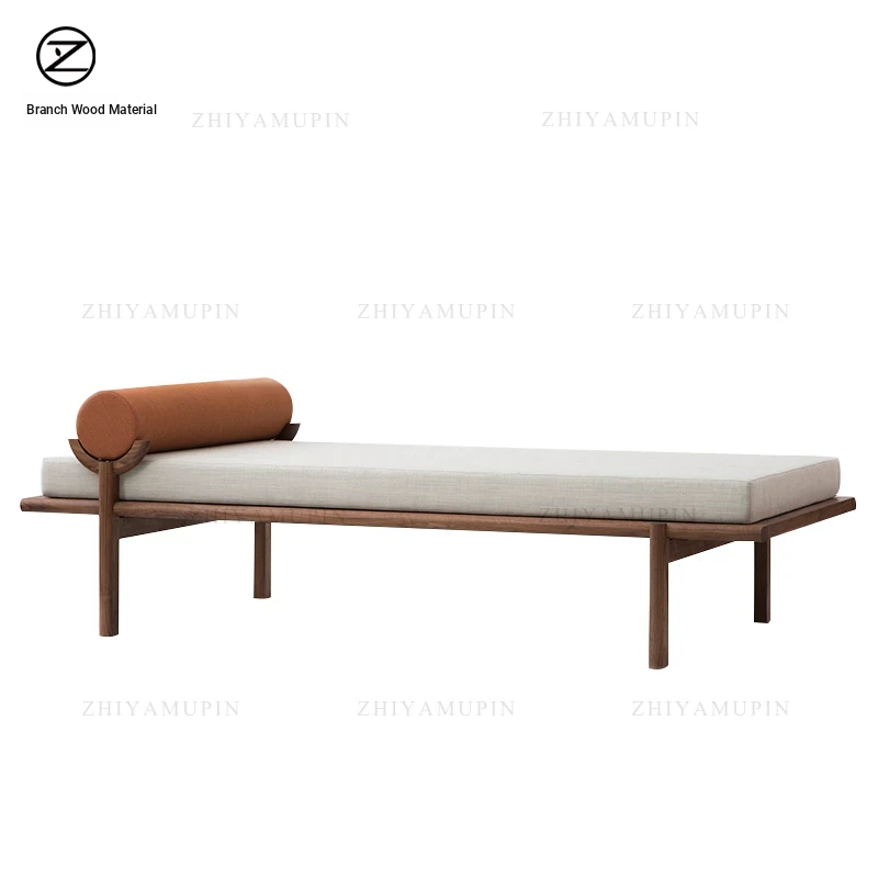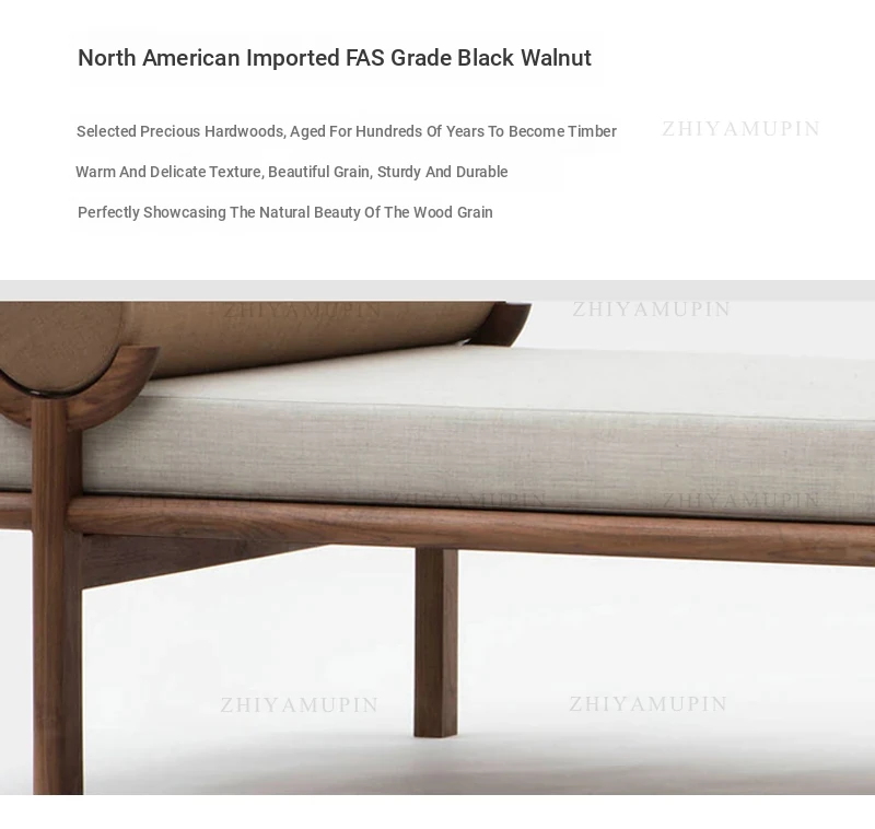 Nordic Chaise Lounge Chair in Black Walnut - Elegant Fabric Recliner for Living Room, Stylish Single Sofa, Perfect Daybed for Bedroom Relaxation