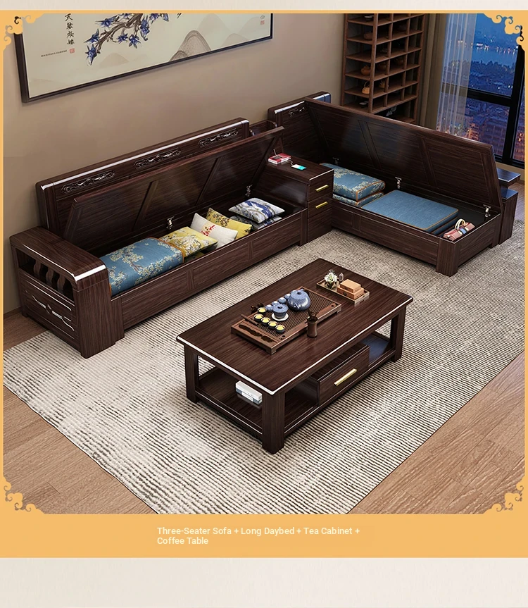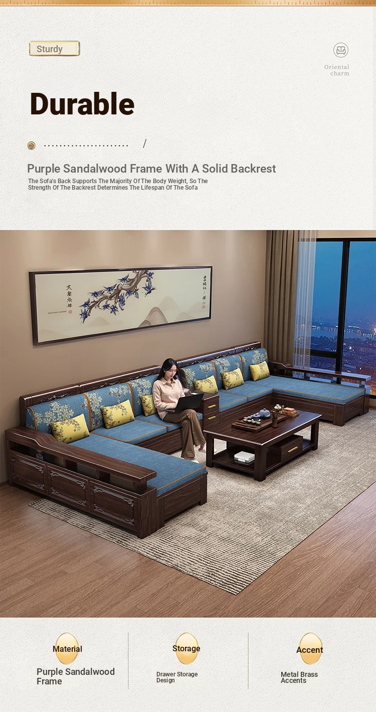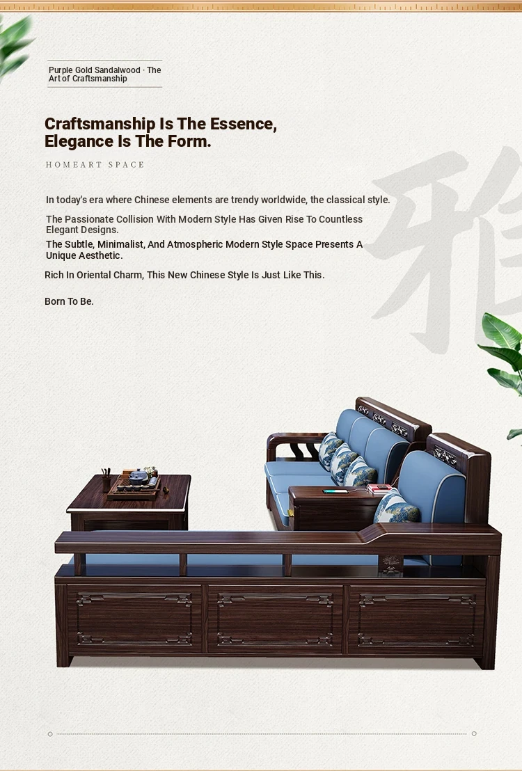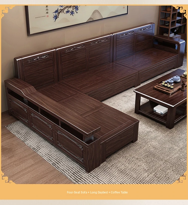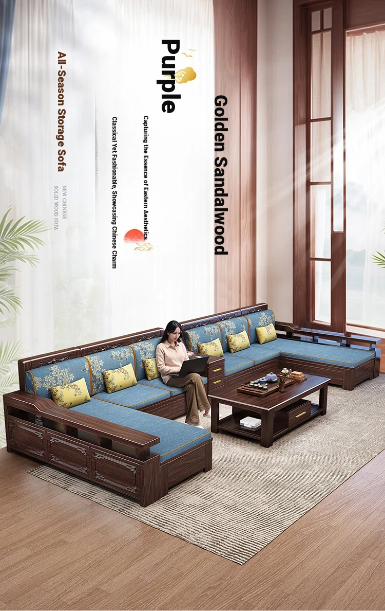 Purple Sandalwood Solid Wood Sofa - Modern New Chinese Style Living Room Furniture Set with Storage - All Solid Wood Sofa Combination for Home Use