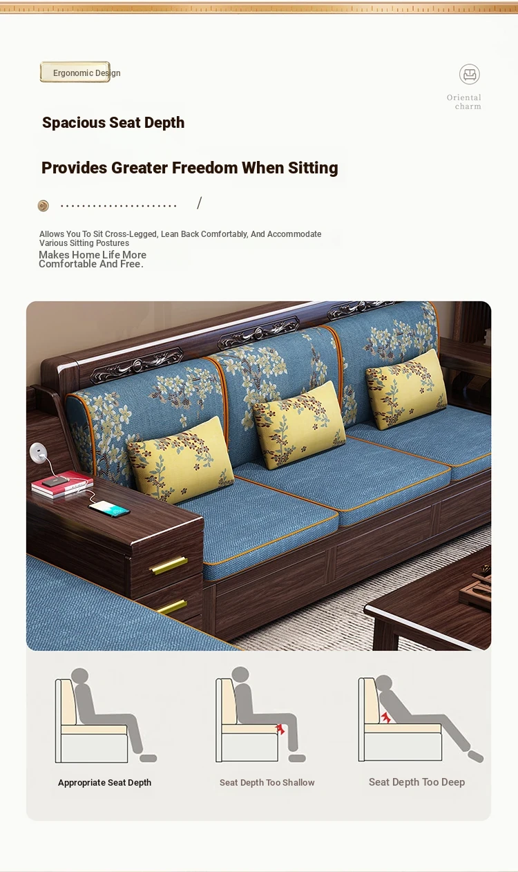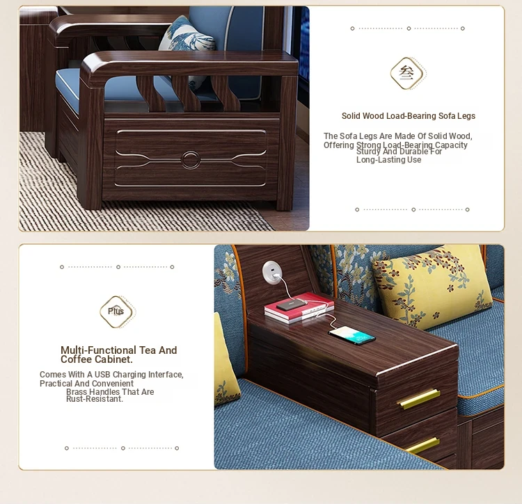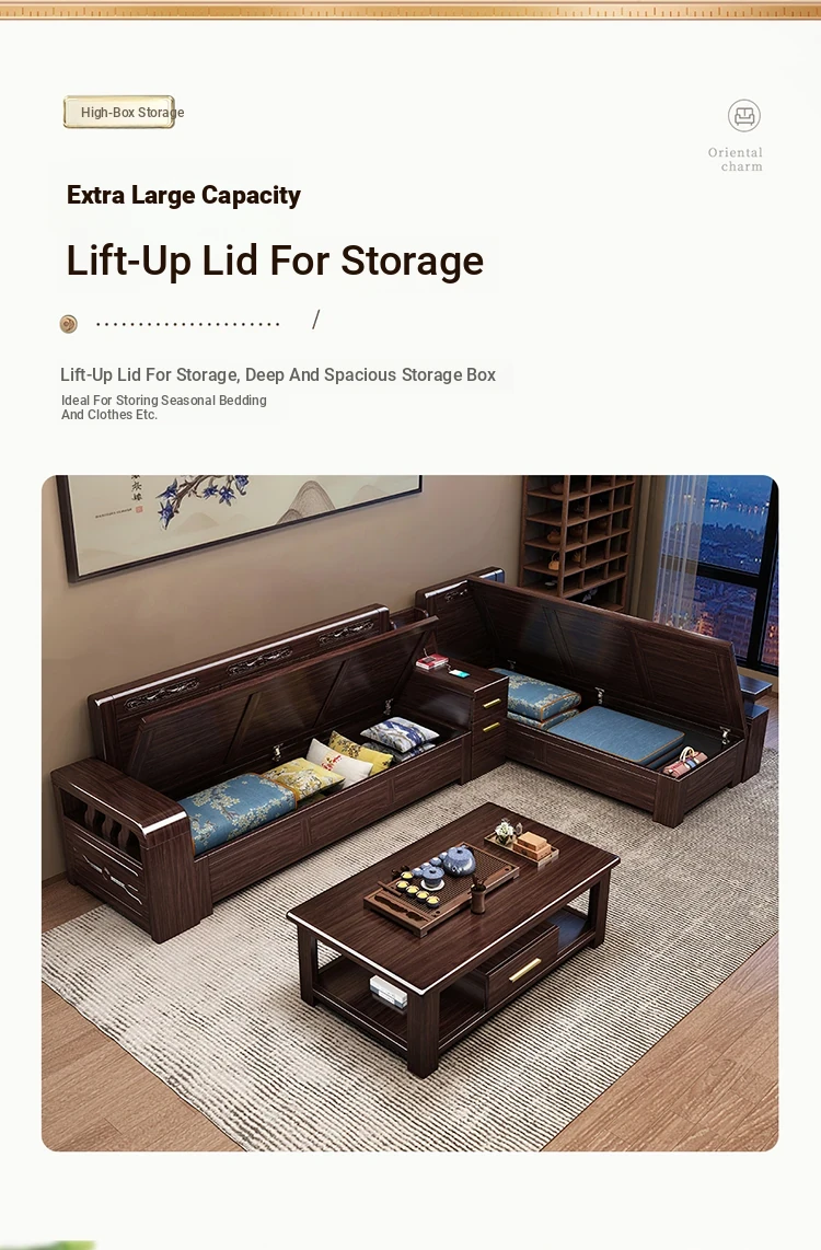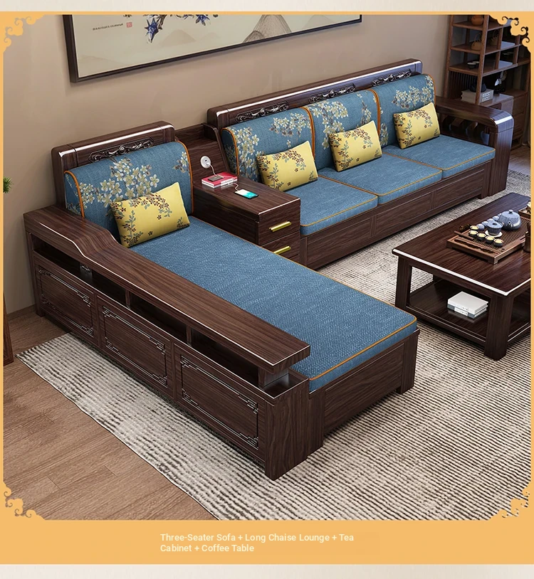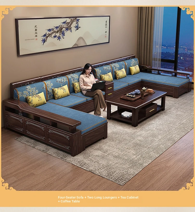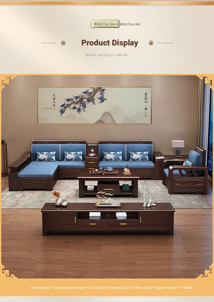 Purple Sandalwood Solid Wood Sofa - Modern New Chinese Style Living Room Furniture Set with Storage - All Solid Wood Sofa Combination for Home Use