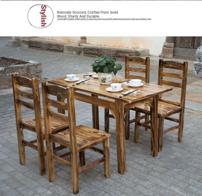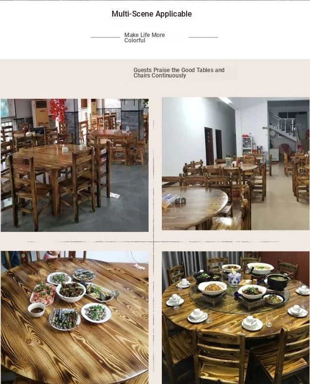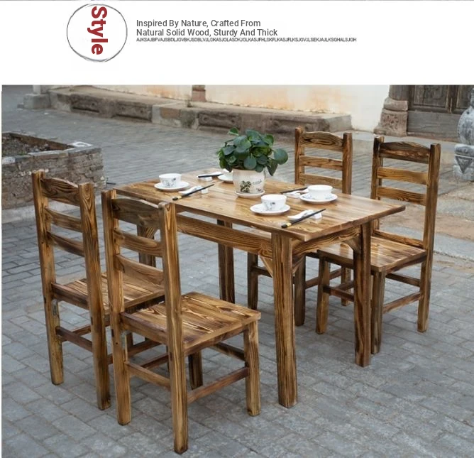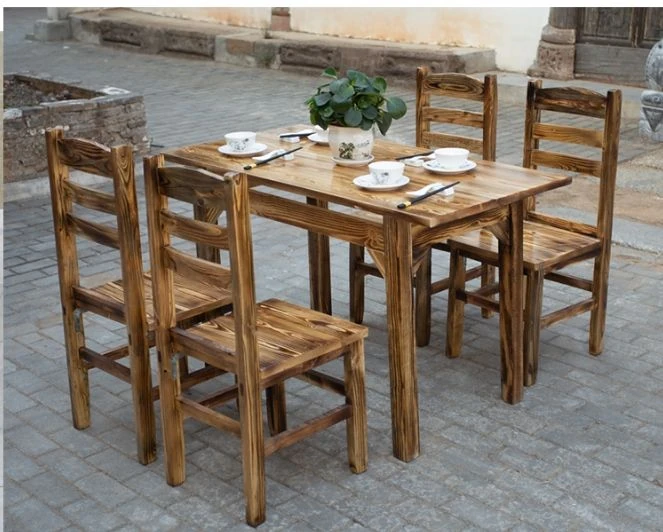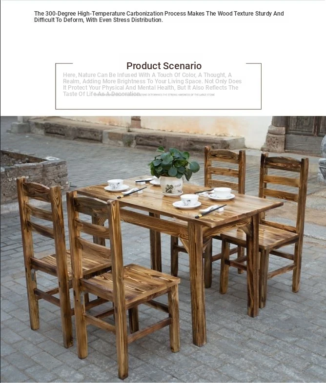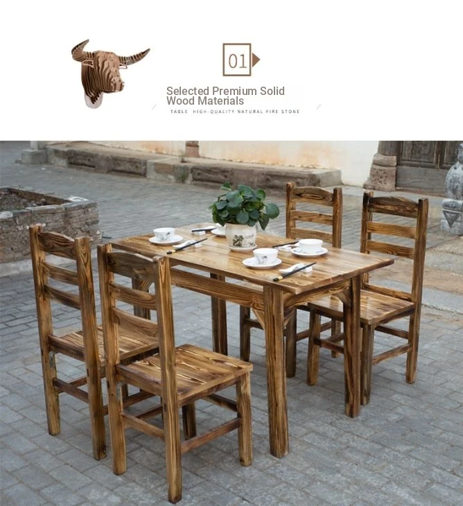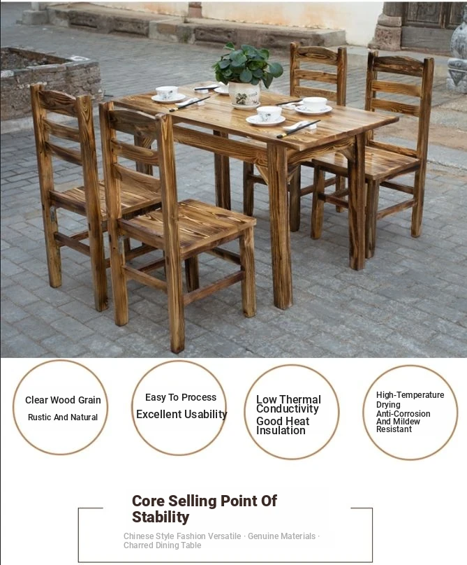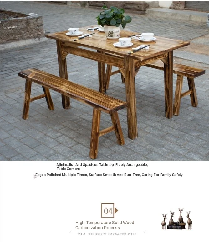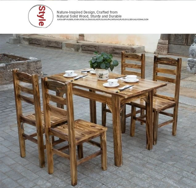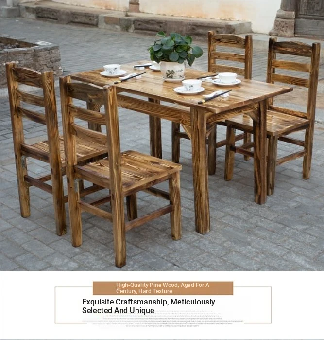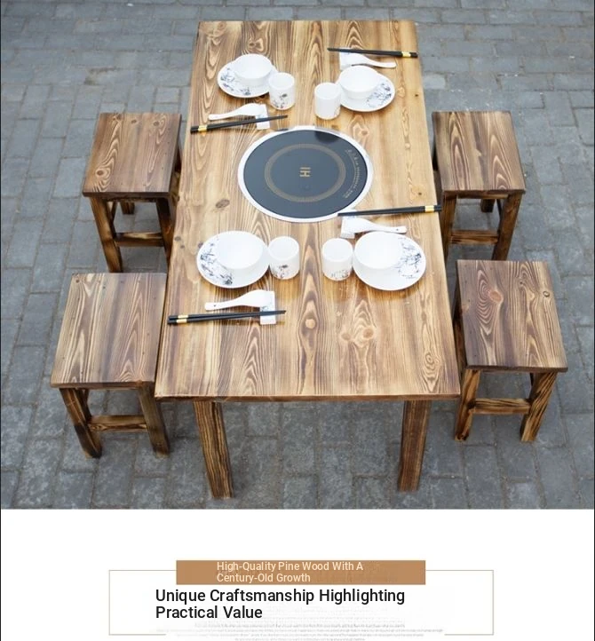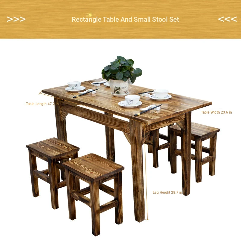 Rustic Solid Wood Rectangular Table and Chairs Set for BBQ, Hot Pot, and Casual Dining - Perfect for Family Gatherings and Restaurants!