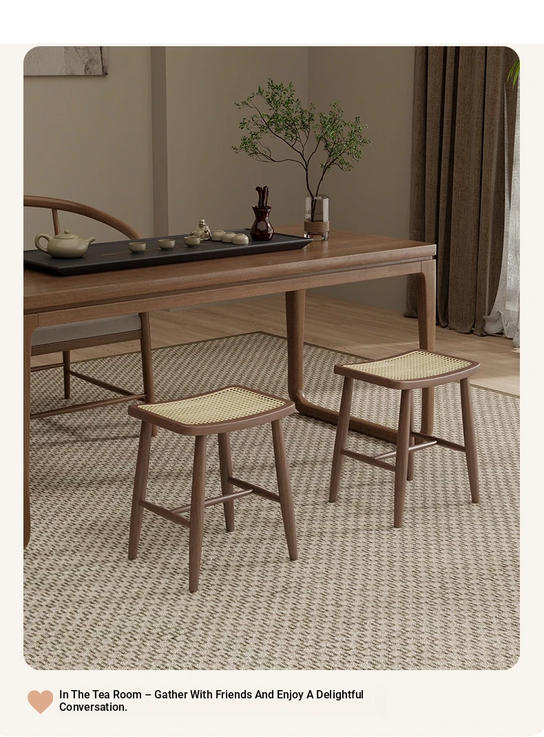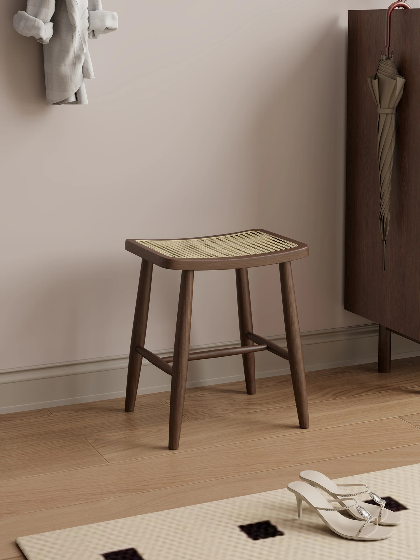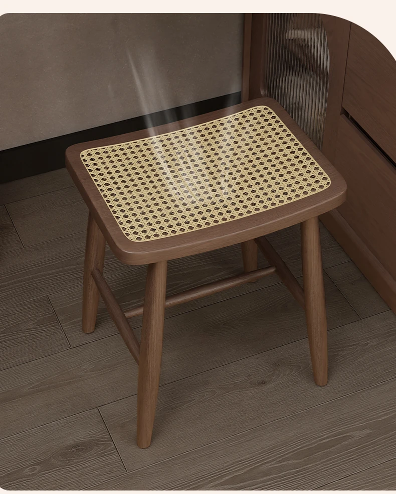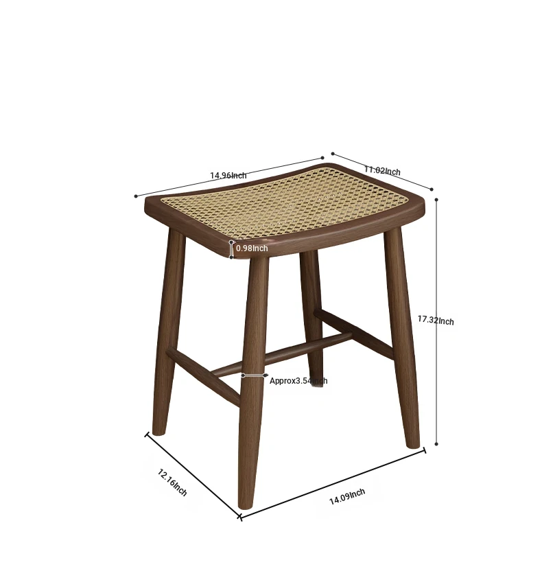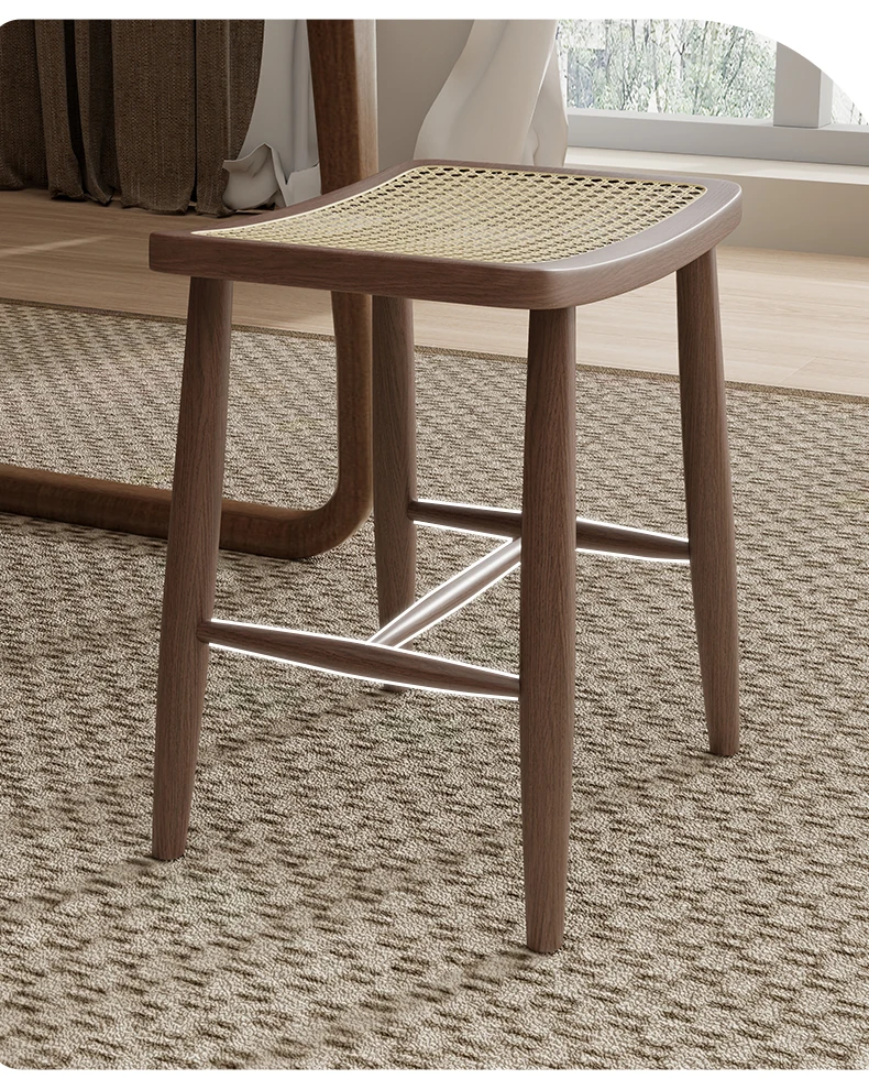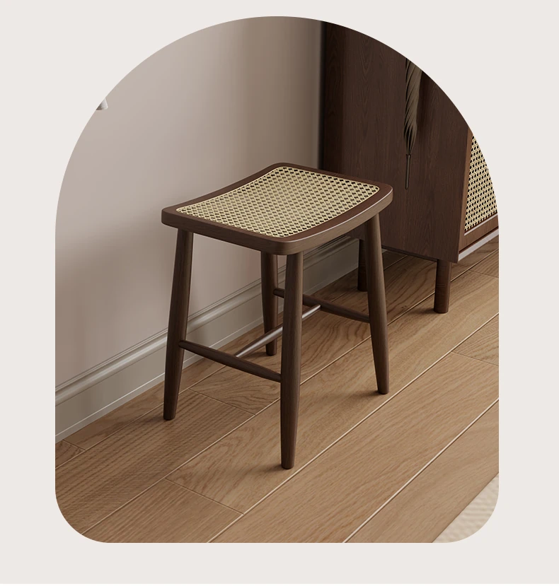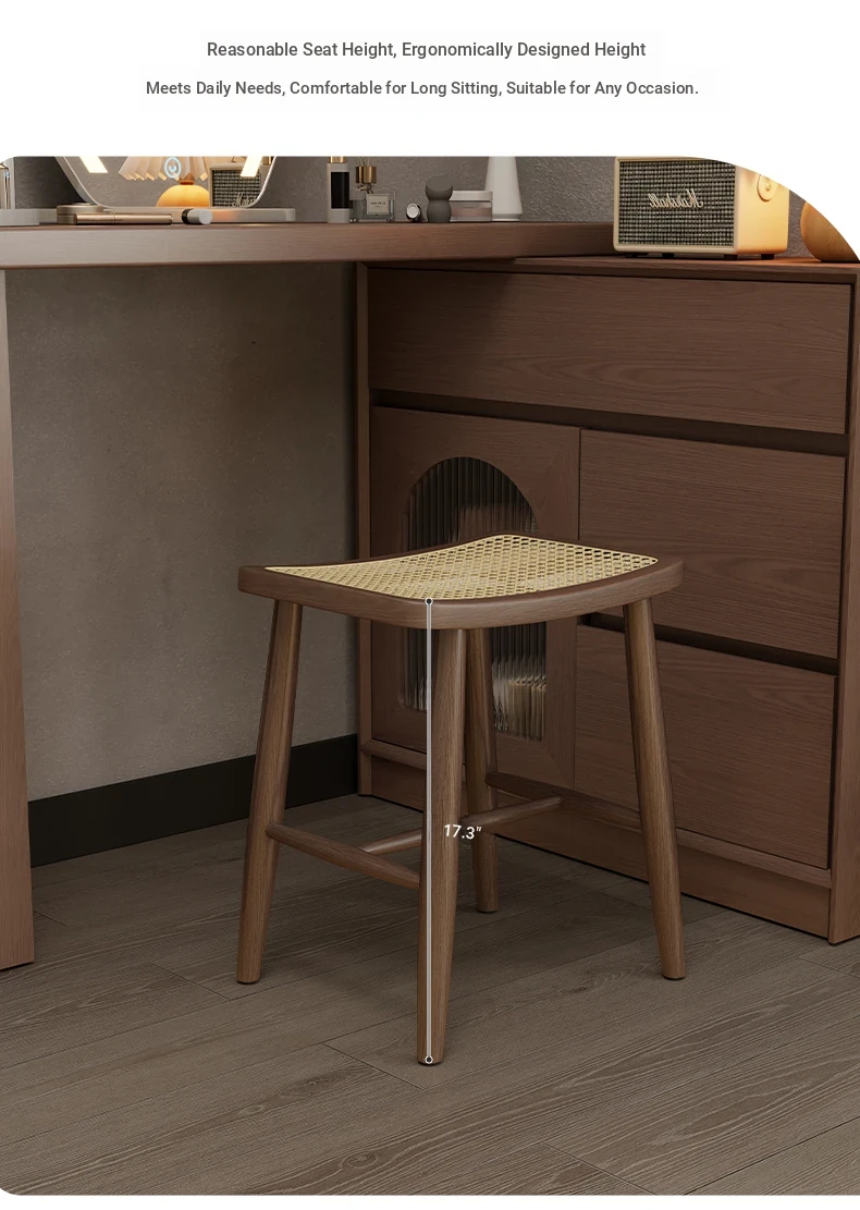 Seasonal Wooden Language Solid Wood Makeup Stool - Minimalist Saddle Stool for Bedroom, Handwoven Rattan Bench, Square Vanity Stool for Dressing Table