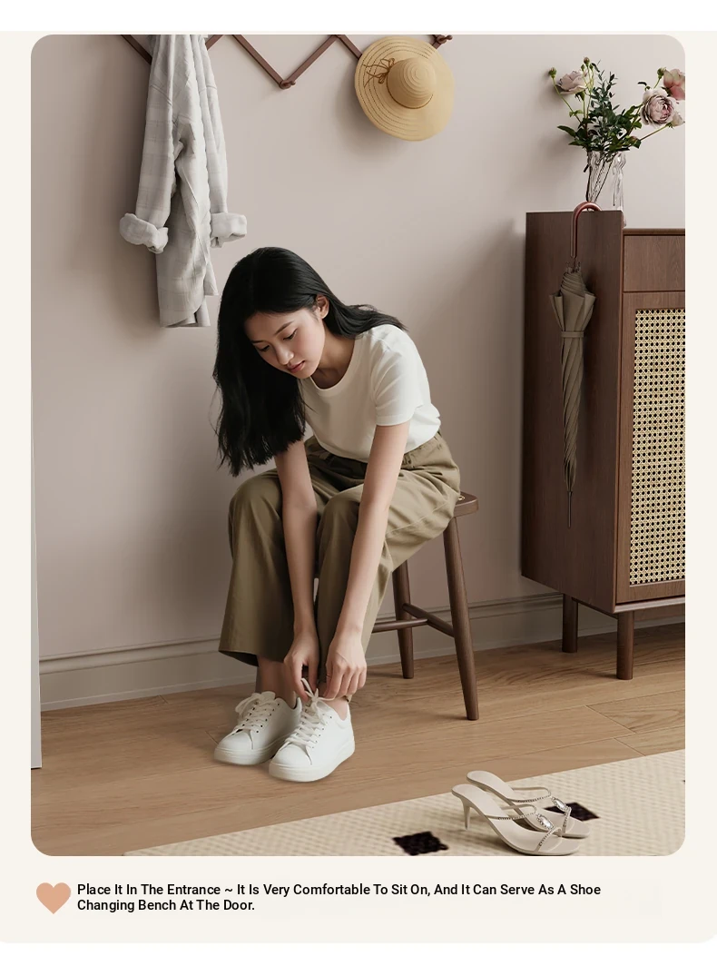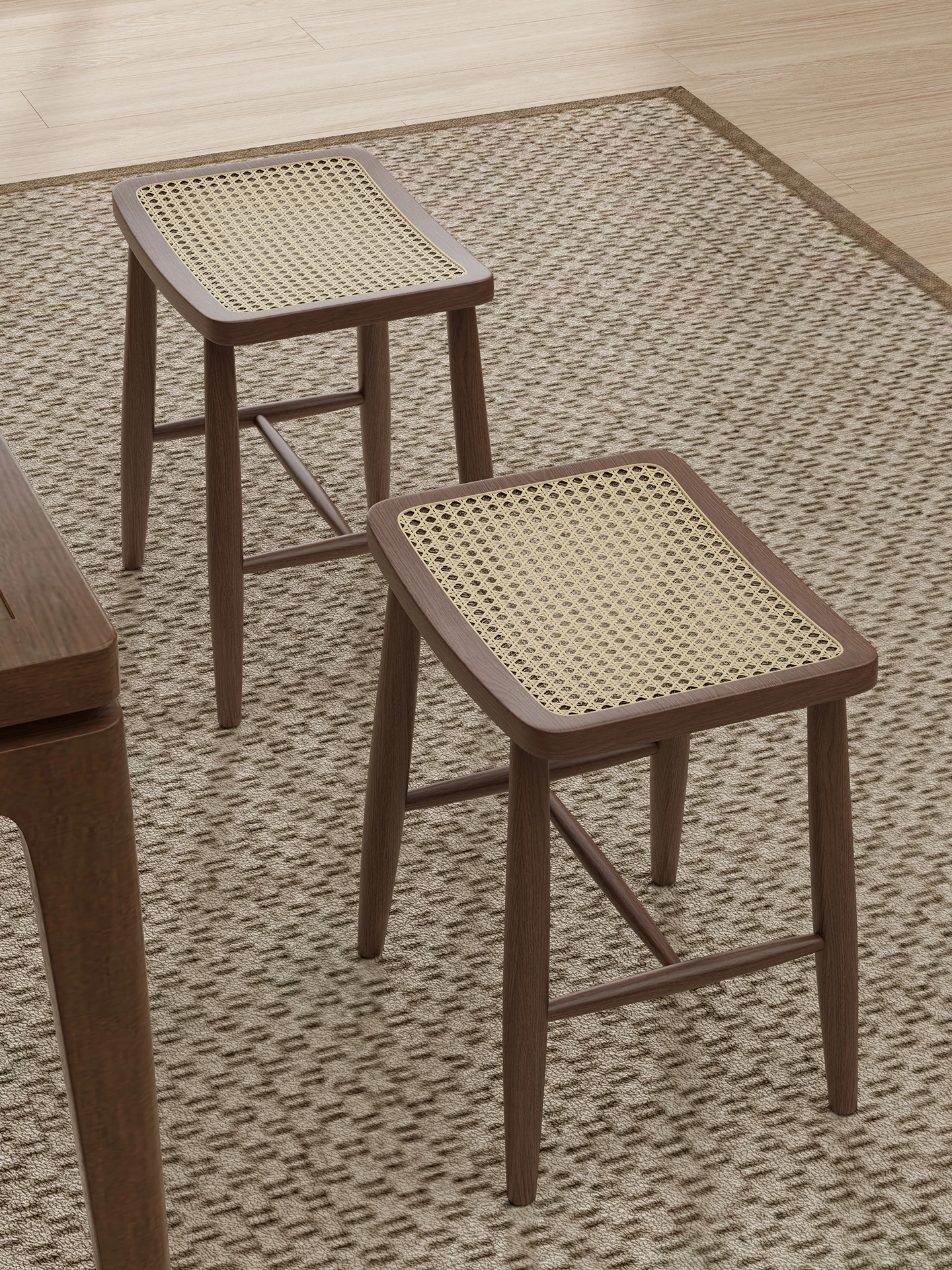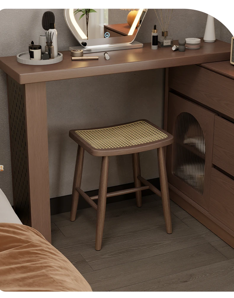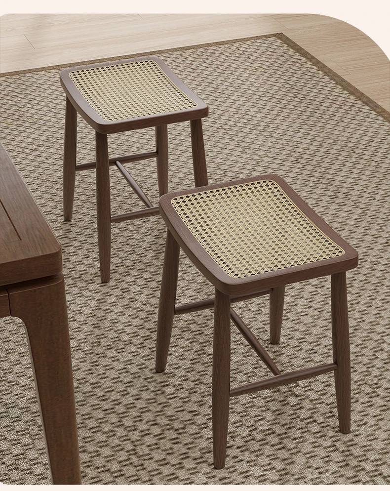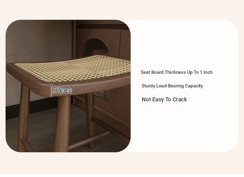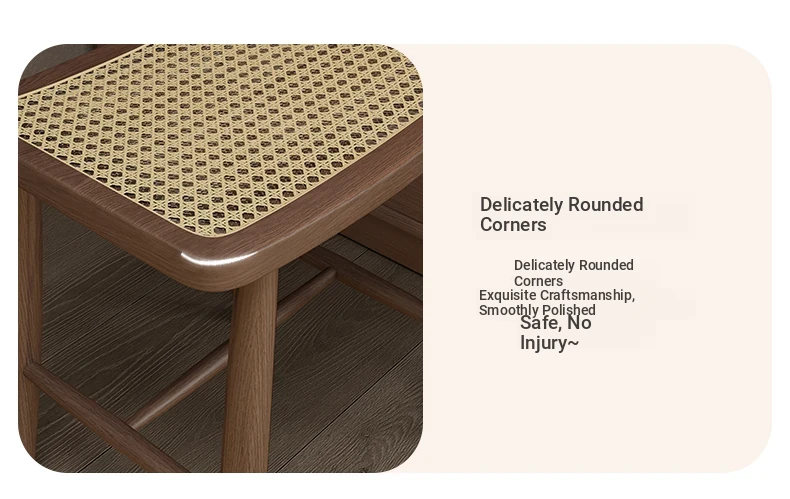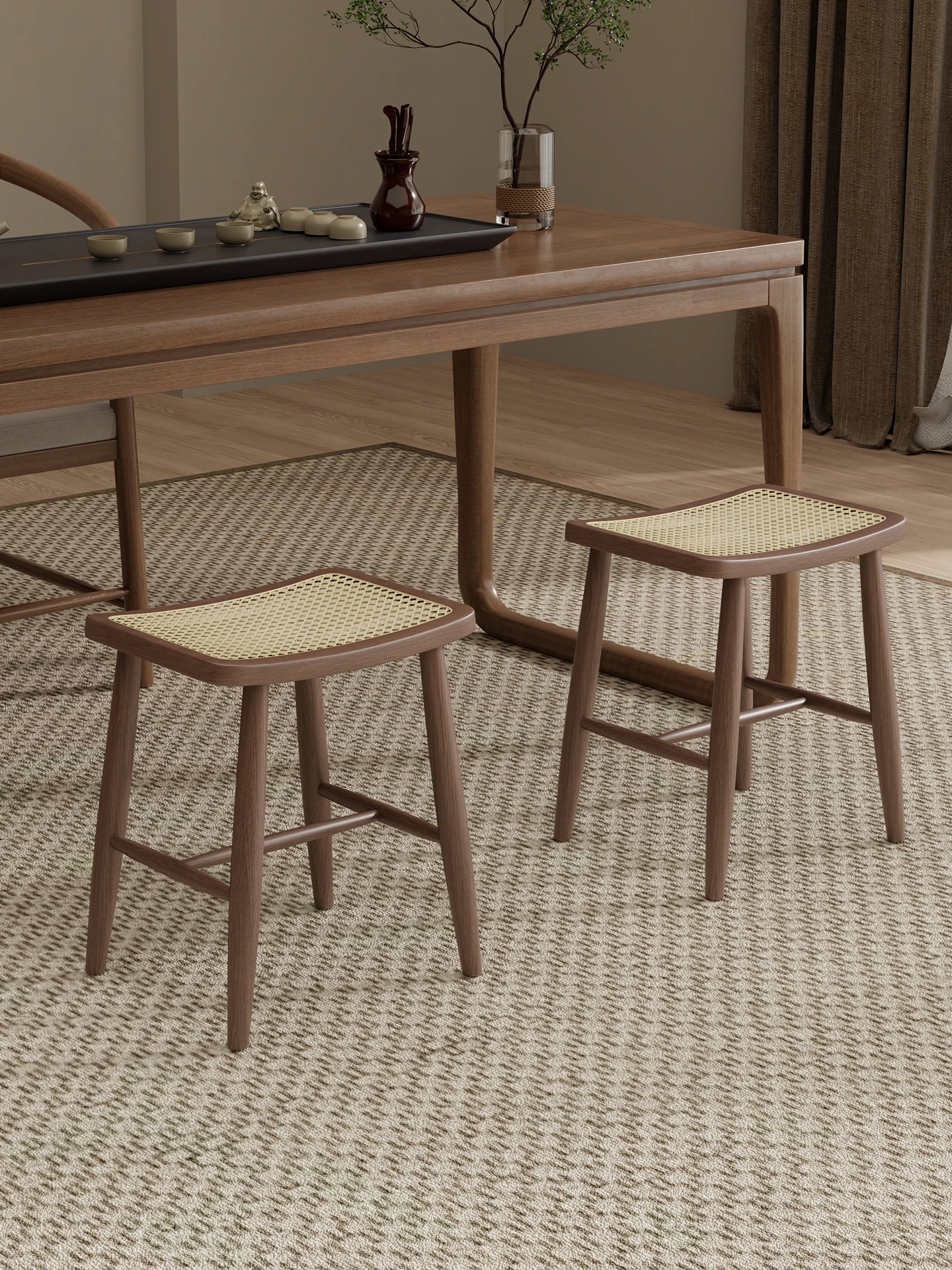 Seasonal Wooden Language Solid Wood Makeup Stool - Minimalist Saddle Stool for Bedroom, Handwoven Rattan Bench, Square Vanity Stool for Dressing Table