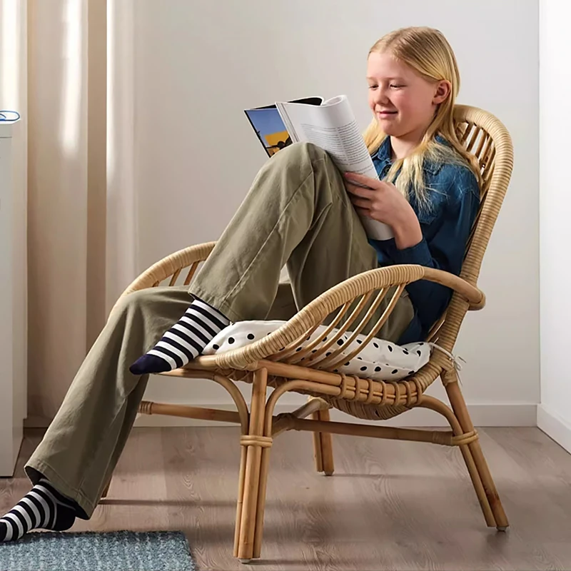 Japanese-Rattan Sofa Chair - Nordic Natural Plant All-Rattan Recliner with Backrest and Armrests, Perfect for Cozy Cafes and Trendy Guesthouses