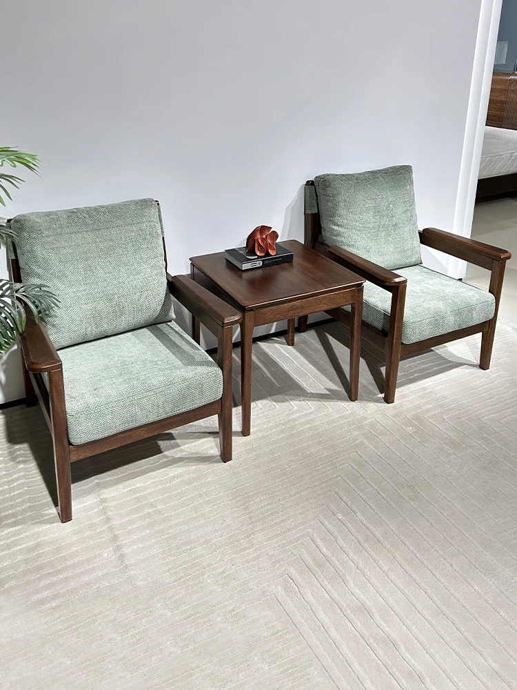 Modern Solid Wood Lounge Chair Set - 3-Piece Walnut Sofa Chairs for Small Spaces, Perfect for Living Room or Balcony Conversations, Stylish and Minimalist Design