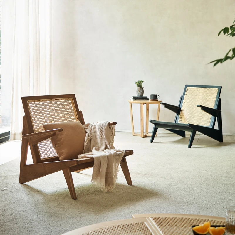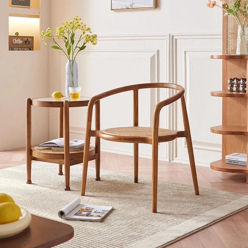 Modern Minimalist Solid Wood Sofa Chair - Cozy Rattan Lounge Chair for Homes, Perfect for Balconies and Guesthouses, Nordic Style Recliner for Relaxation
