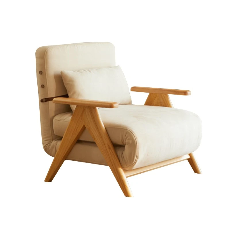 2024 New Compact Folding Sofa Bed - Multi-functional Lazy Sofa for Small Spaces, Single Wooden Extendable Bed for Living Room