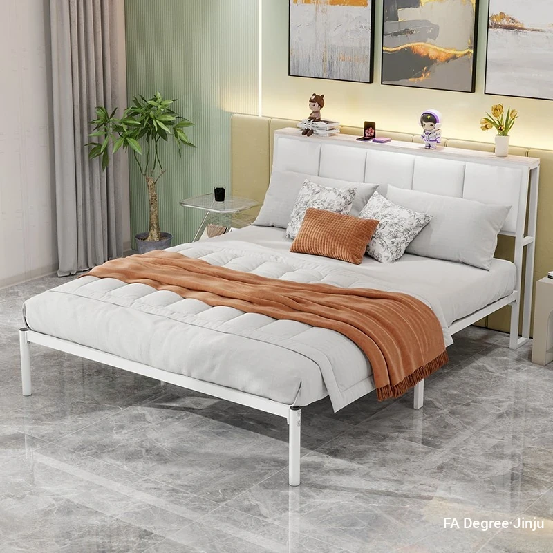 French Cream Iron Bed - Nordic Style Windsor Bed with Pull-Out Design, Soft-Padded Double Bed Frame - Elegant Luxury for Modern Master Bedroom, Perfect for Newlyweds