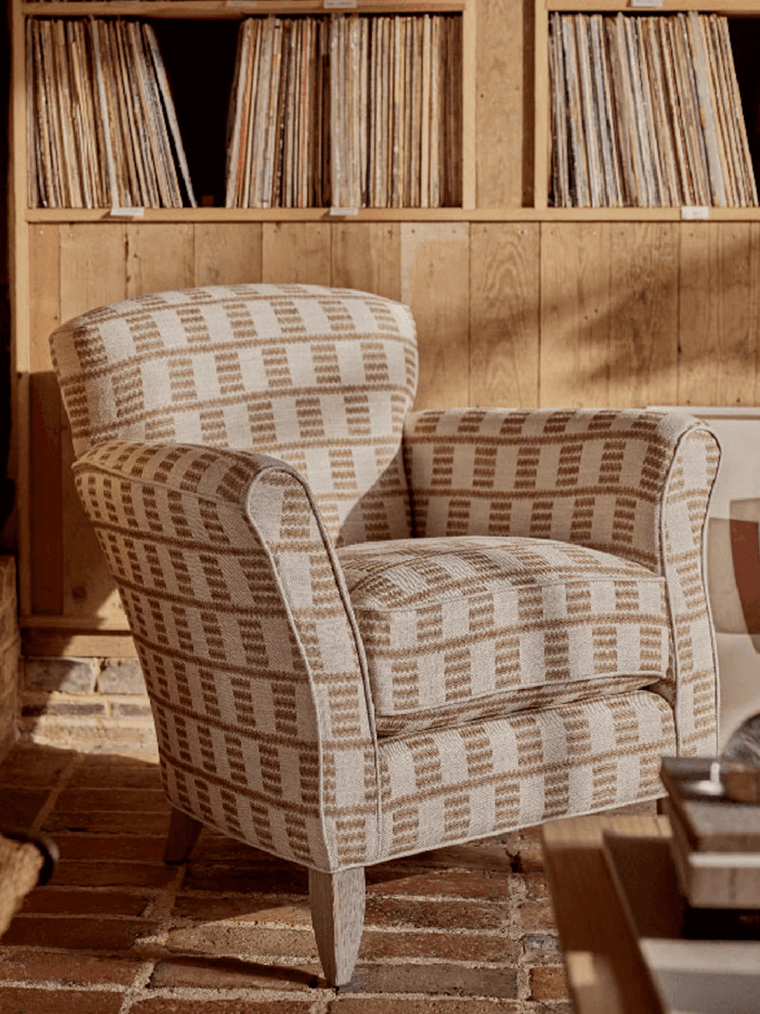 American Vintage Solid Wood Sofa Chair - Small Space Plaid Fabric Single Armchair, French Retro Living Room Lounge Chair