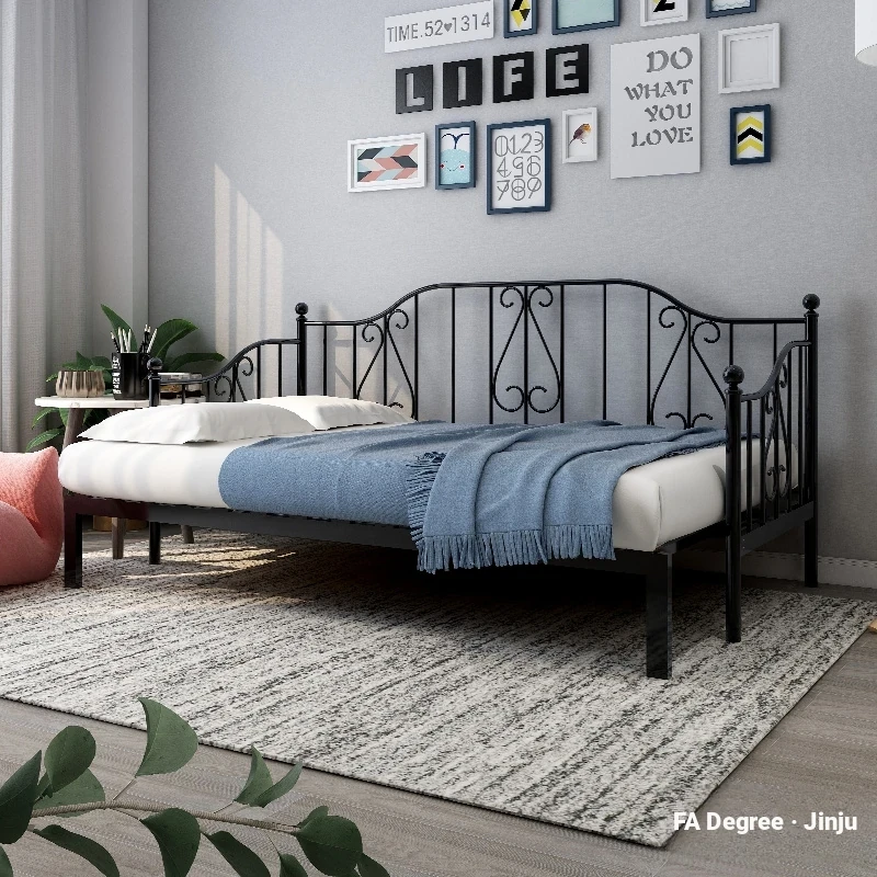 European Style Black Iron Sofa Bed - Multifunctional Pull-Out Couch, Simple Folding and Sliding Double Bed for Versatile Living Spaces