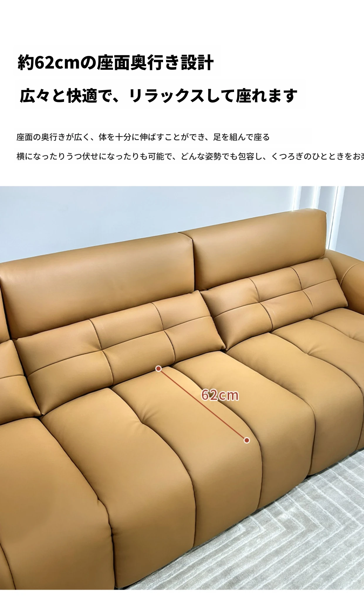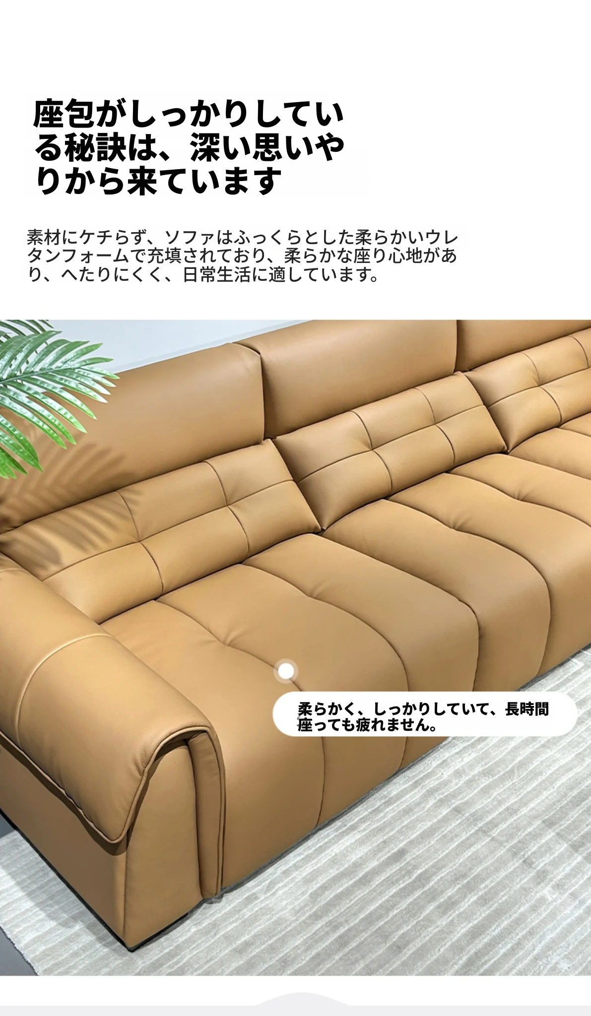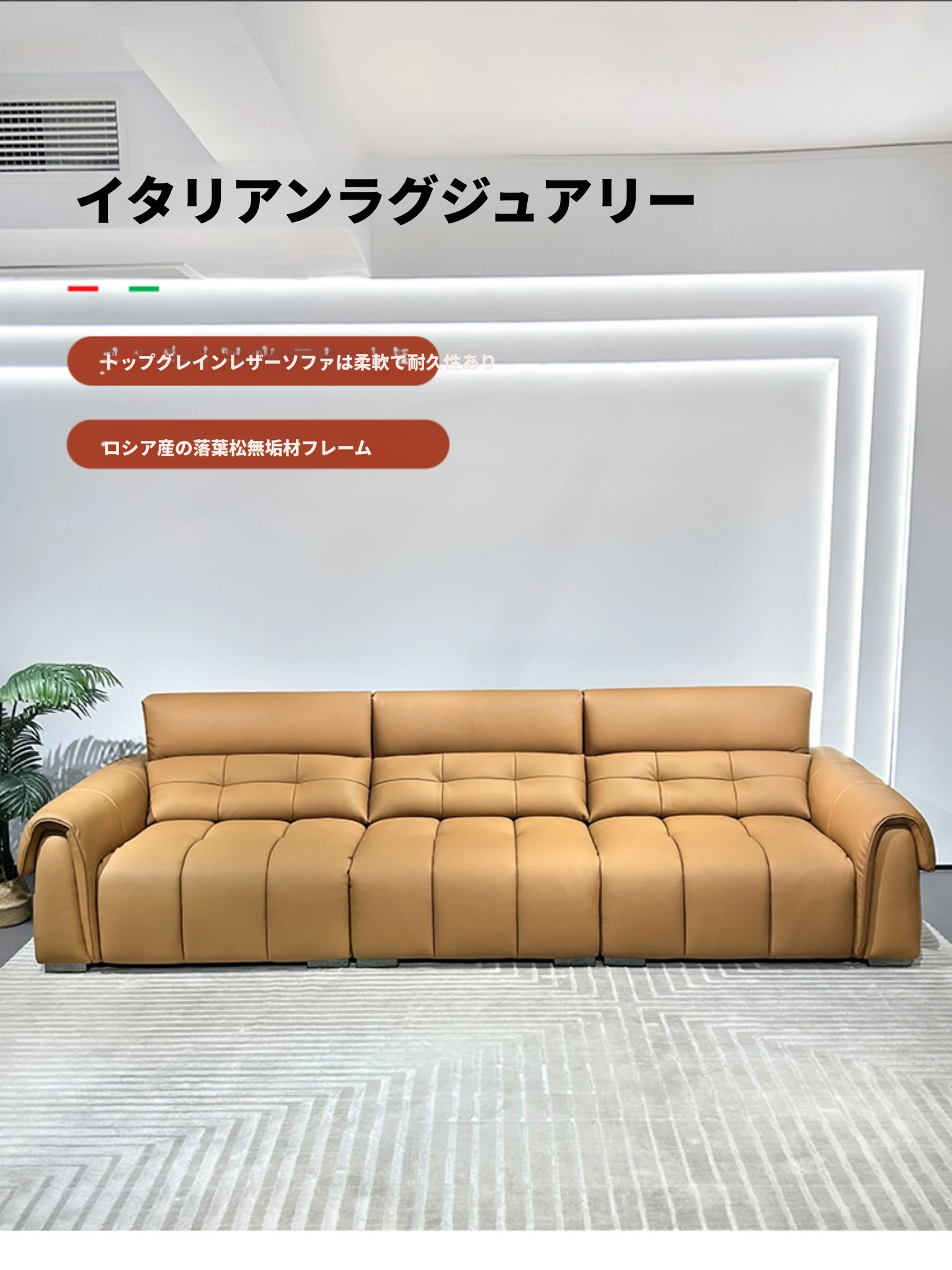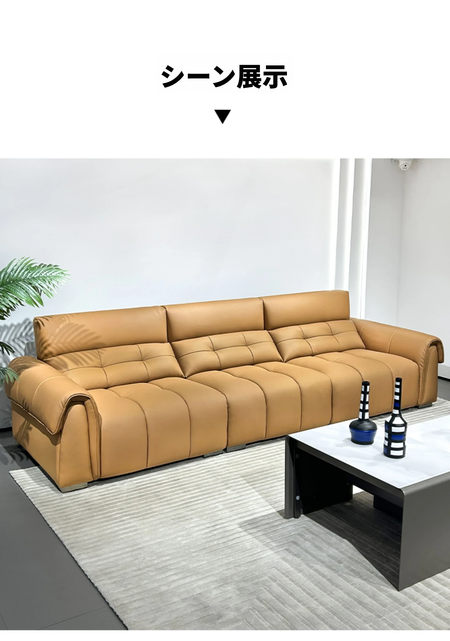 2025年新作!本革製ピアノキー風イタリアンラグジュアリー直列3人掛けソファ - スペースを有効活用できるコンパクトデザインのリビング家具!