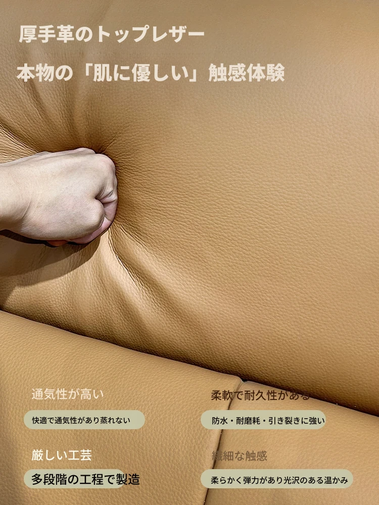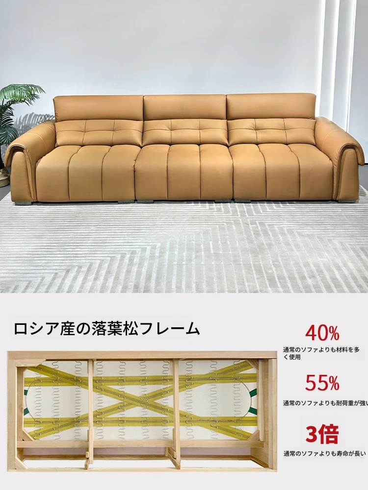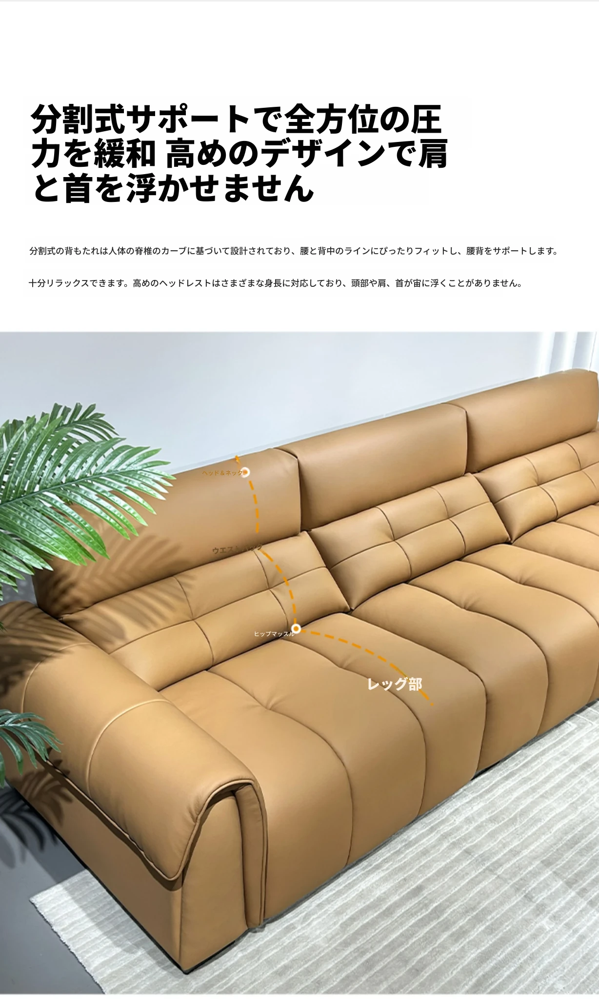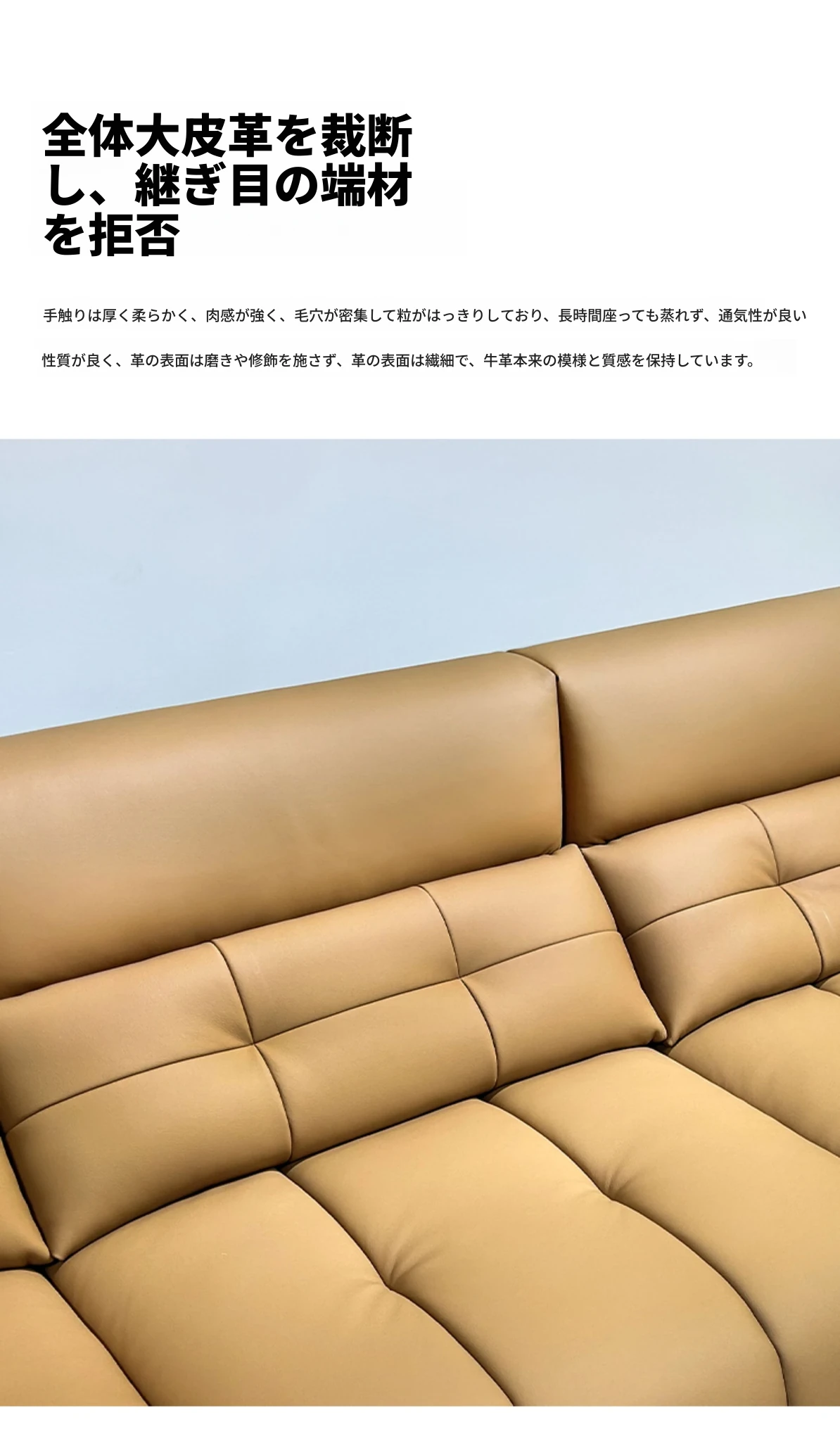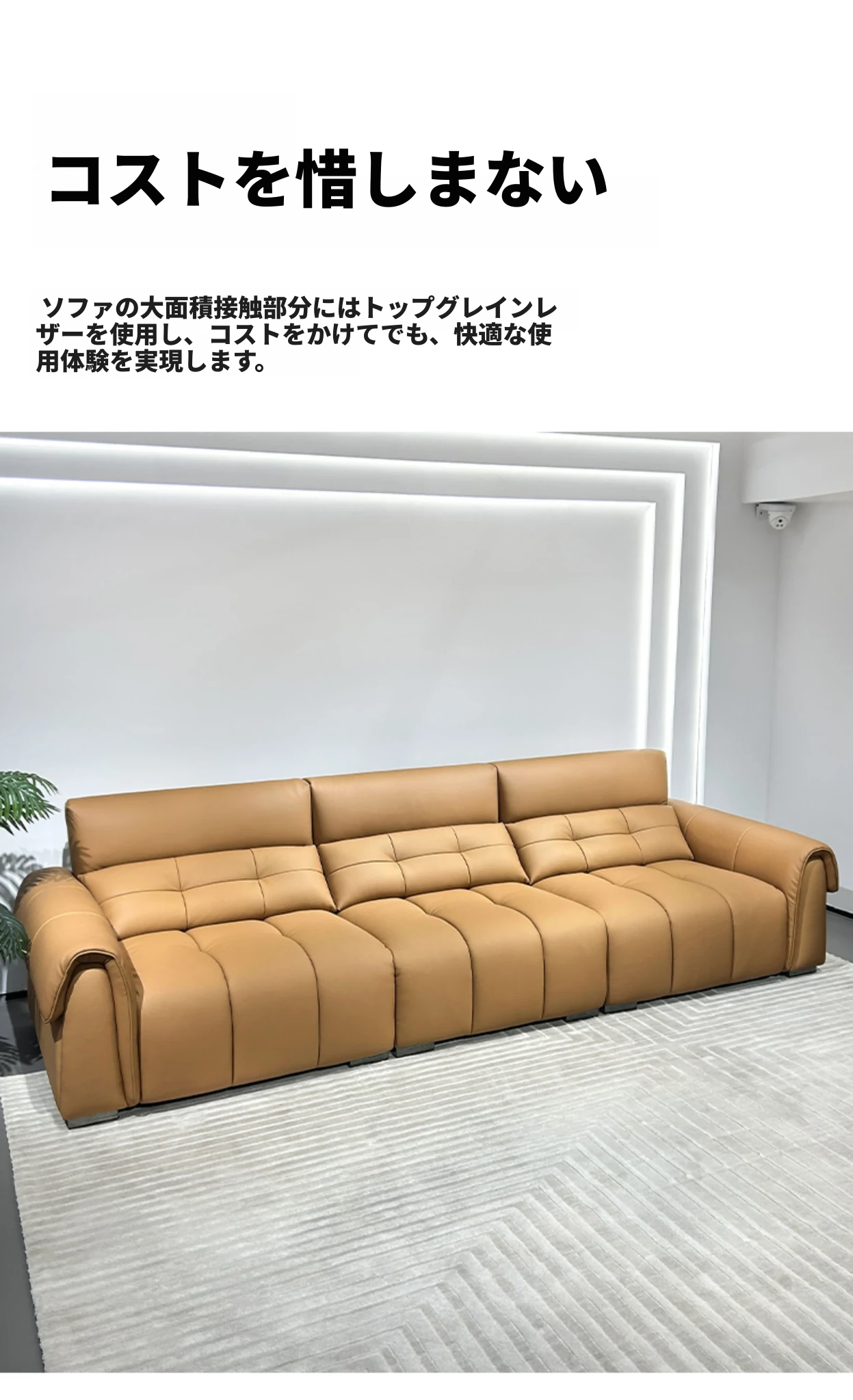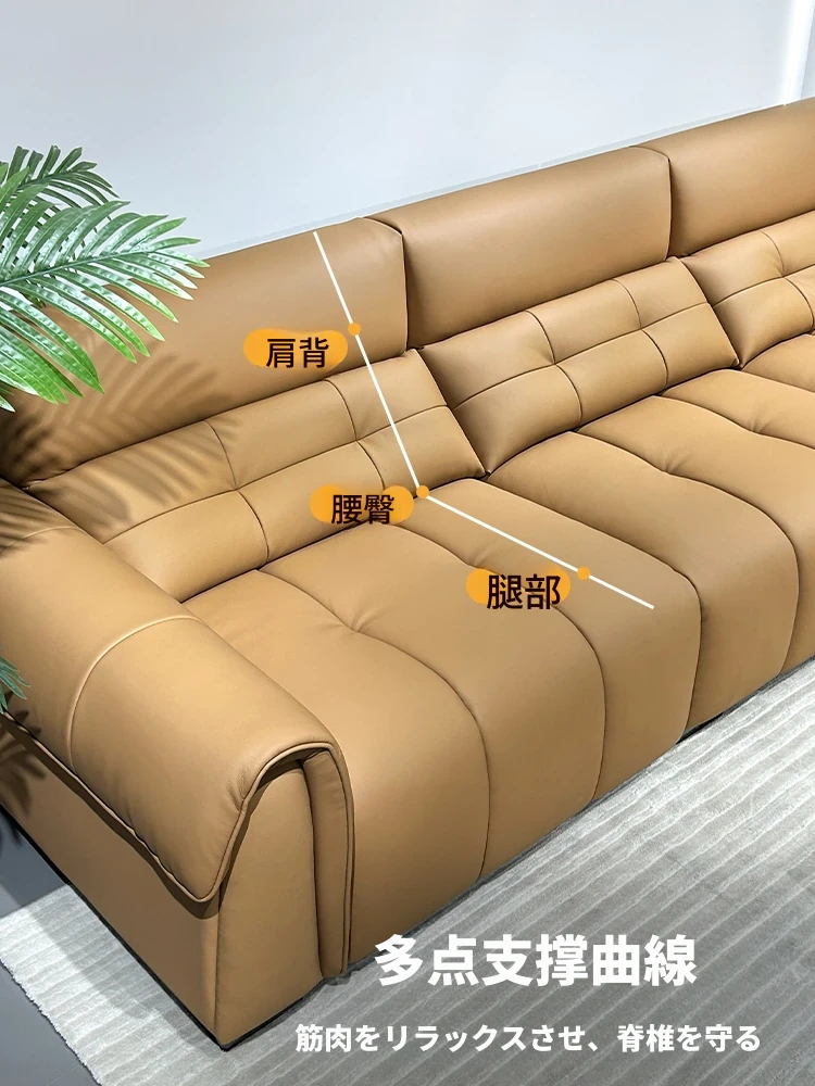 2025年新作!本革製ピアノキー風イタリアンラグジュアリー直列3人掛けソファ - スペースを有効活用できるコンパクトデザインのリビング家具!