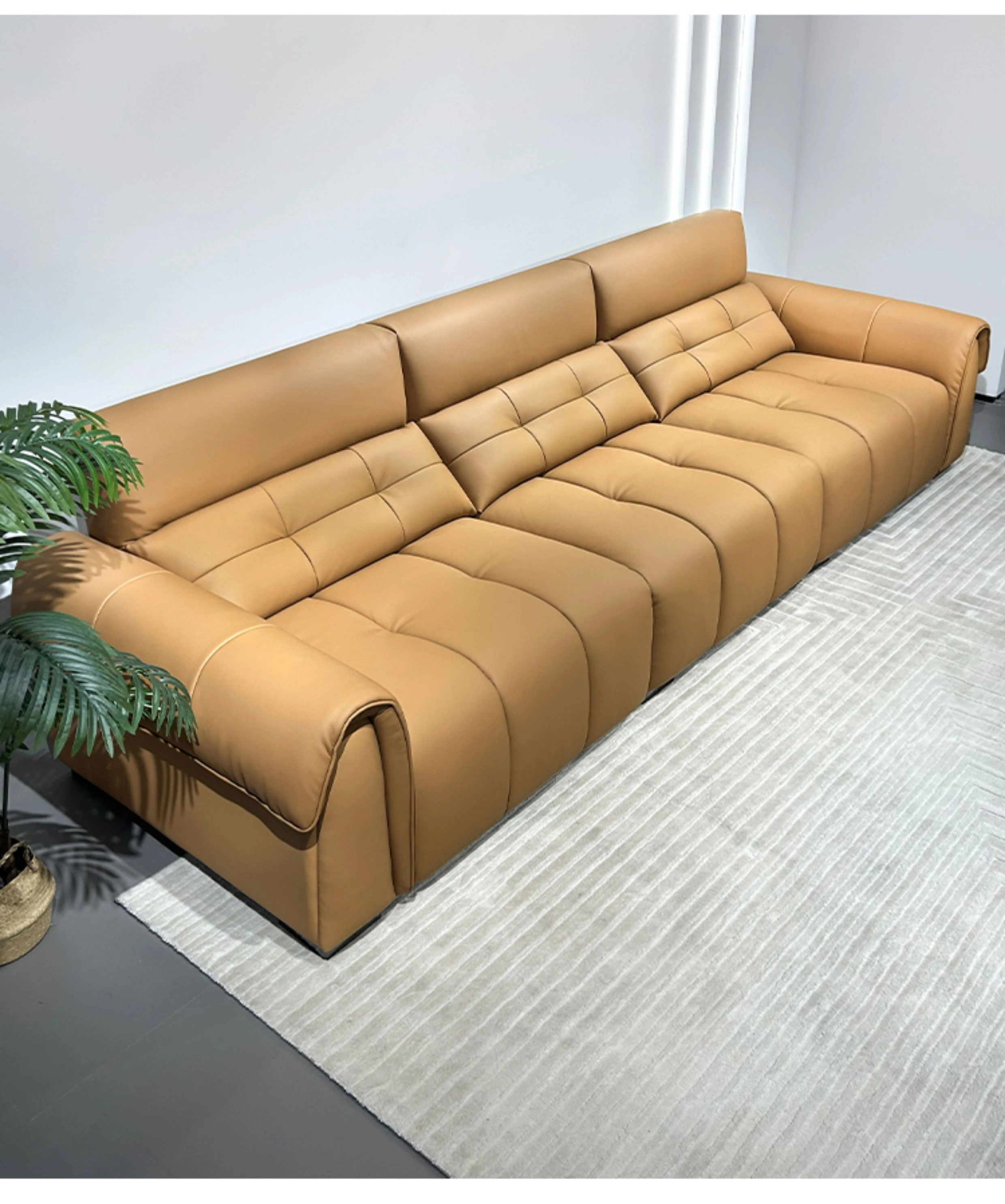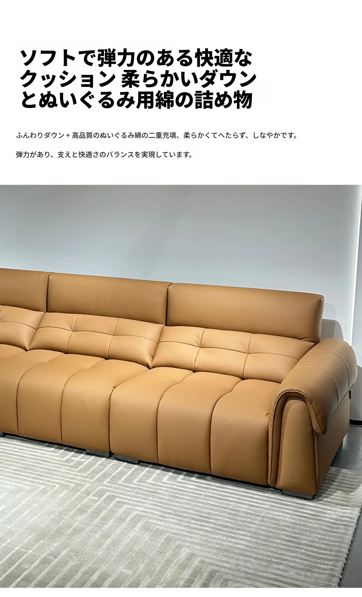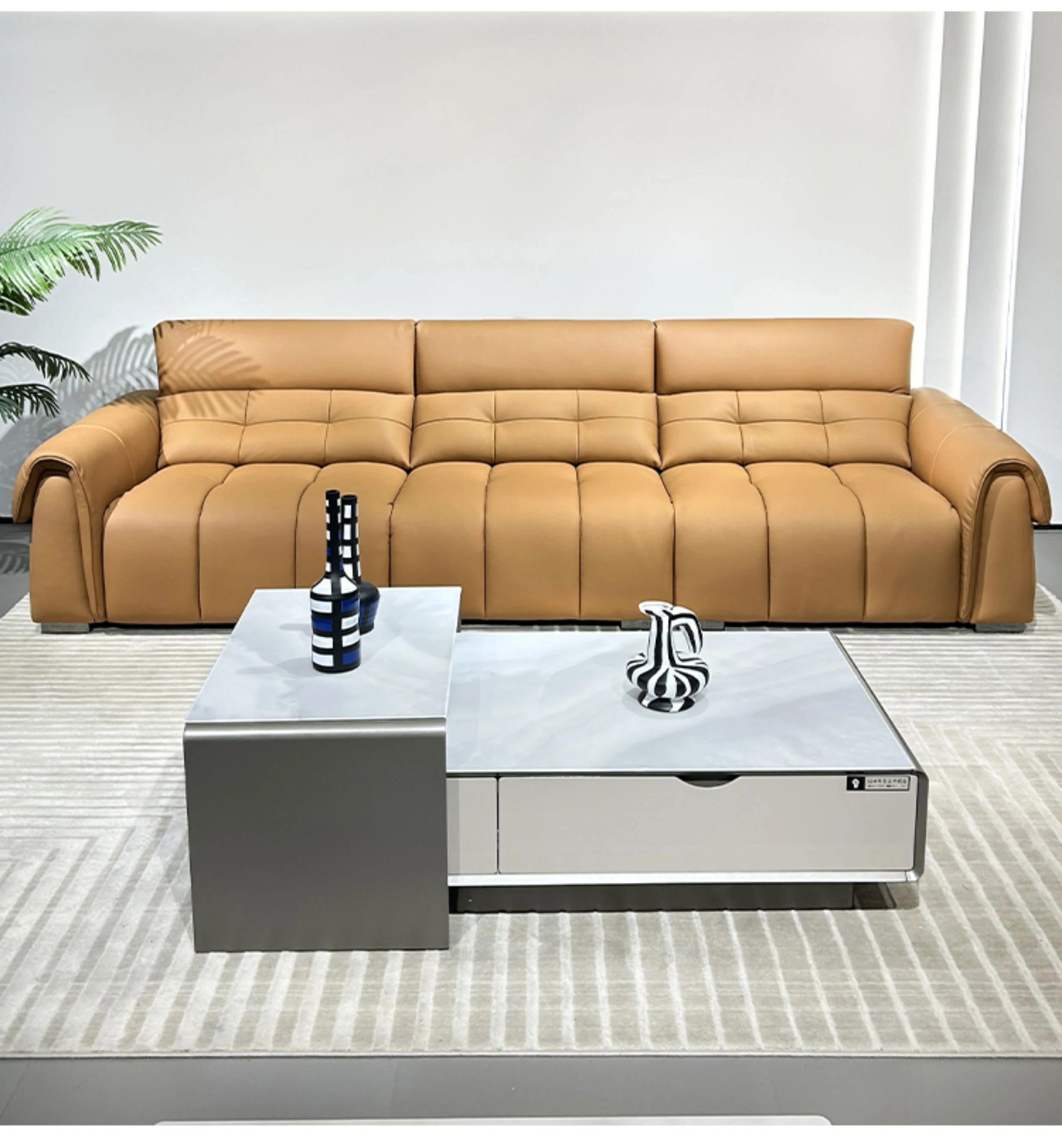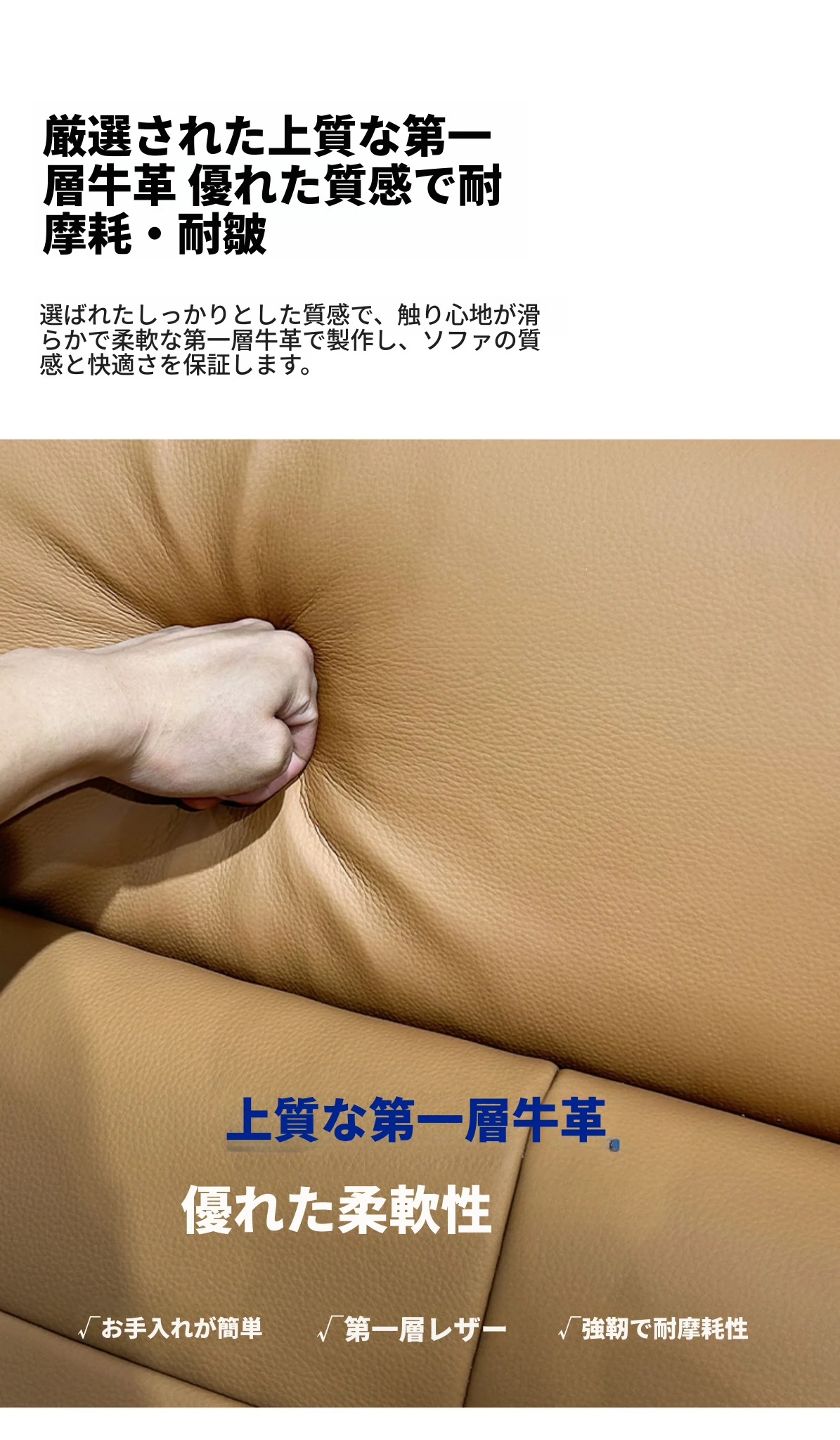 2025年新作!本革製ピアノキー風イタリアンラグジュアリー直列3人掛けソファ - スペースを有効活用できるコンパクトデザインのリビング家具!