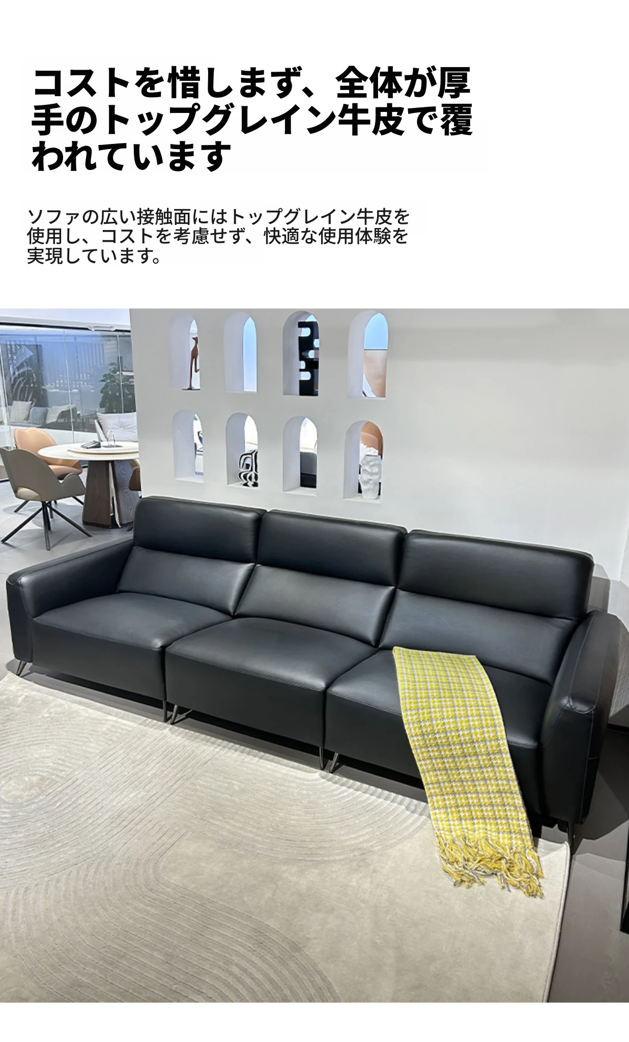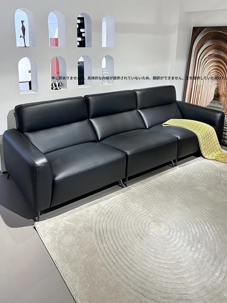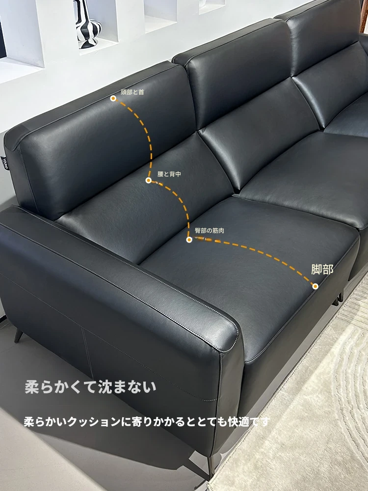 2025年新作!モダンでシンプルなデザインの本革ブラック三人掛けソファ、イタリアンラグジュアリー、小さなスペースにもピッタリのスタイリッシュな客リビングソファ!