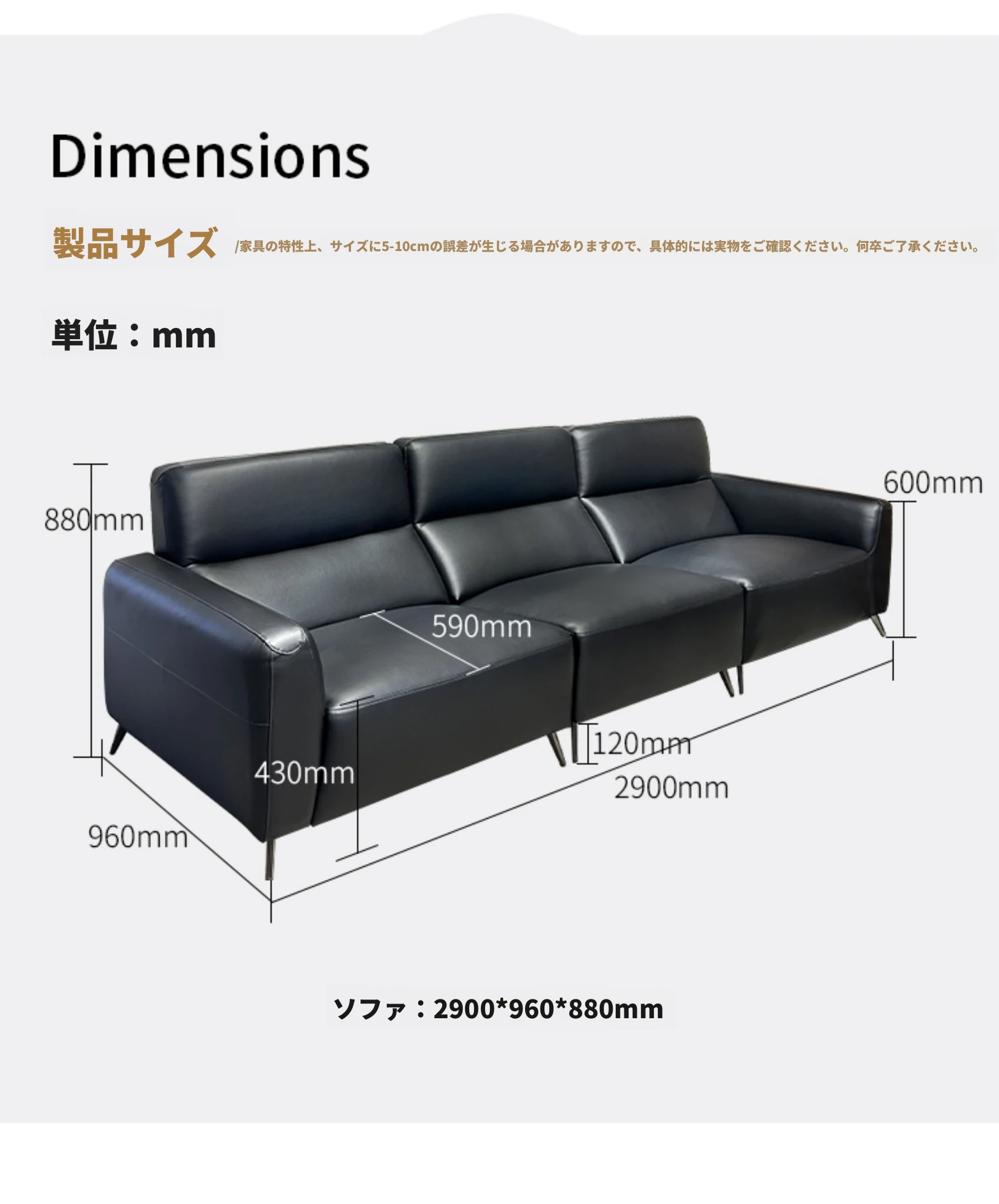 2.9メートル大四人掛け【ベビータッチの本革+全無垢の落葉松ベース】