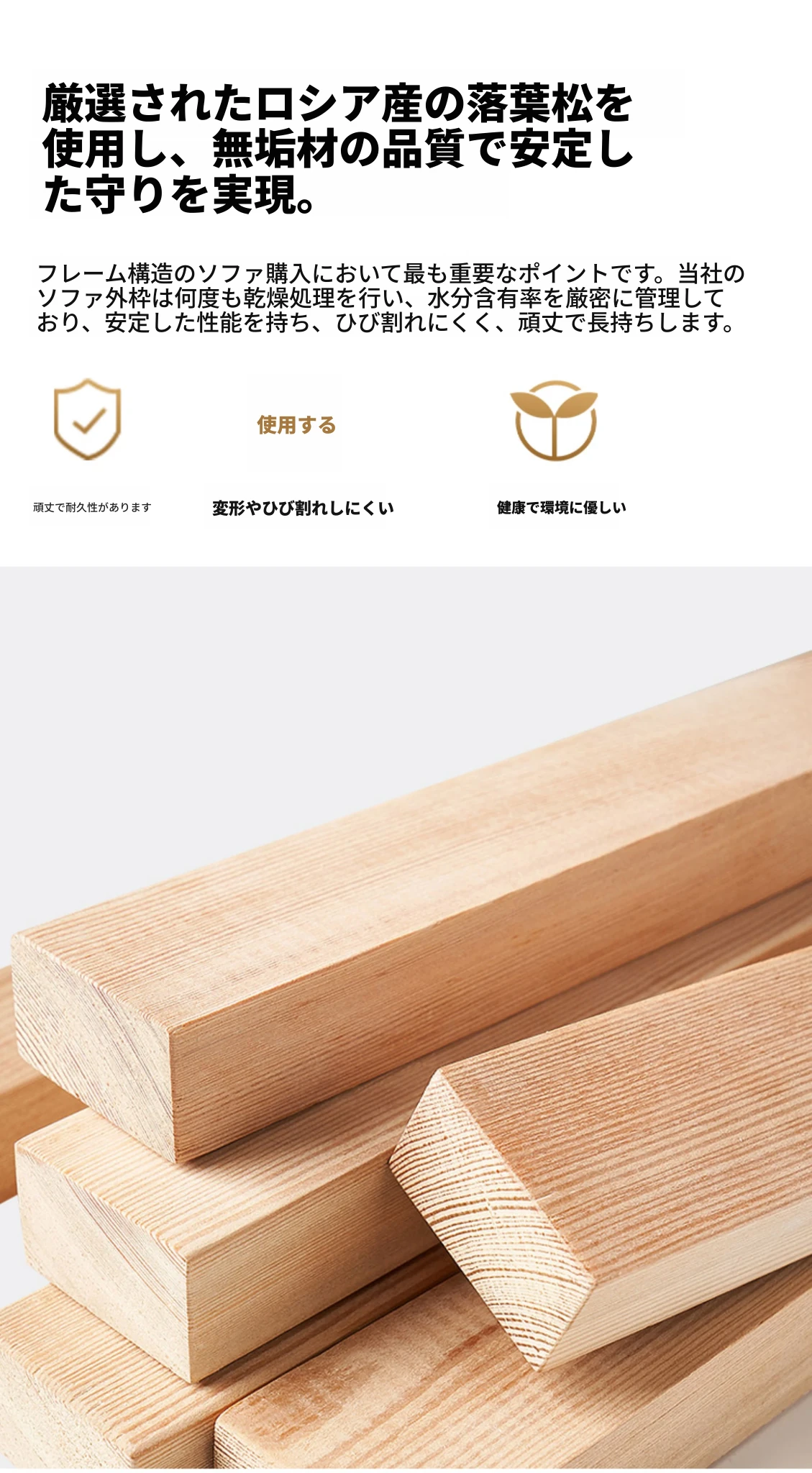2.1メートル三人掛け【ベビータッチの本革+全無垢の落葉松ベース】